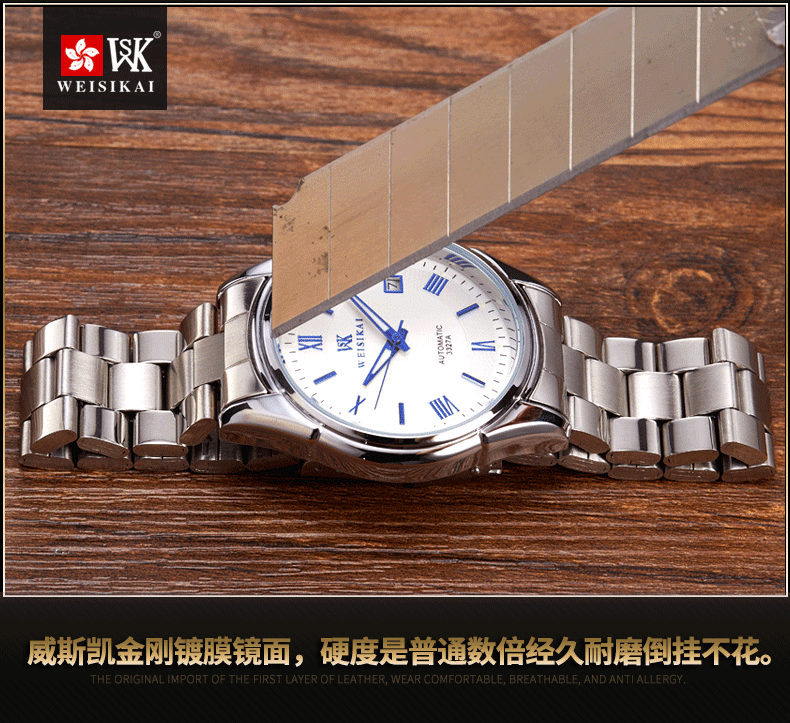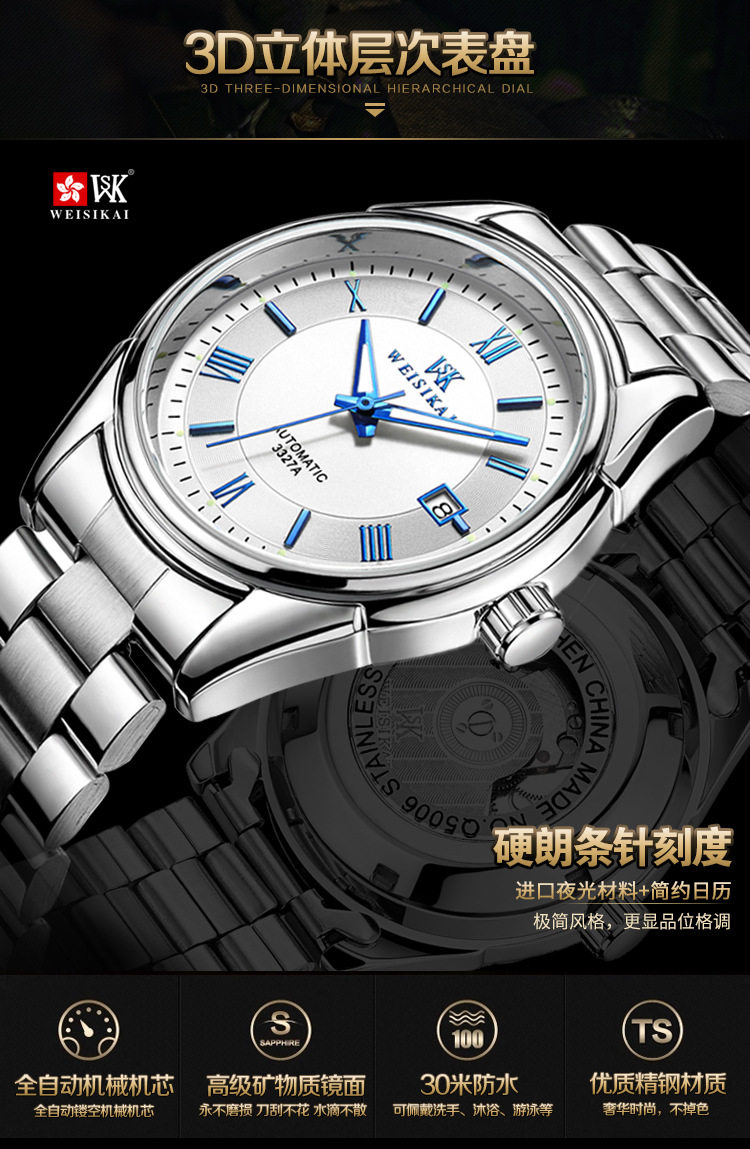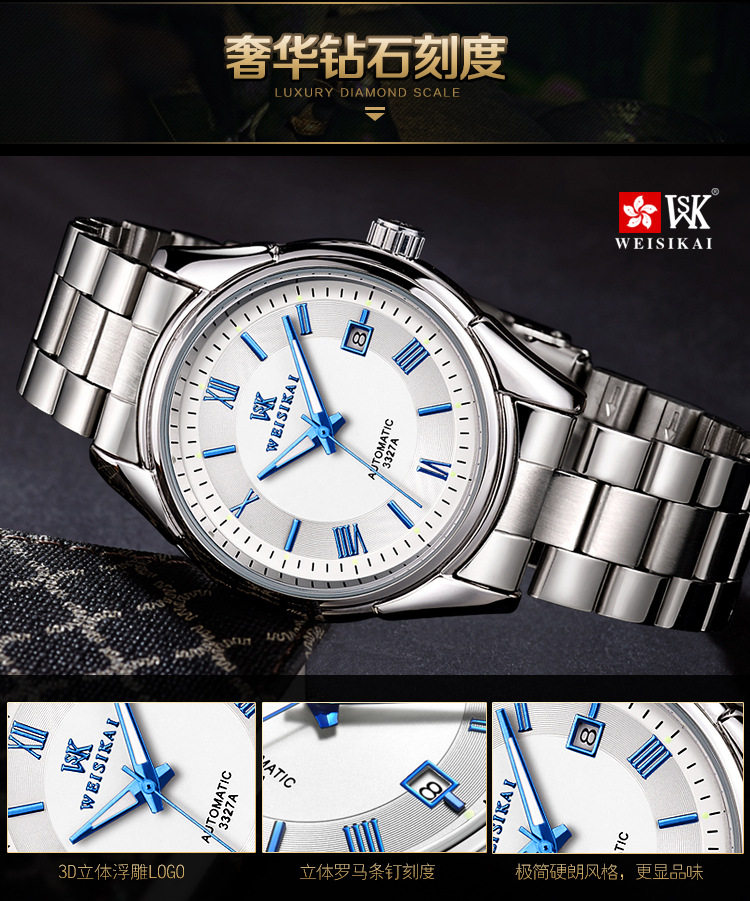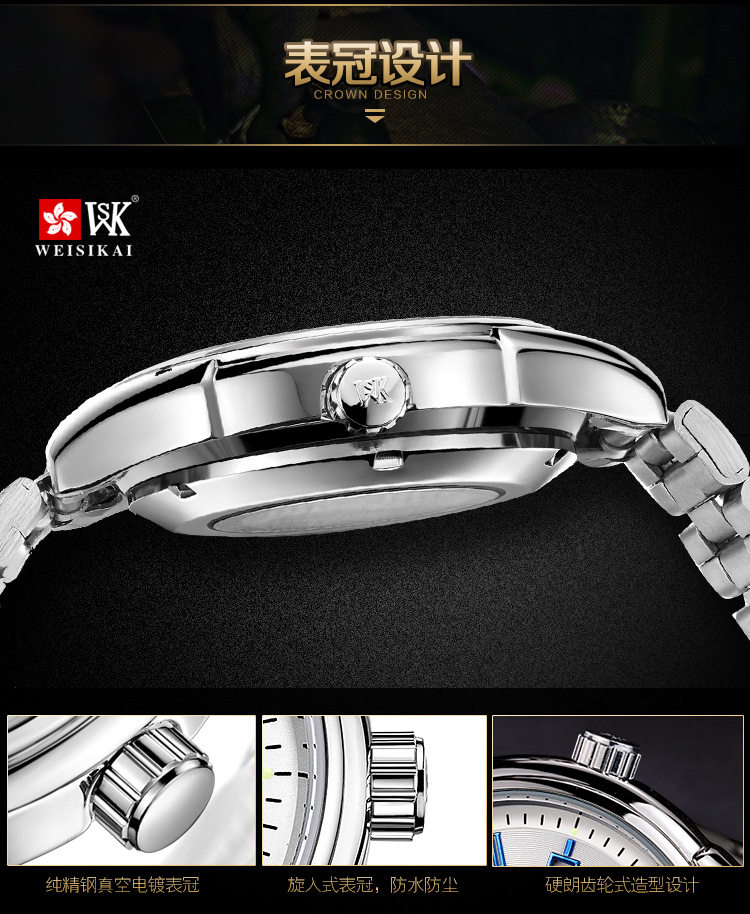 颜色分类 精钢 黑面 银丁(瑞士进口),精钢 黑面 玫丁(瑞士进口),精钢 白面 银丁(瑞士进口),精钢 白面 玫丁(瑞士进口),精钢 白面 蓝丁(瑞士进口)