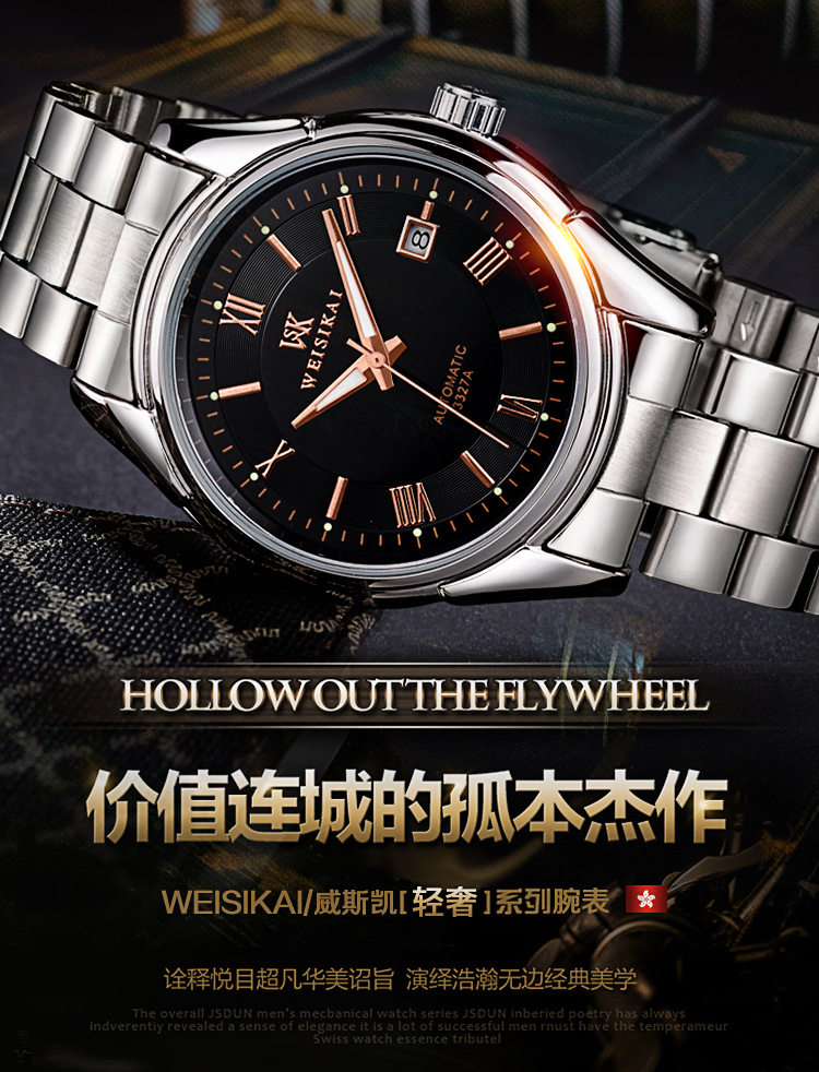 瑞士新款男全自动机械手表陀飞轮高档防水夜光商务透底简约腕表