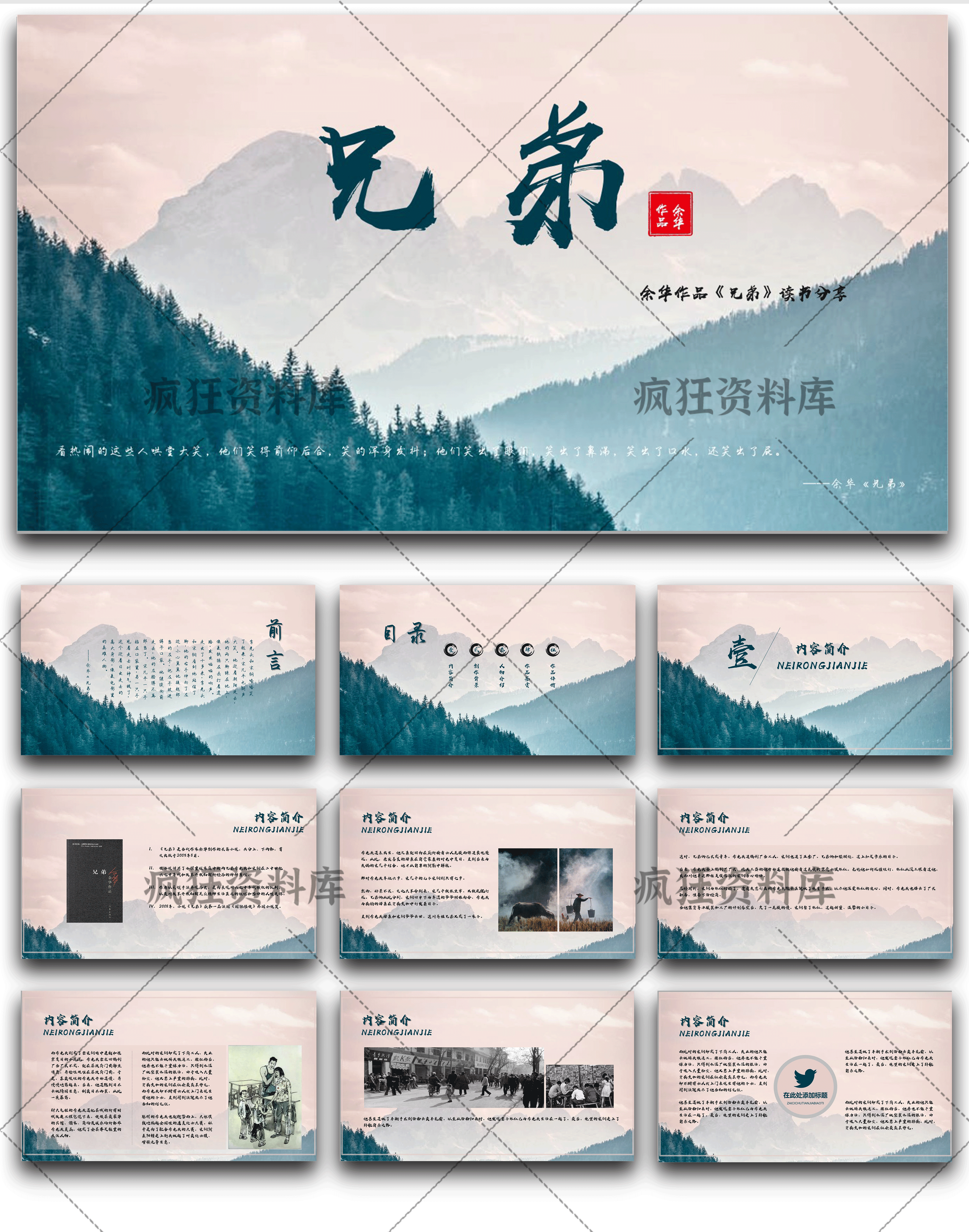 Hermanos PPT soporte de notas de conferencias plantilla de lectura obras maestras de la literatura mundial introducción después de leer compartir material didáctico