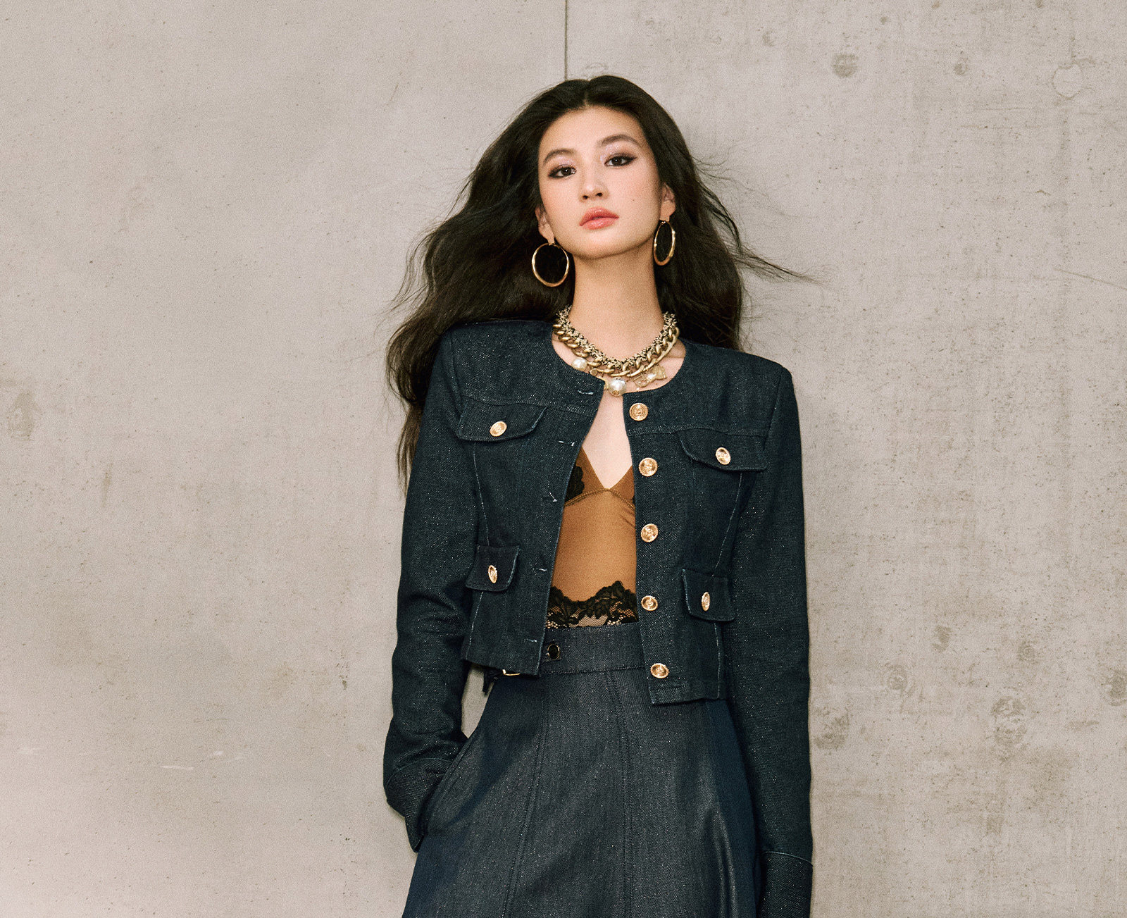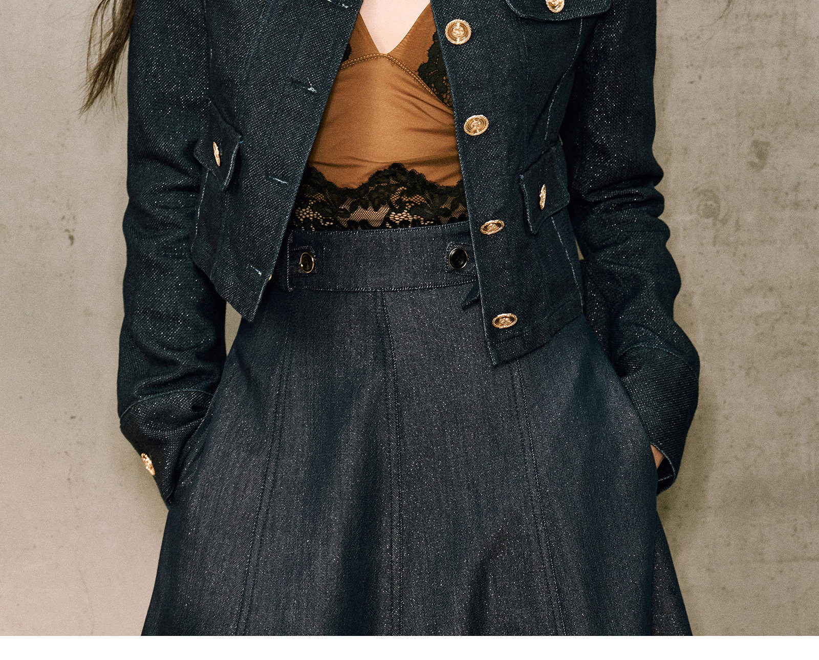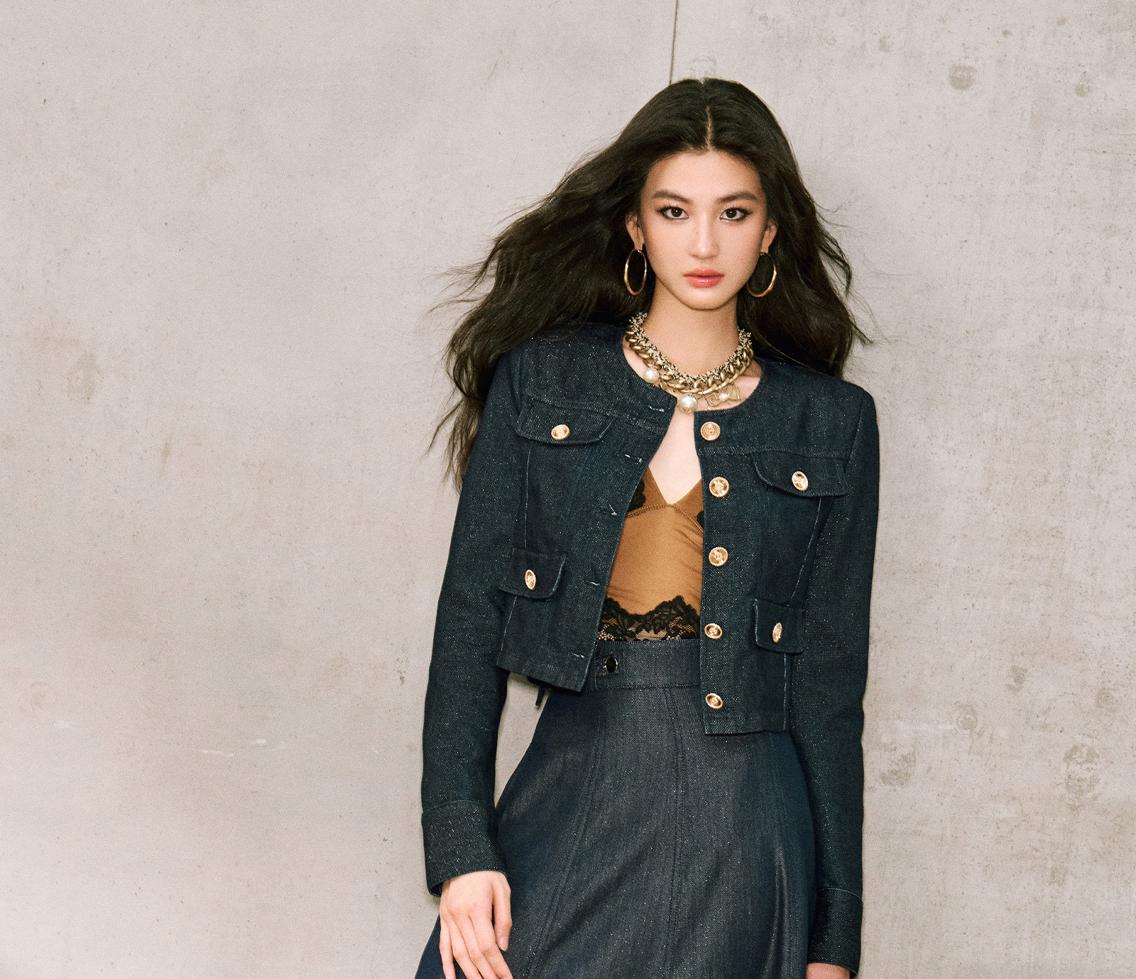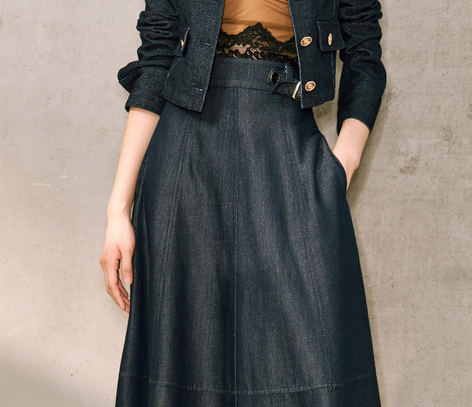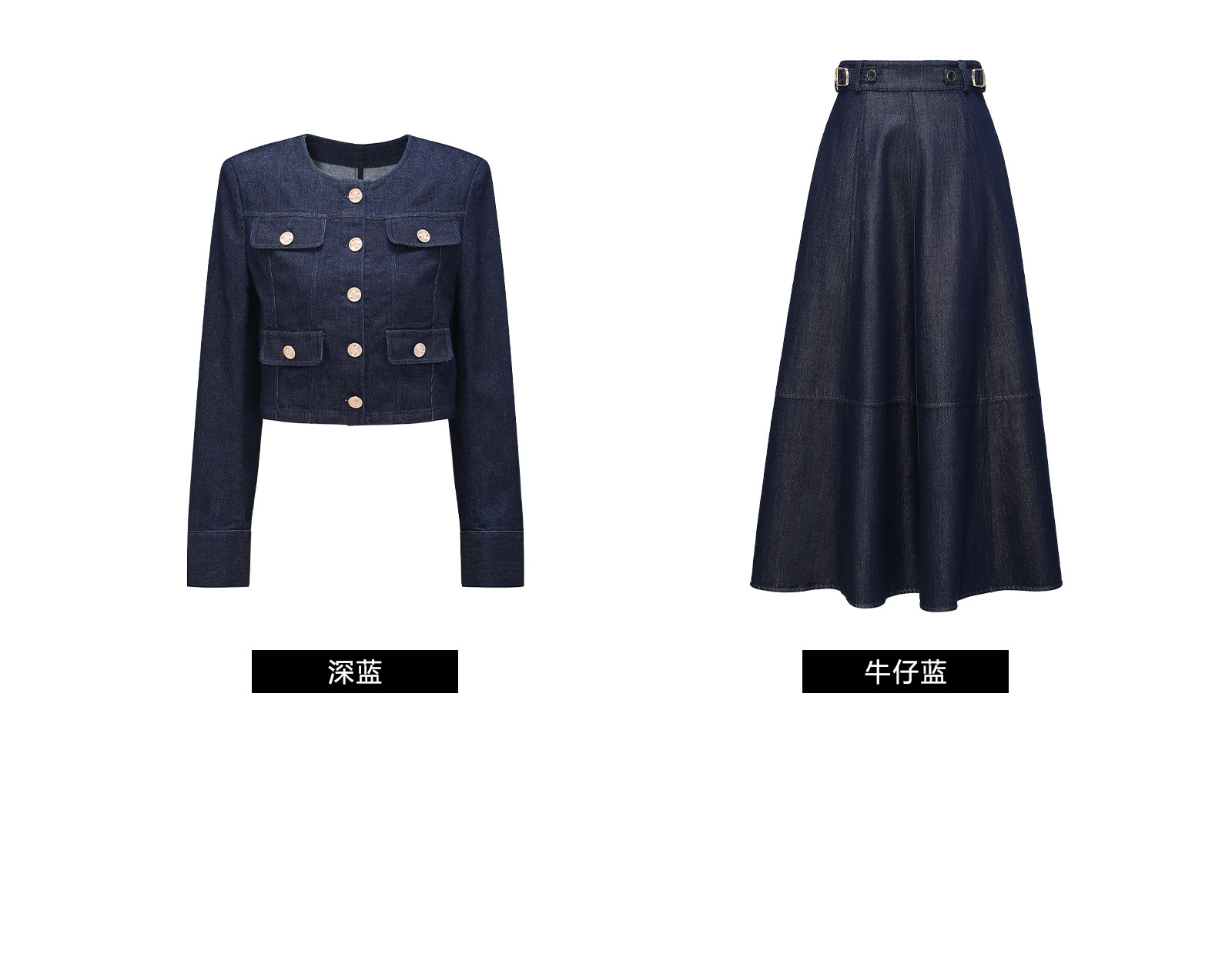 Цветовая классификация темно-синее пальто,Джинсовая синяя юбка