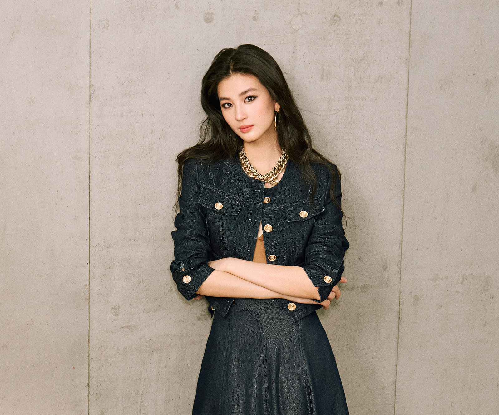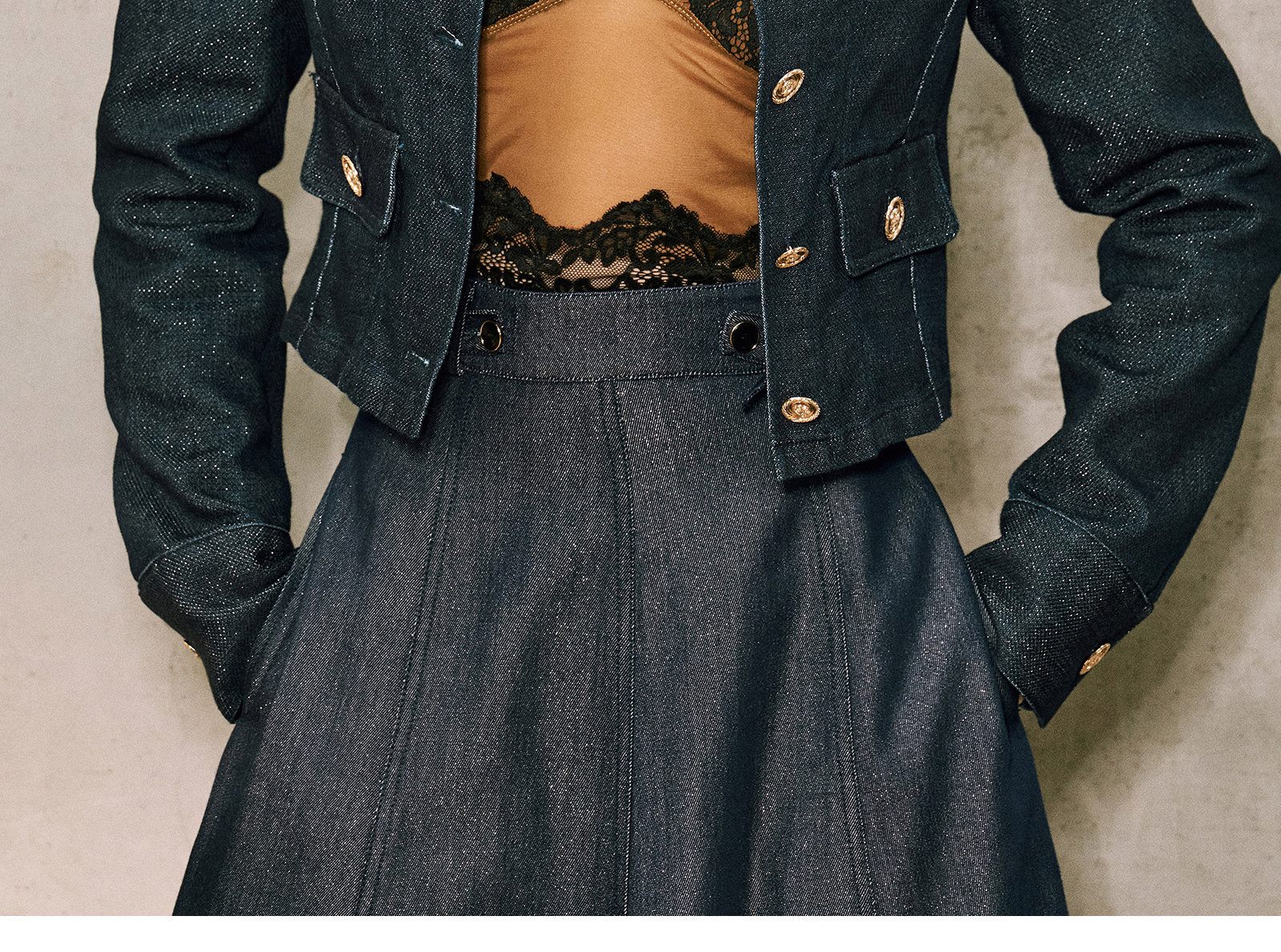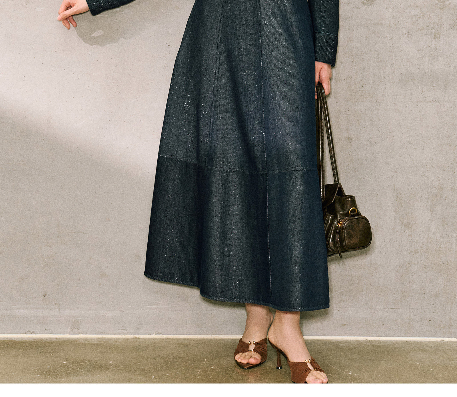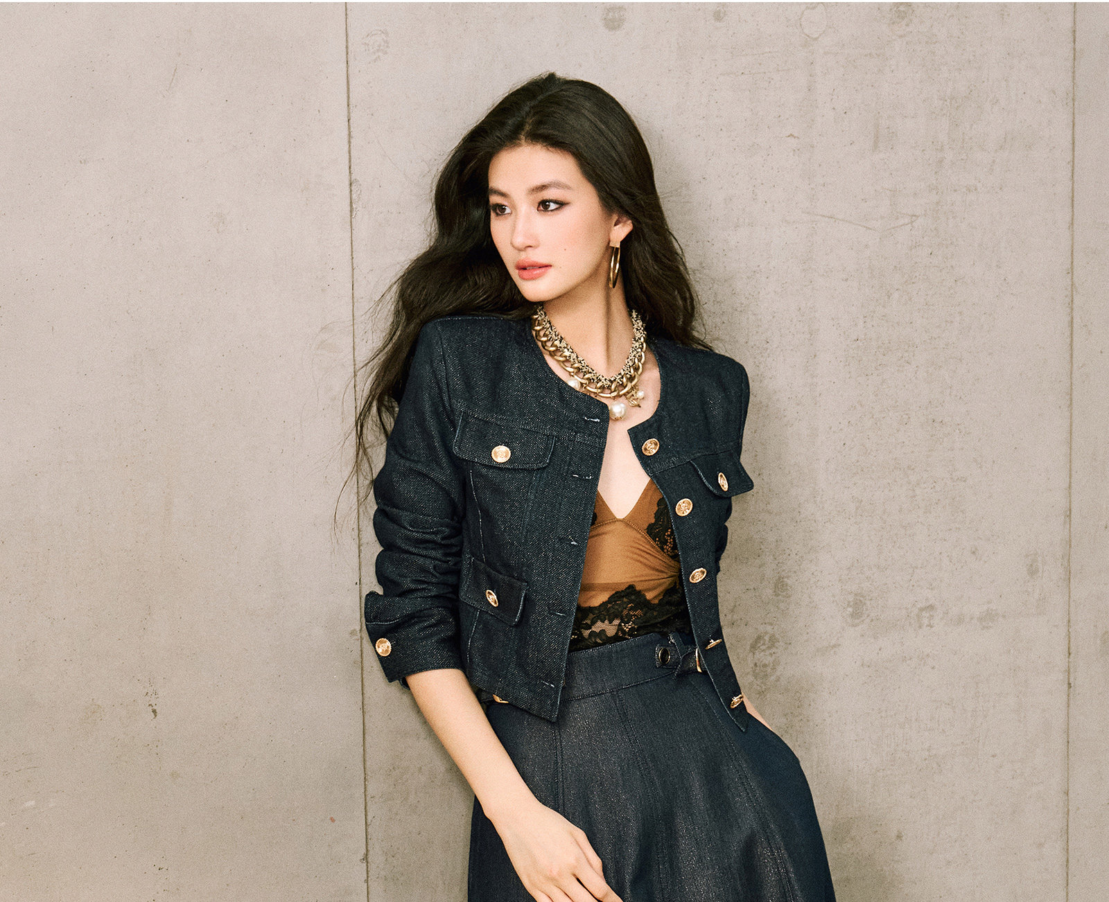 Цветовая классификация темно-синее пальто,Джинсовая синяя юбка