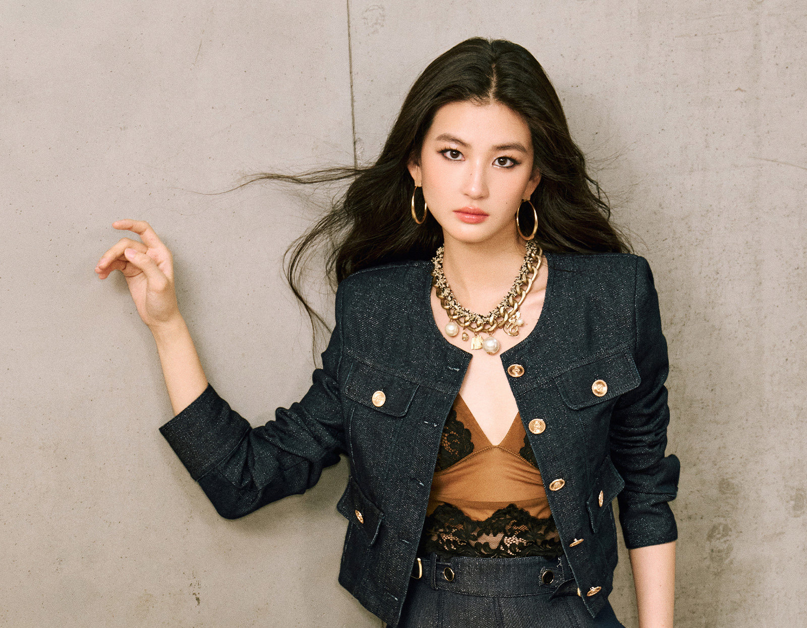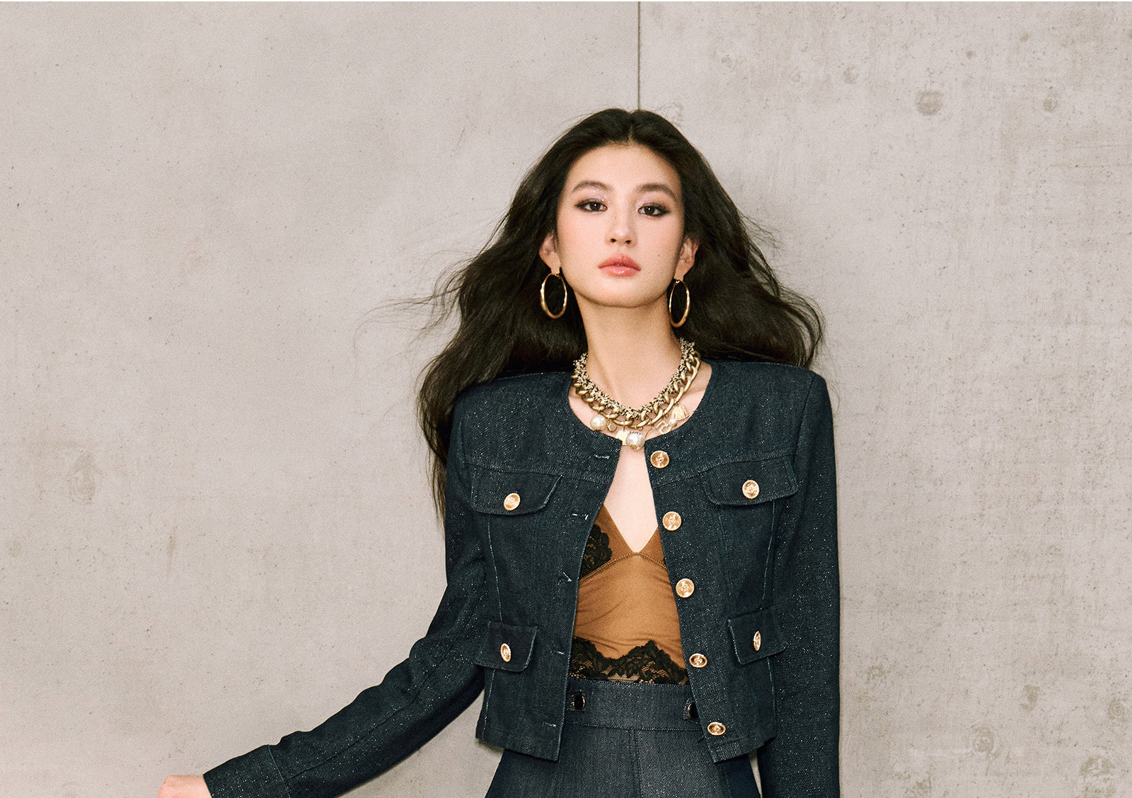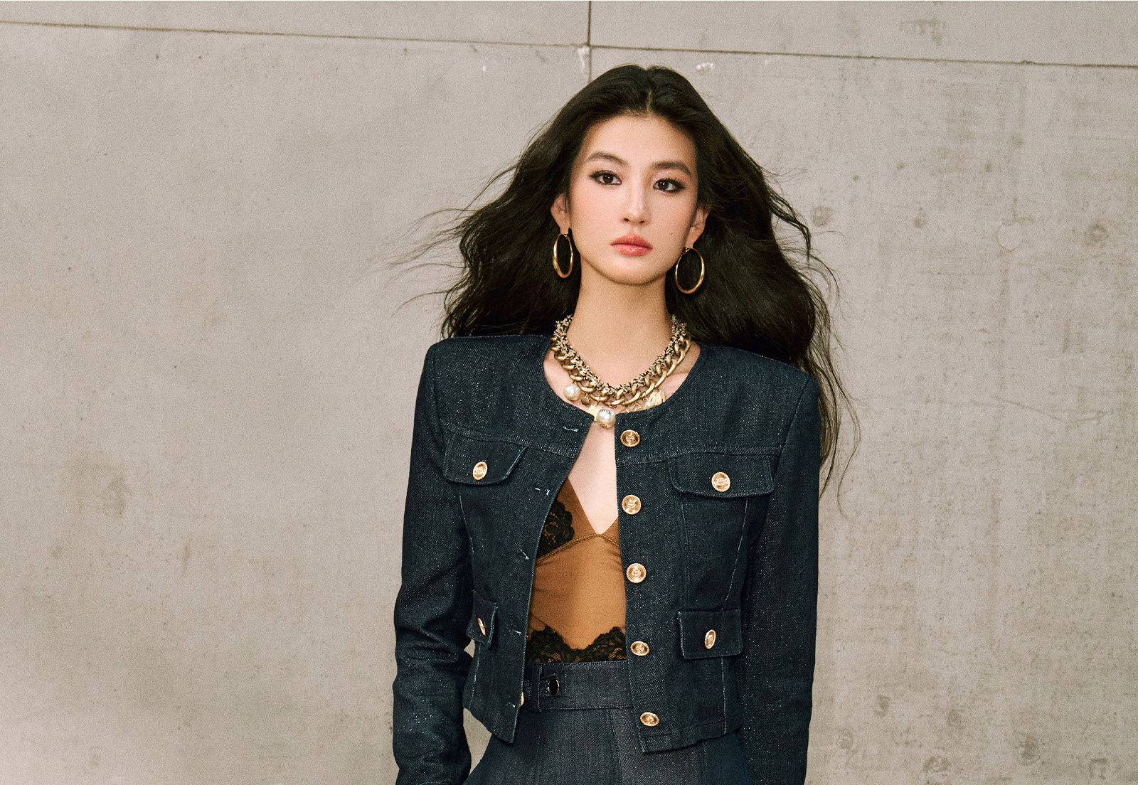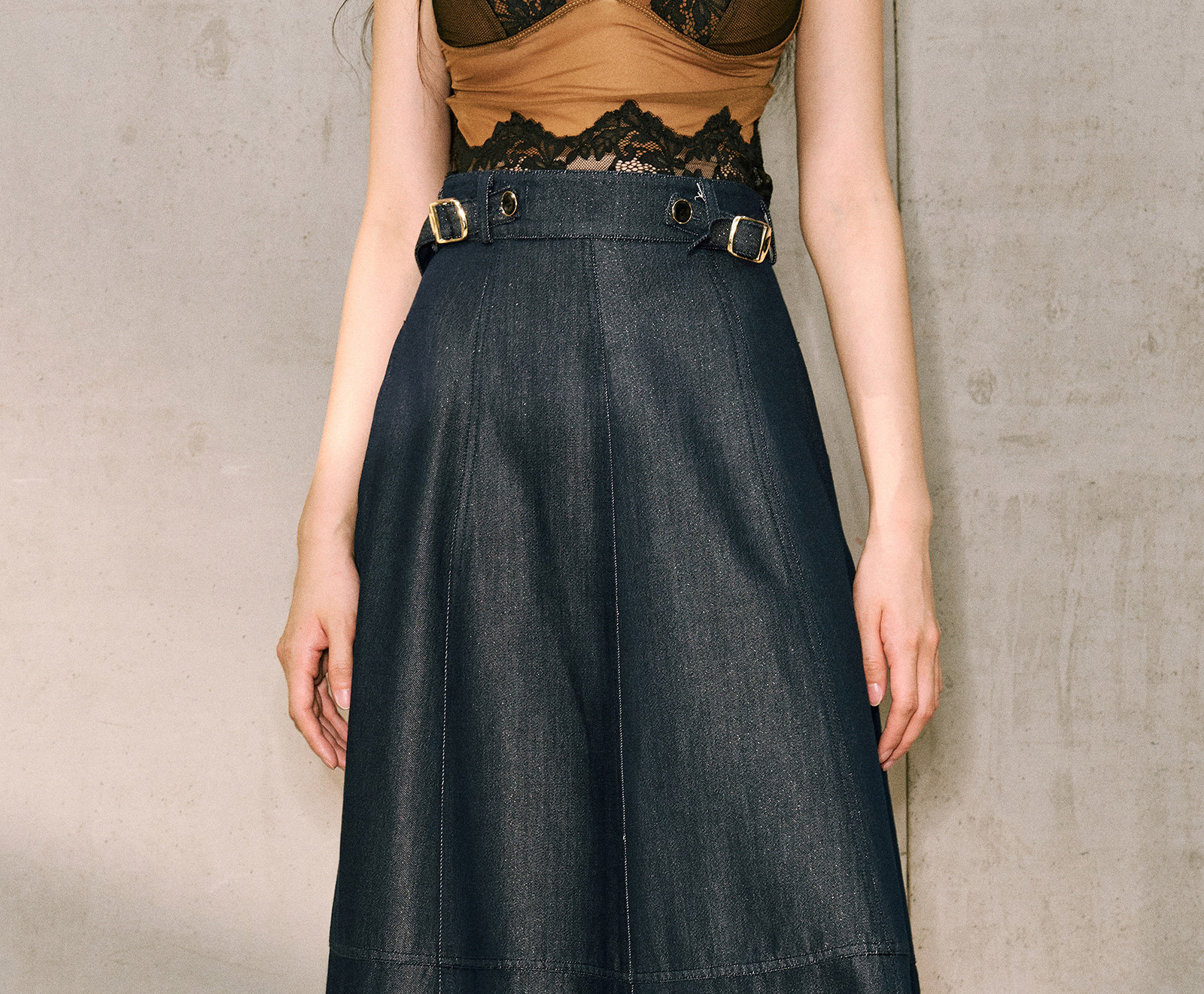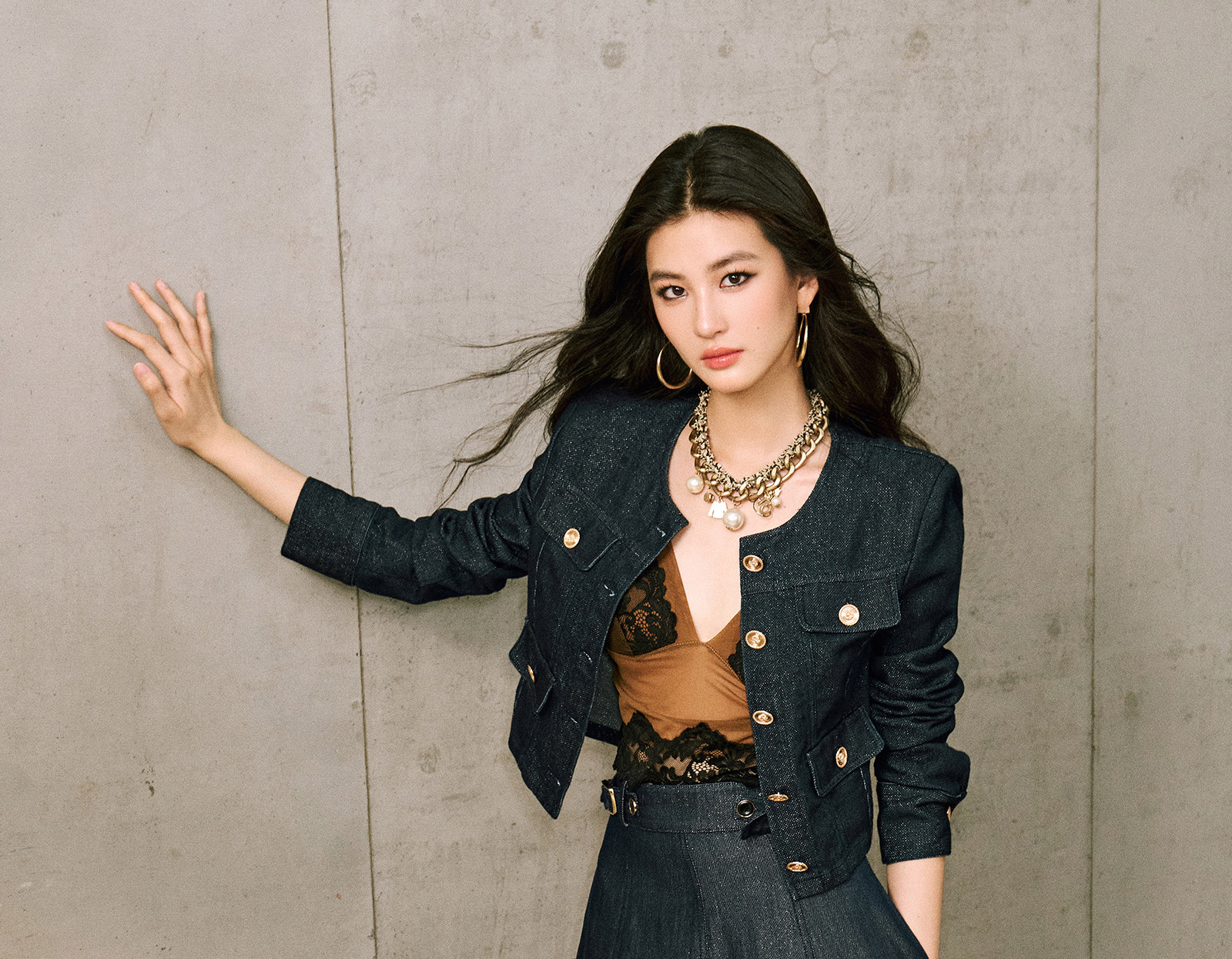 Цветовая классификация темно-синее пальто,Джинсовая синяя юбка