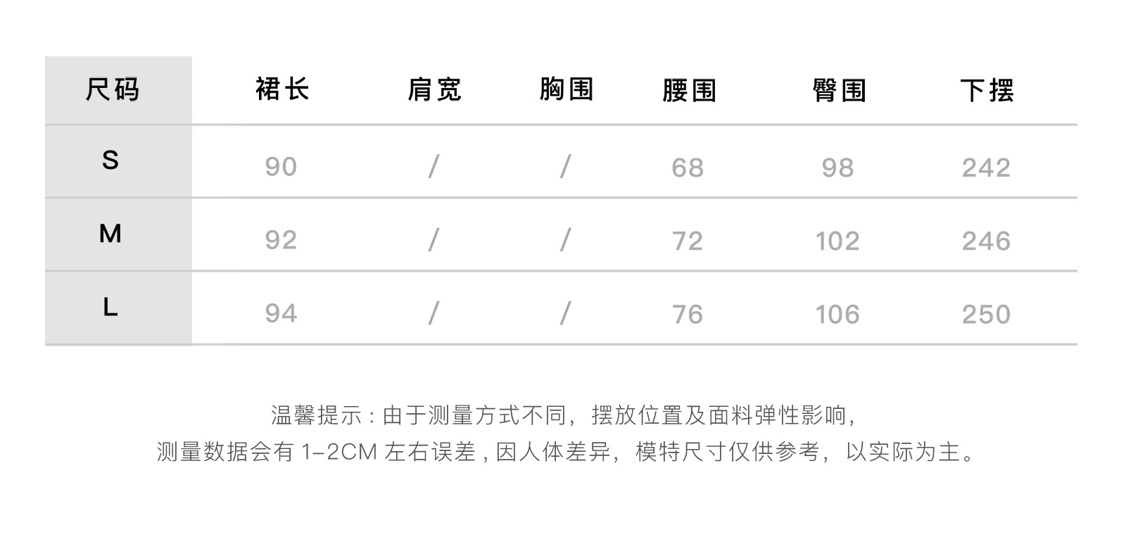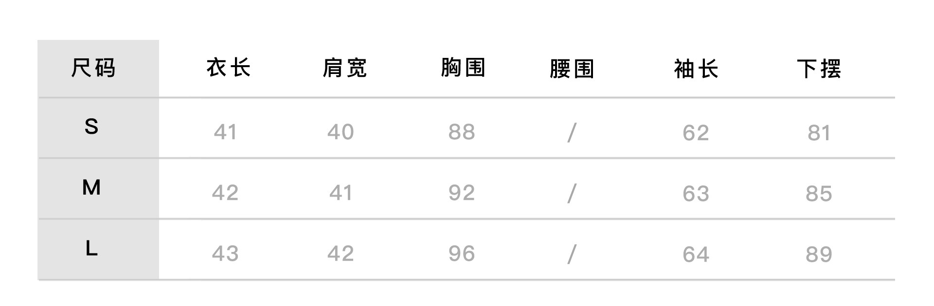 Size (cm) 42 44 46 48 50
