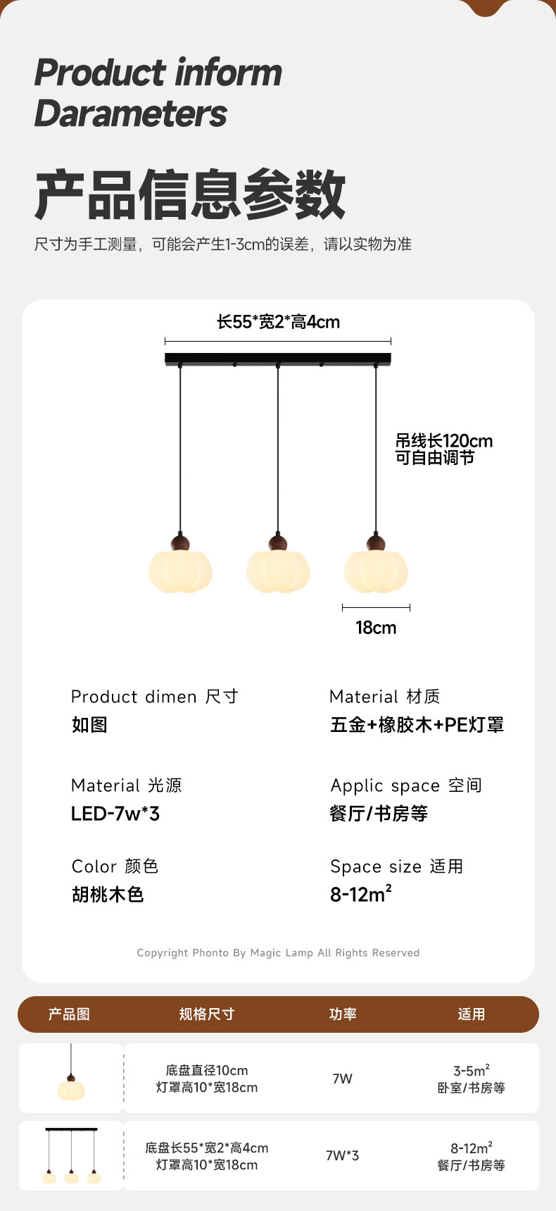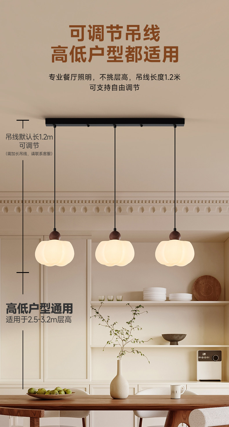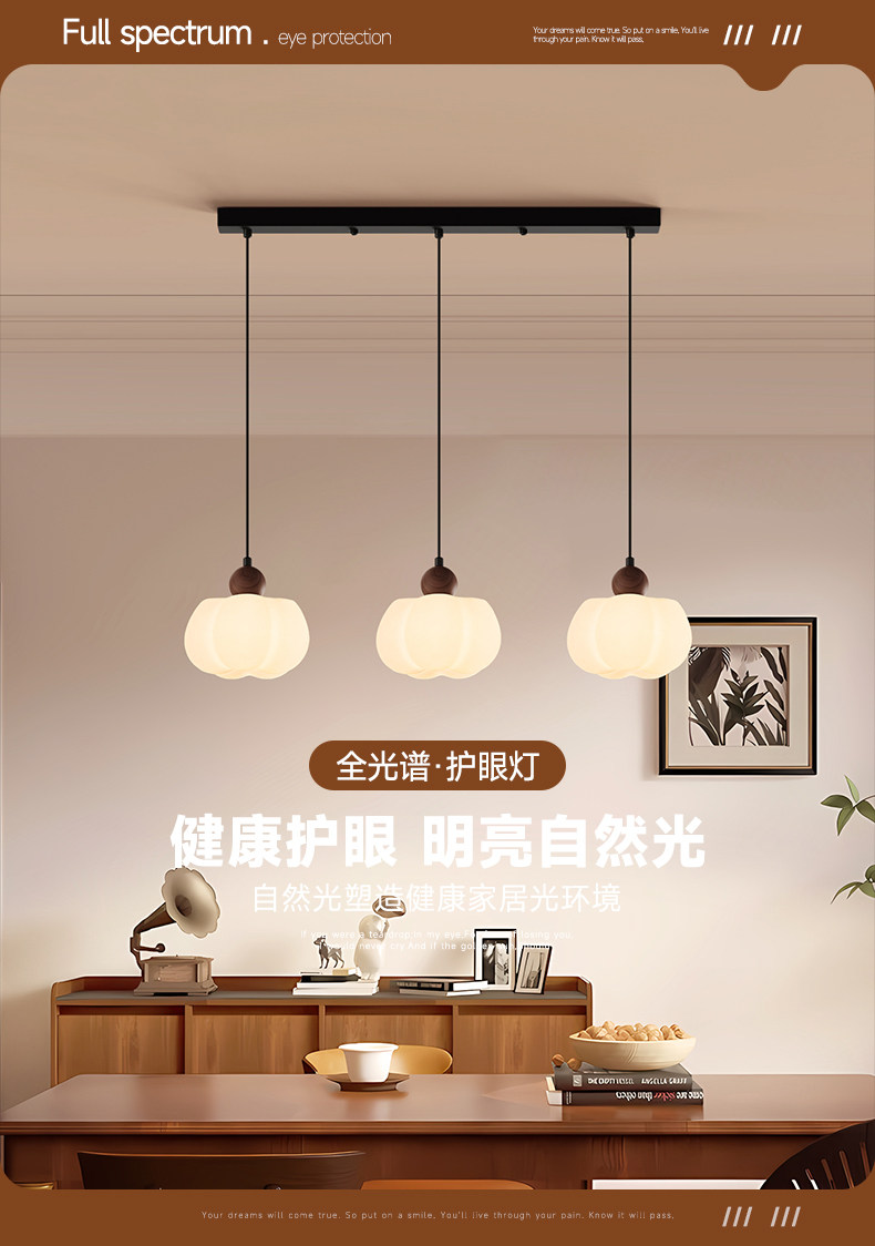 全光谱中古风餐厅南瓜吊灯全光谱原木风日式卧室床头儿童房小吊灯