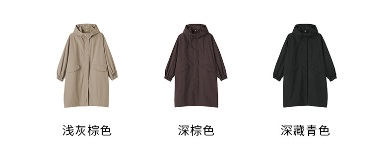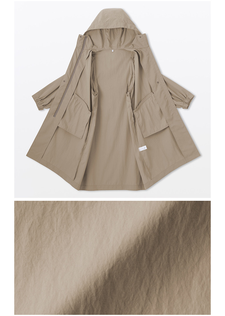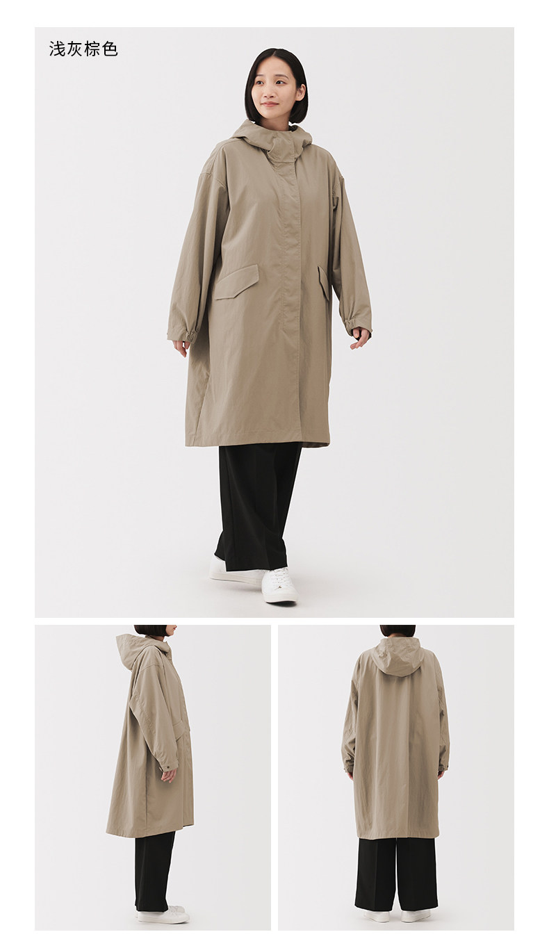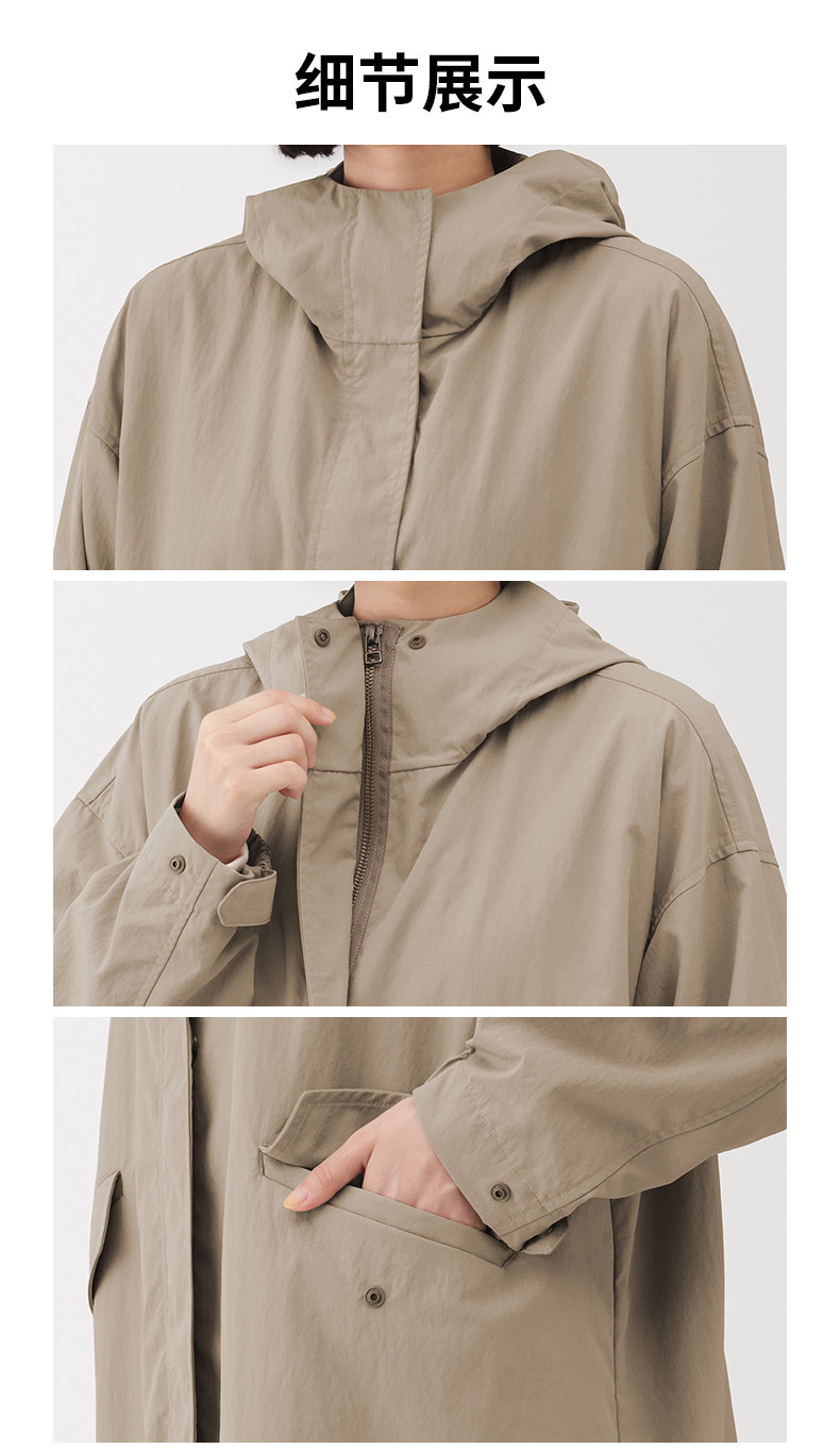 无印良品 MUJI 女式不易沾水防紫外线风帽长大衣防晒女装连帽风衣
