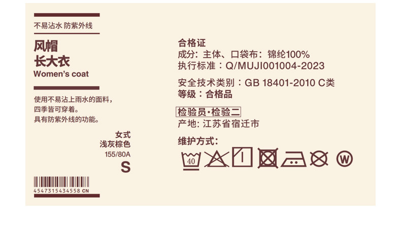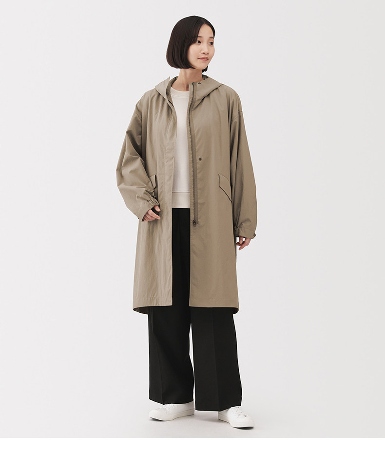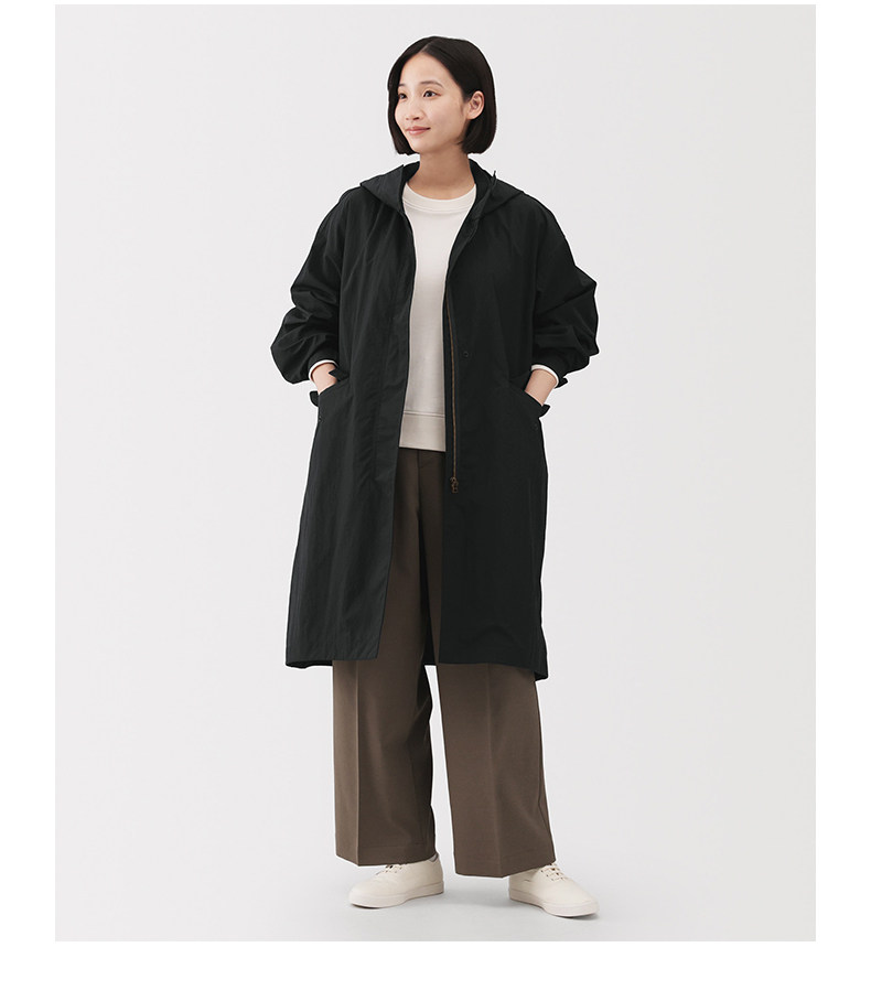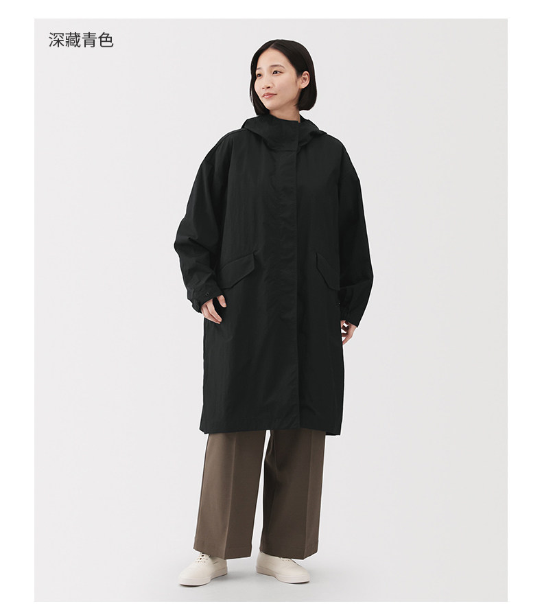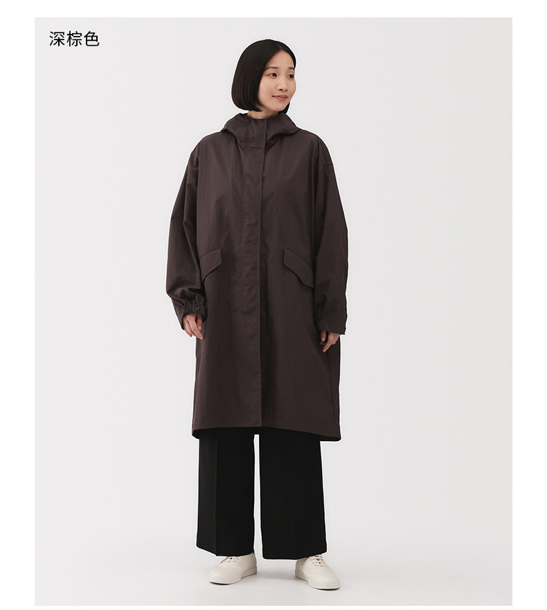 无印良品 MUJI 女式不易沾水防紫外线风帽长大衣防晒女装连帽风衣
