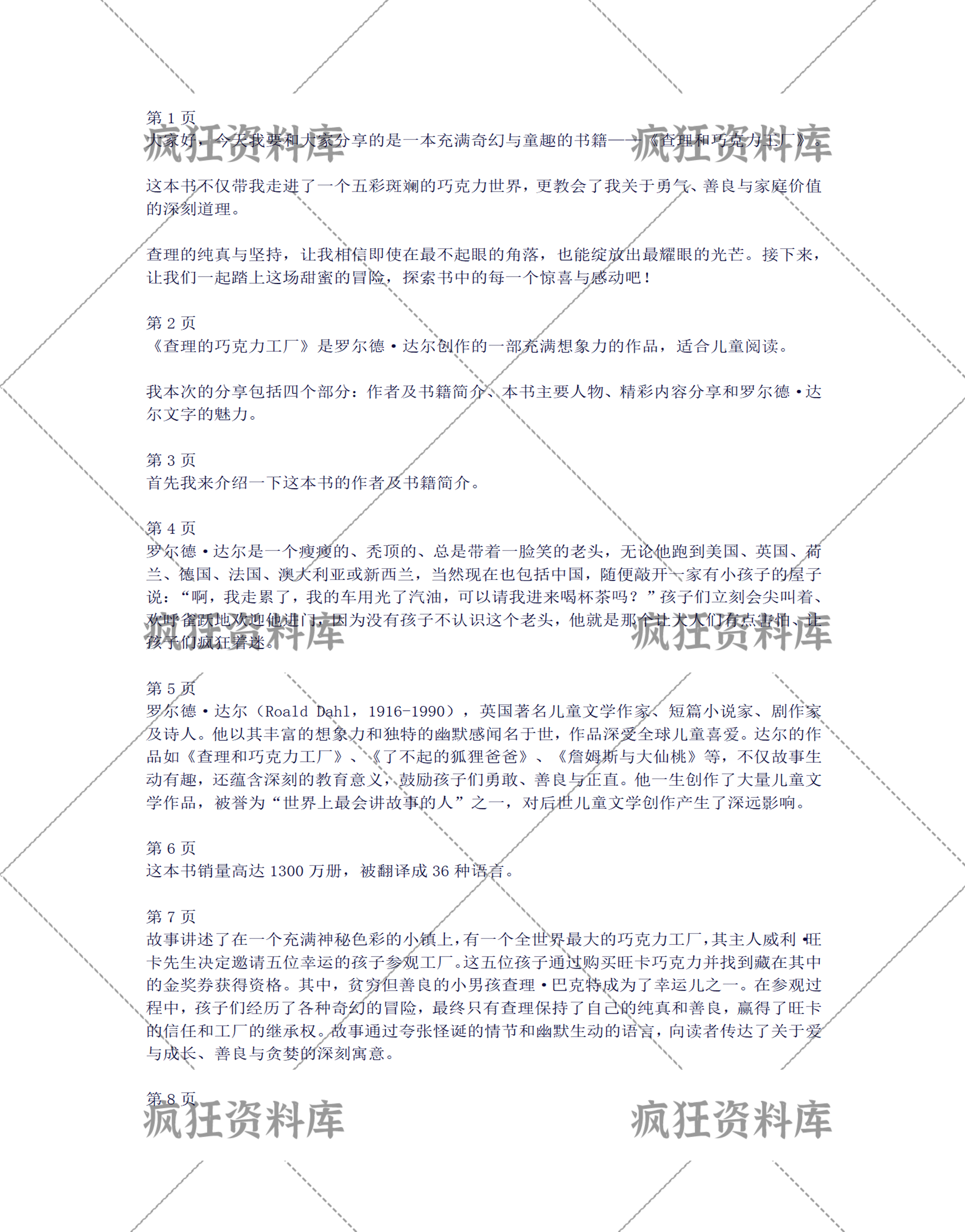 Charlie's Chocolate Factory Ppt Supporting Lecture Notes Reading Template Literary Masterpiece Introduction After-Reading Reflection Courseware
