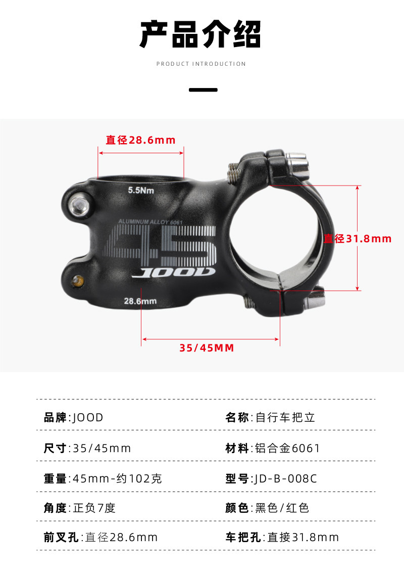 公路自行车山地车公路车铝合金立管超轻山地短把立31.8X35mm把立
