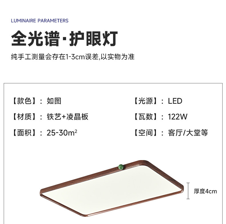 Medieval Style Living Room Ceiling Lamp Full Spectrum Walnut Color Cream Style Headlight Retro Ultra-Thin Bedroom Ceiling Lamp