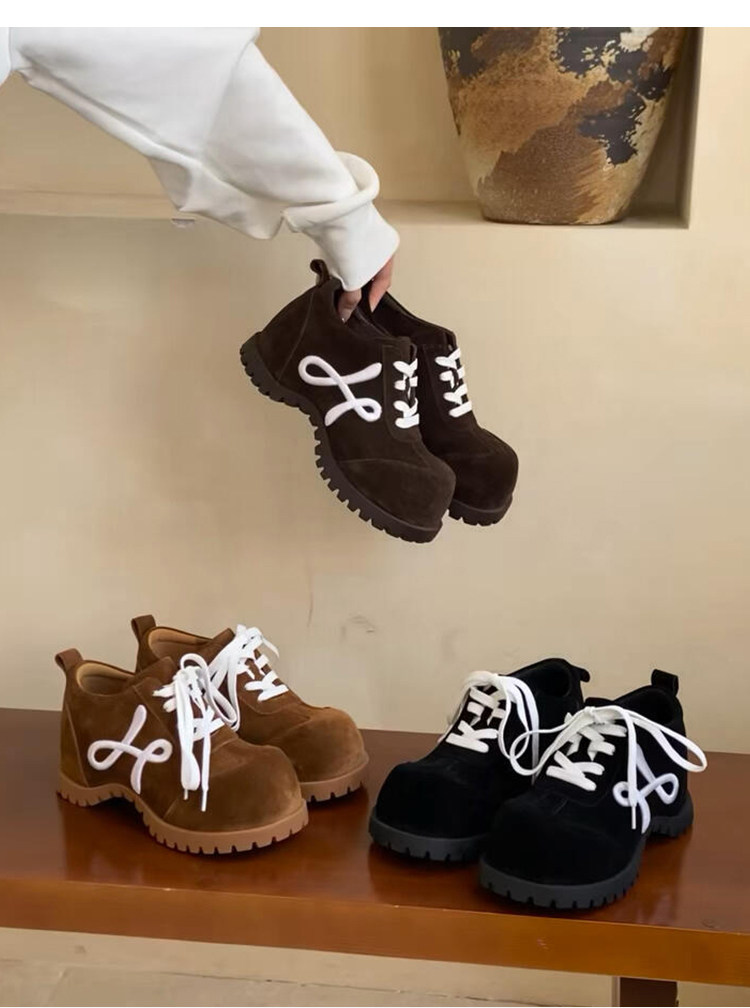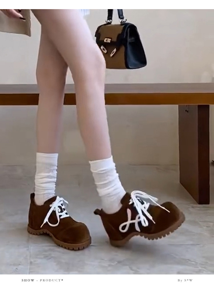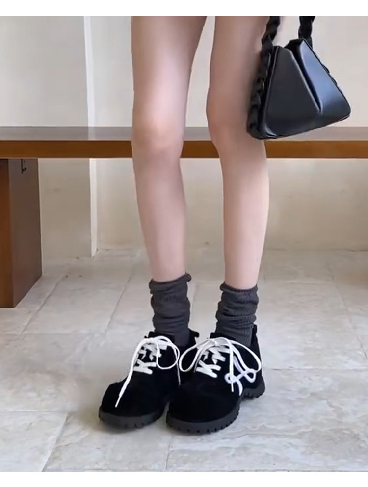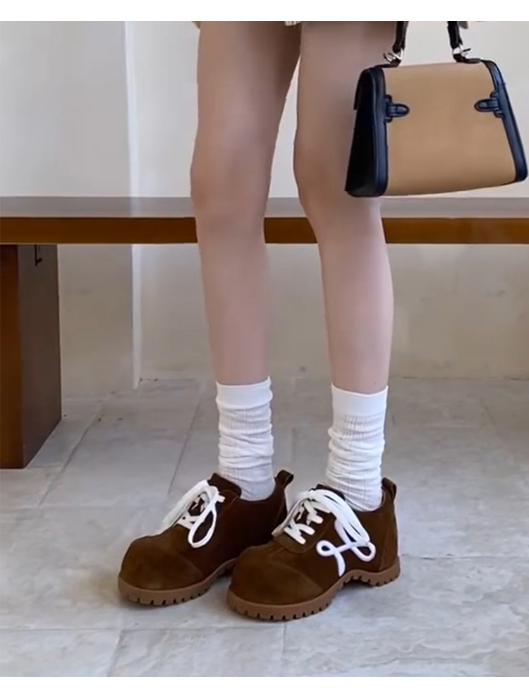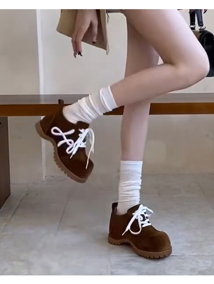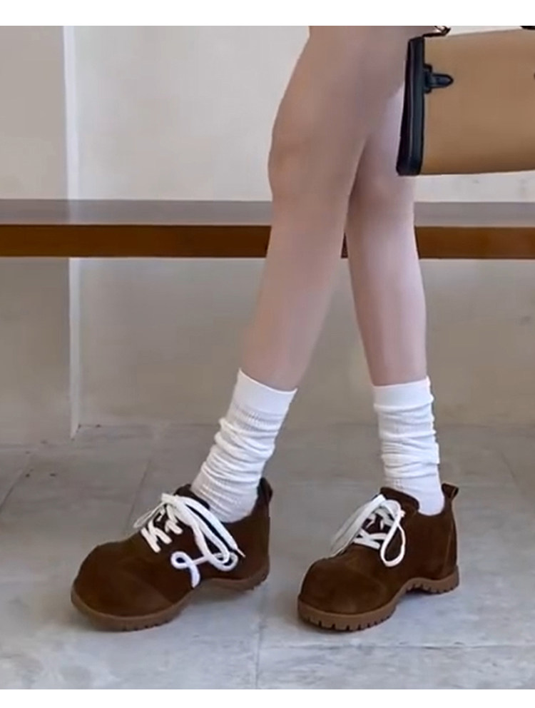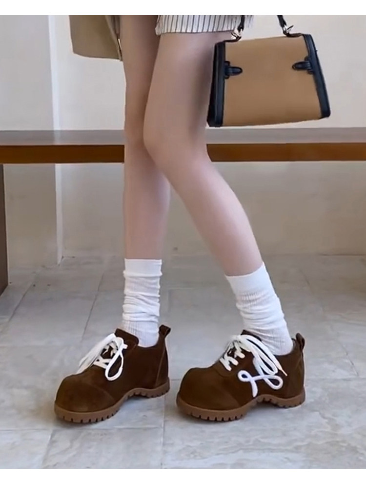 羊皮版~小众新款厚底小个子勃肯德训鞋女复古系带时尚休闲大头鞋