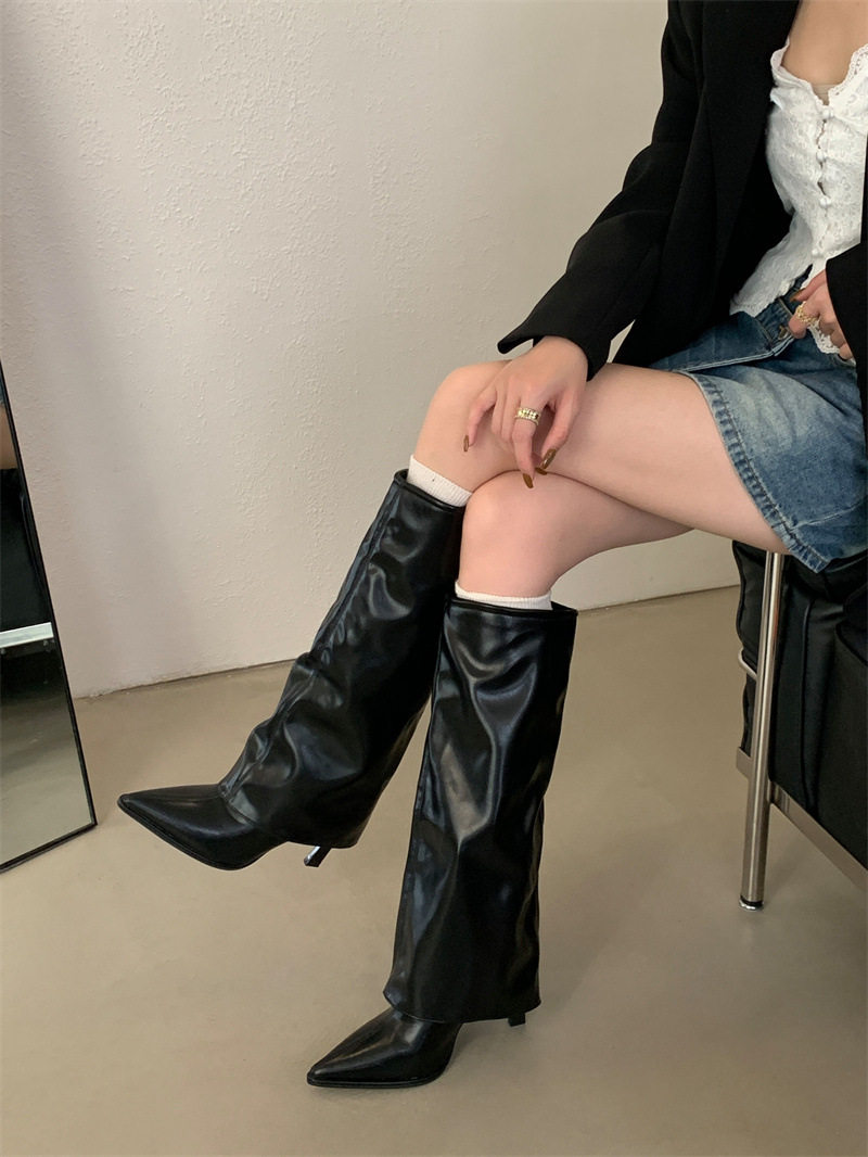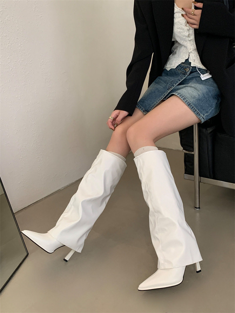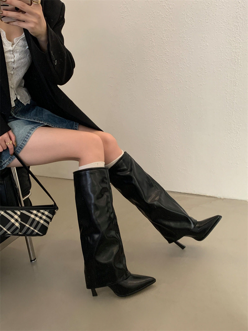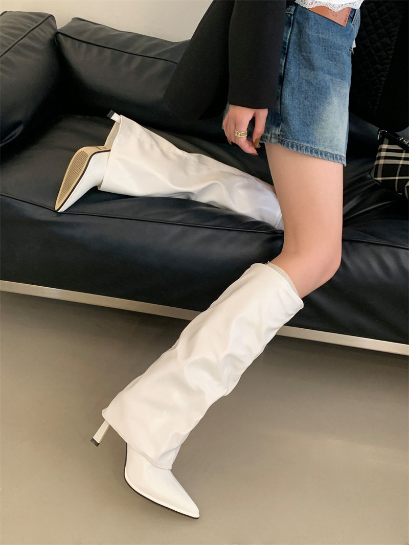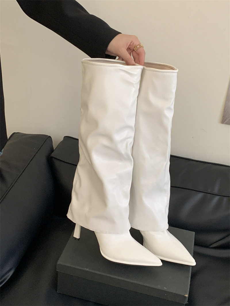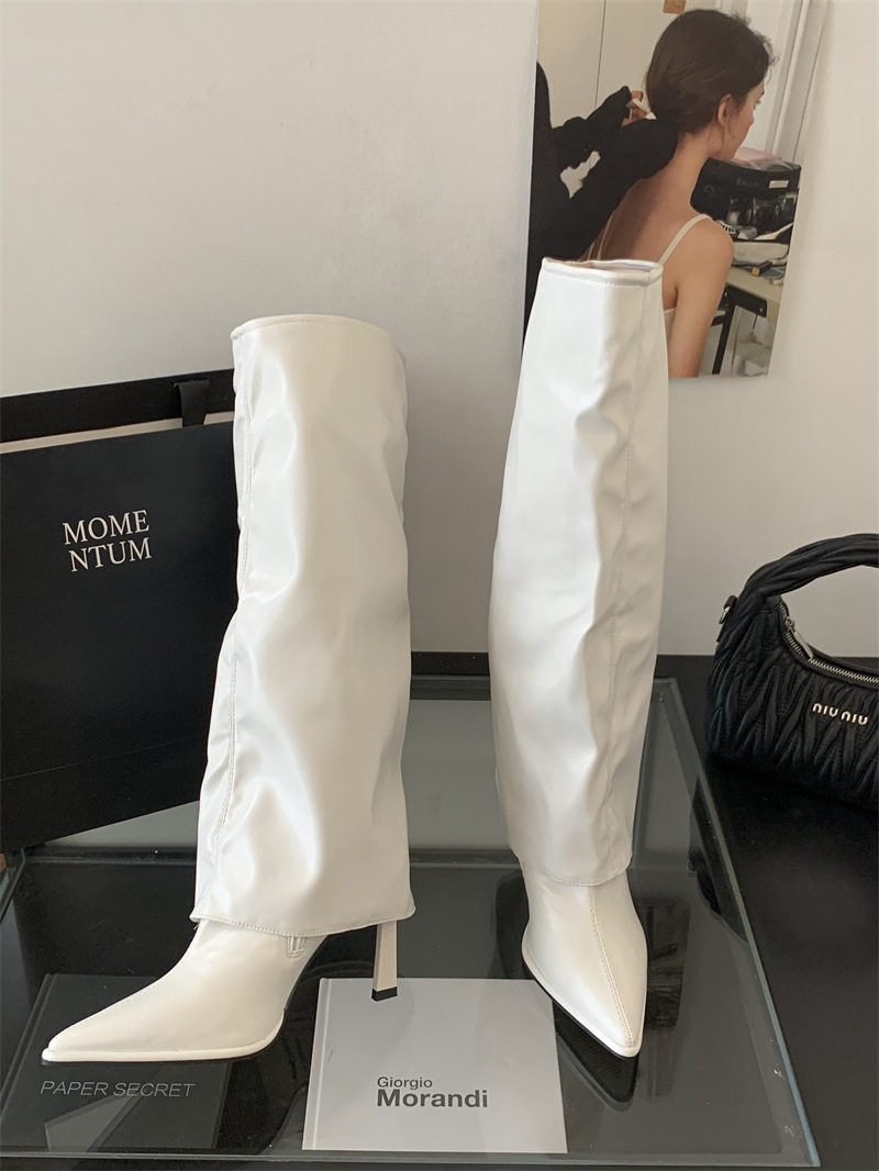 European and American Style High-Heeled Long Boots, Patent Leather Bootshose Boots, Pointed Toe High-Tube Stiletto Boots, Over-The-Knee Boots, Autumn and Winter Spicy Girl Riding Boots