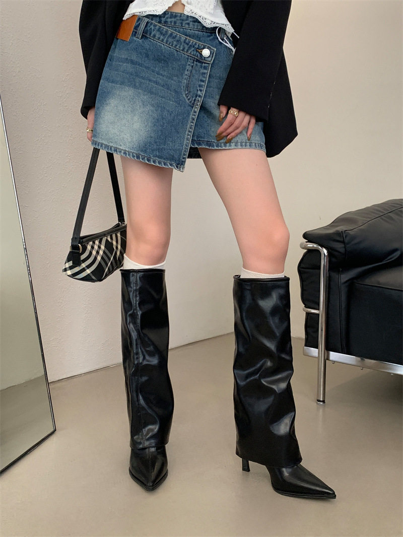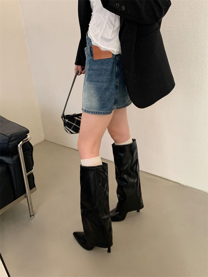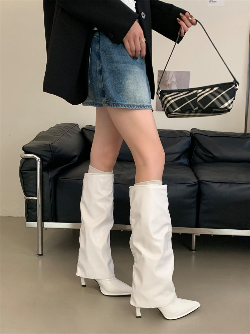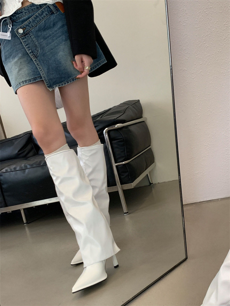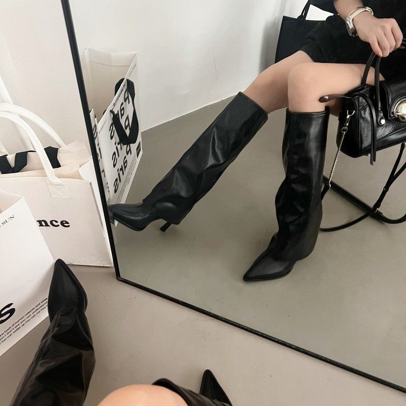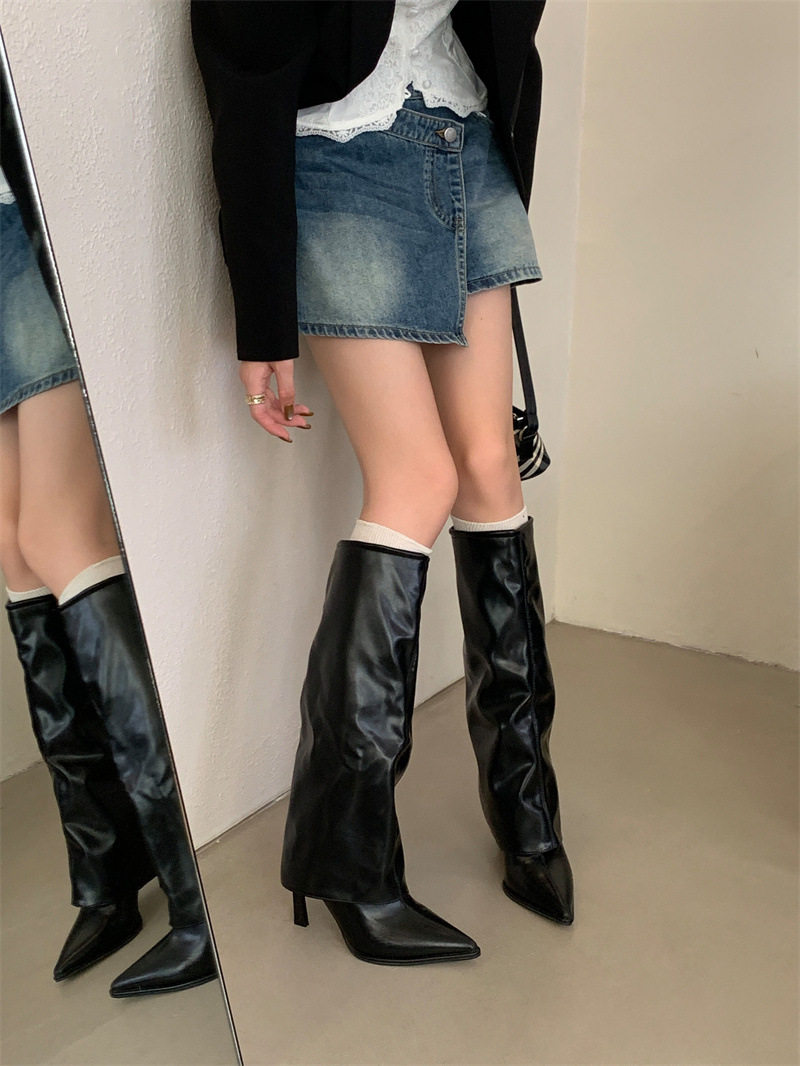 European and American Style High-Heeled Long Boots, Patent Leather Bootshose Boots, Pointed Toe High-Tube Stiletto Boots, Over-The-Knee Boots, Autumn and Winter Spicy Girl Riding Boots