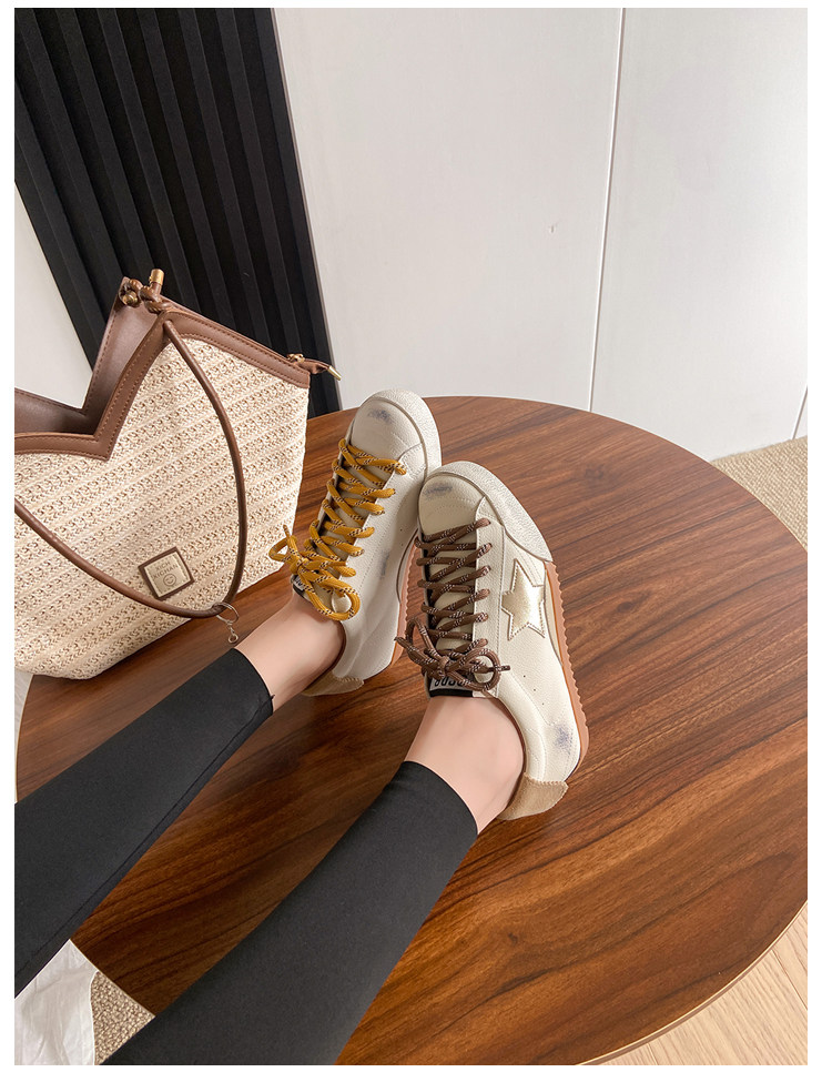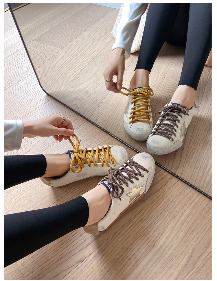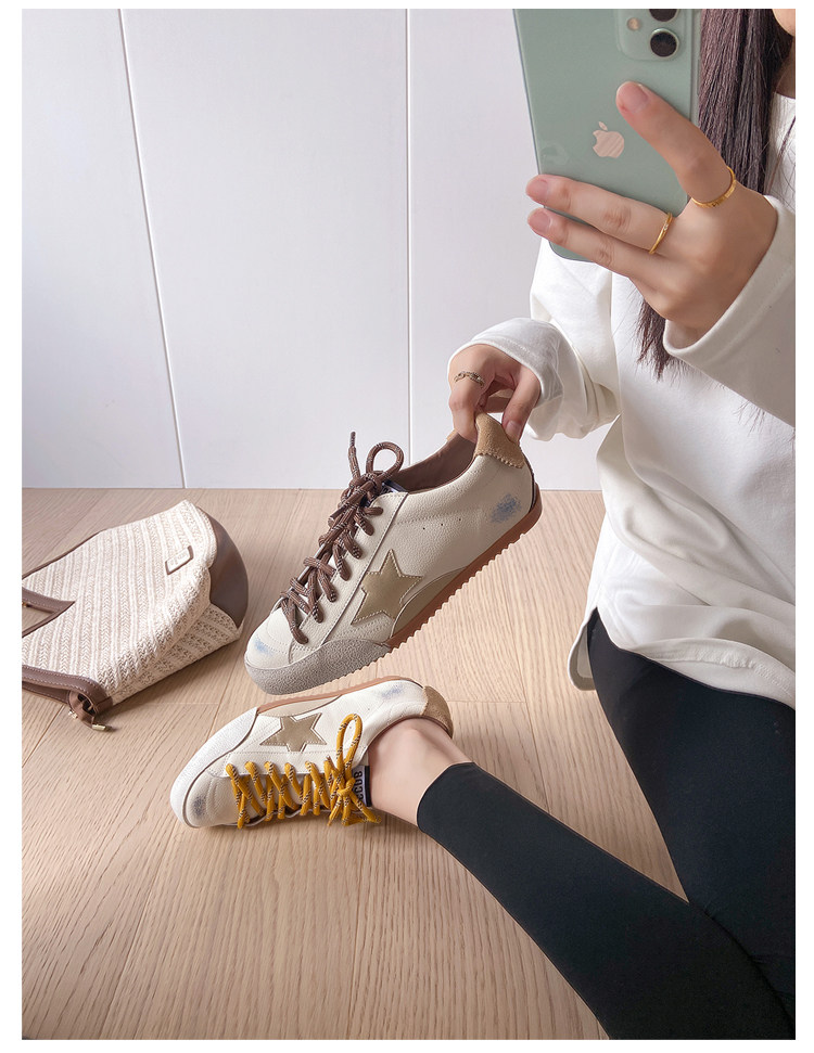Versión de piel de vaca ~ zapatos sucios Retro de estrella vieja para mujer 2025, nuevas zapatillas deportivas informales, zapatos Forrest Gump, zapatos de entrenamiento moral
