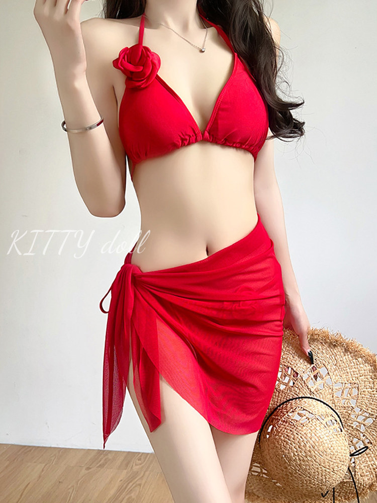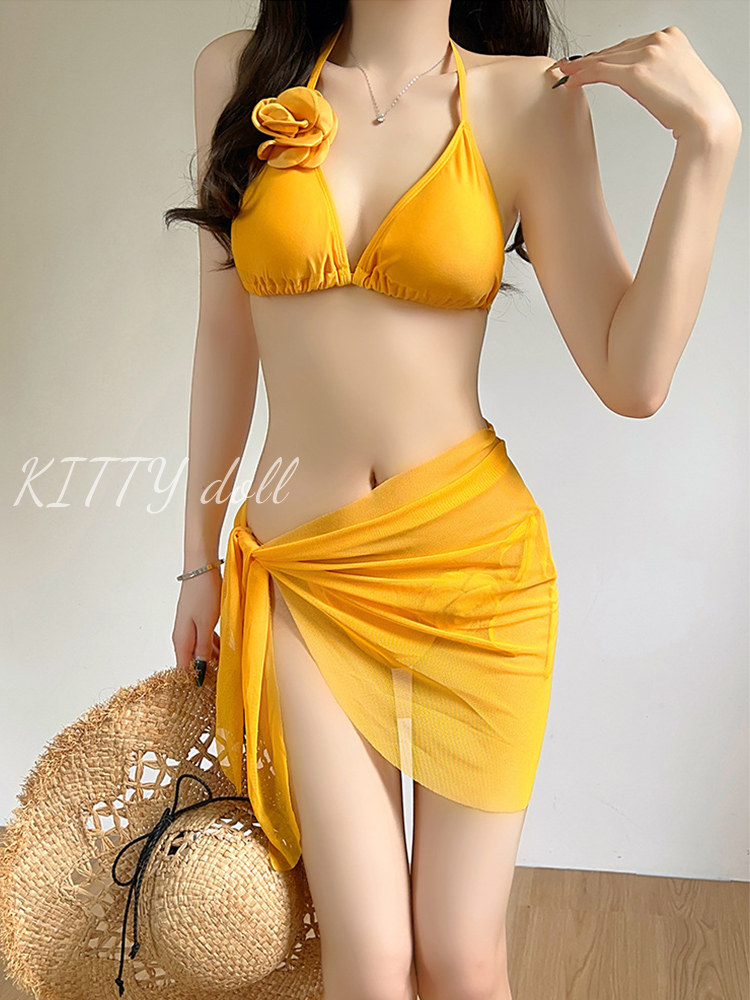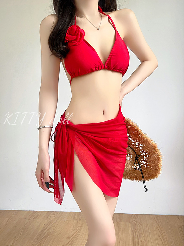 2025新款比基尼分体泳衣女高级性感纯欲风独特漂亮海边度假三件套