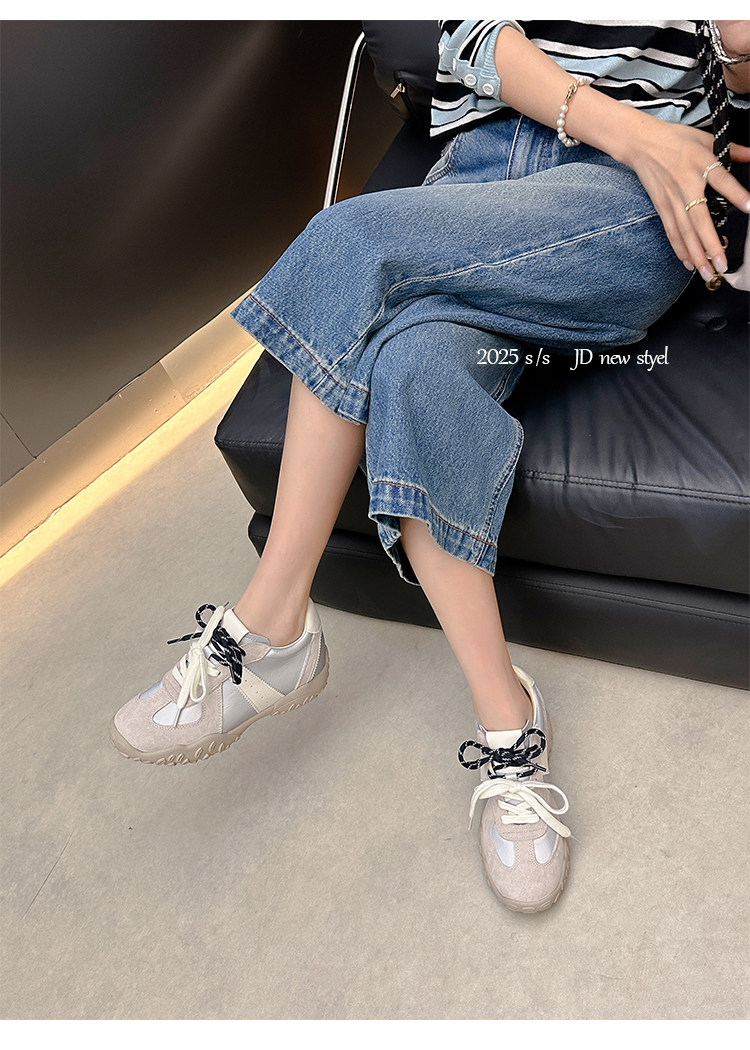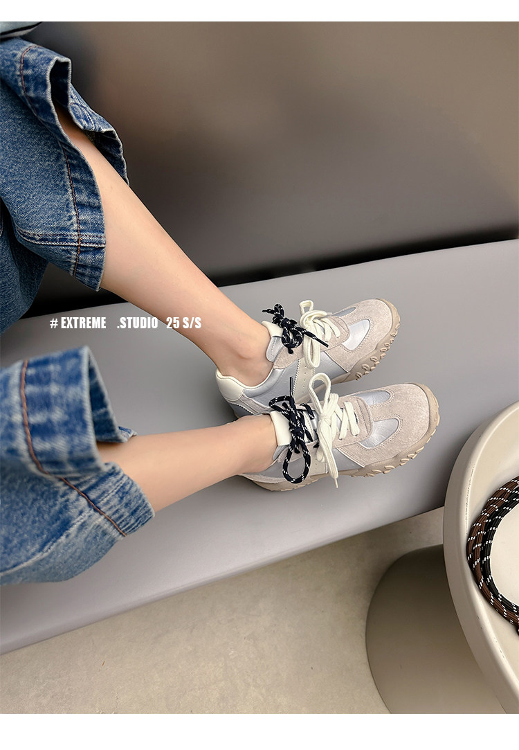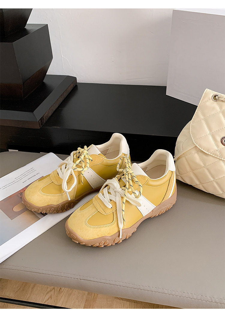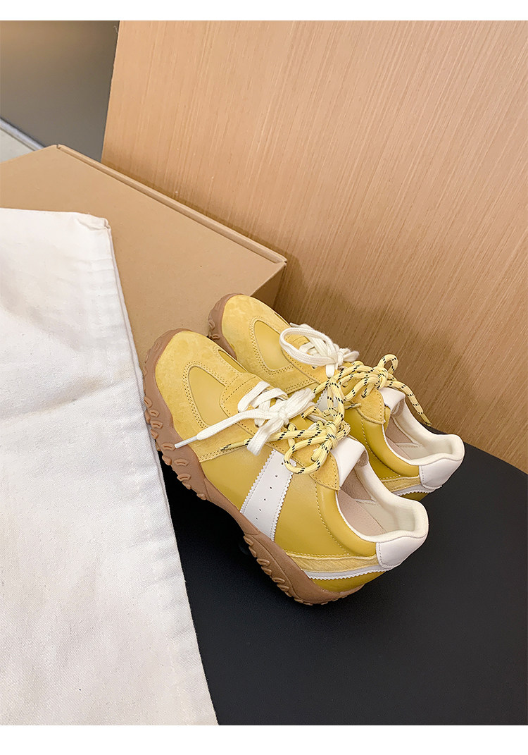 Genuine Leather ~7Cm Height-Increasing Women's Sneakers 2025 Summer New Yellow Thick-Soled Comfortable Ballet Training Shoes