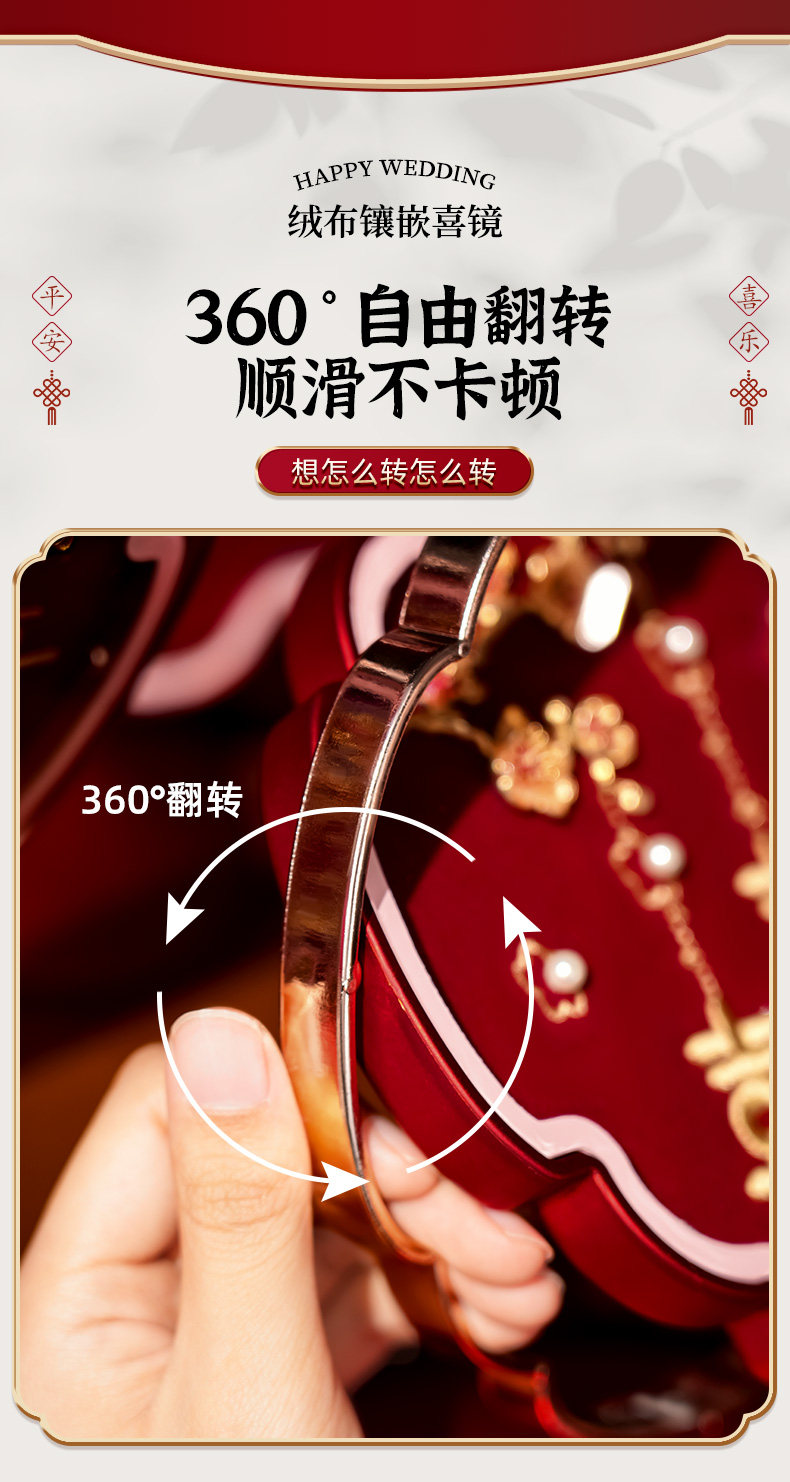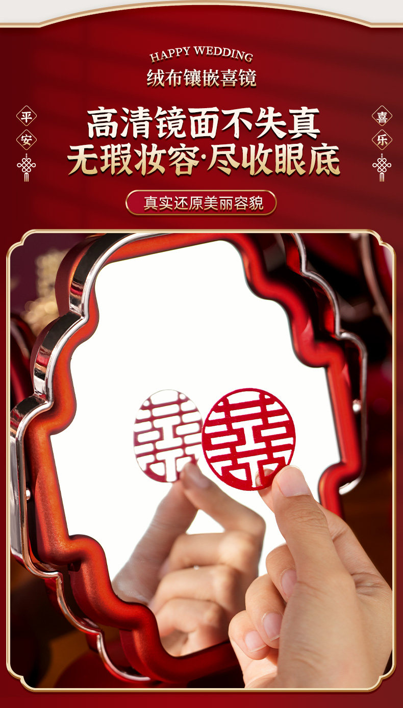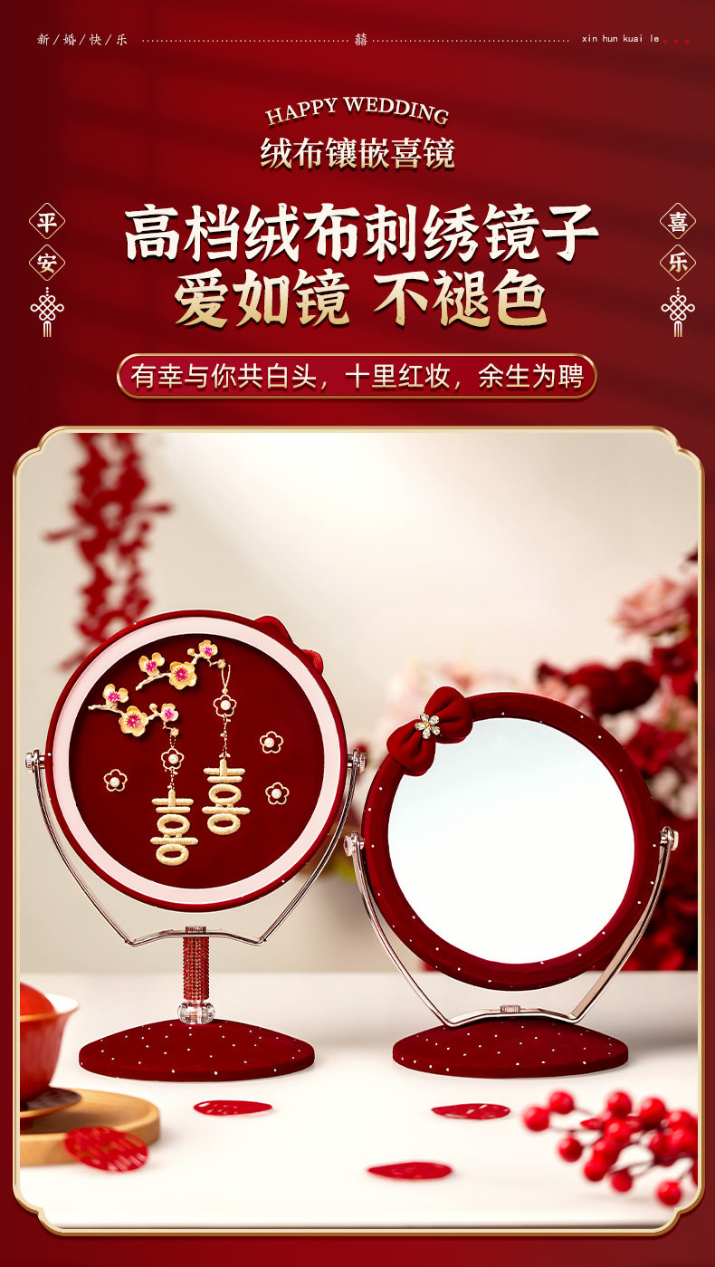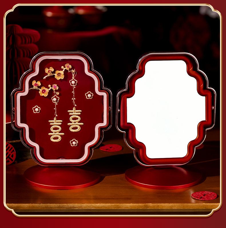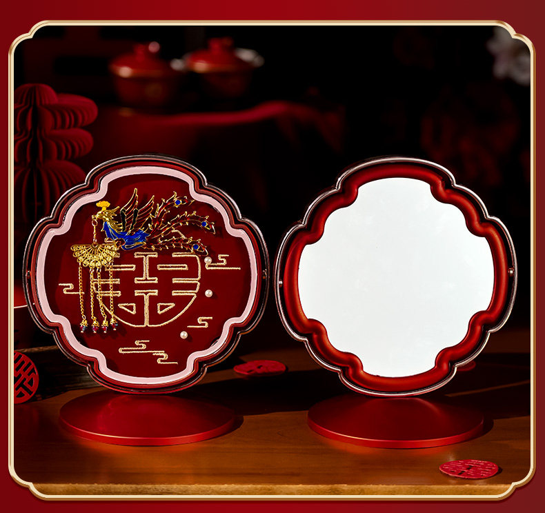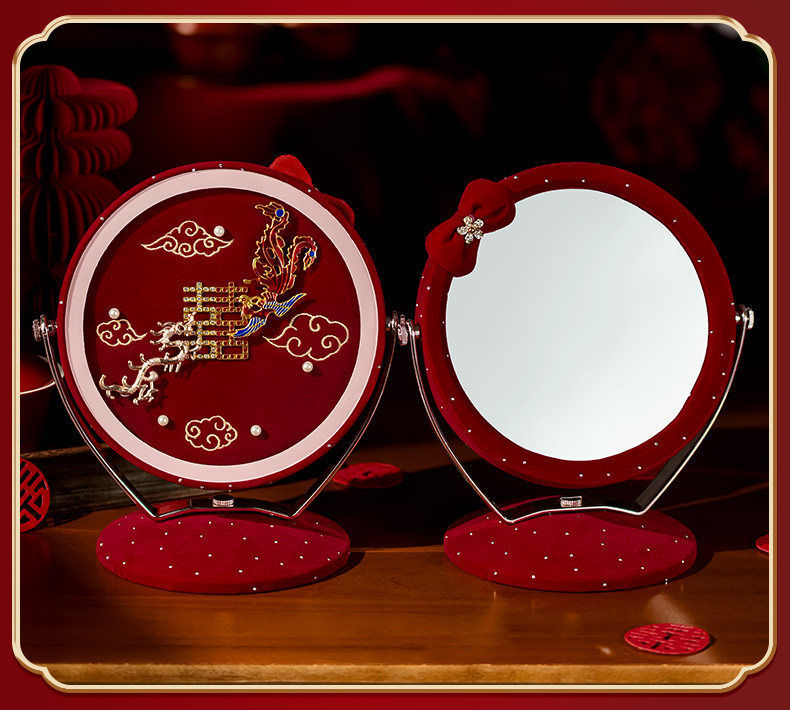 婚礼新婚化妆镜结婚陪嫁物品红色镜子一对婚庆用品大全新娘梳妆镜