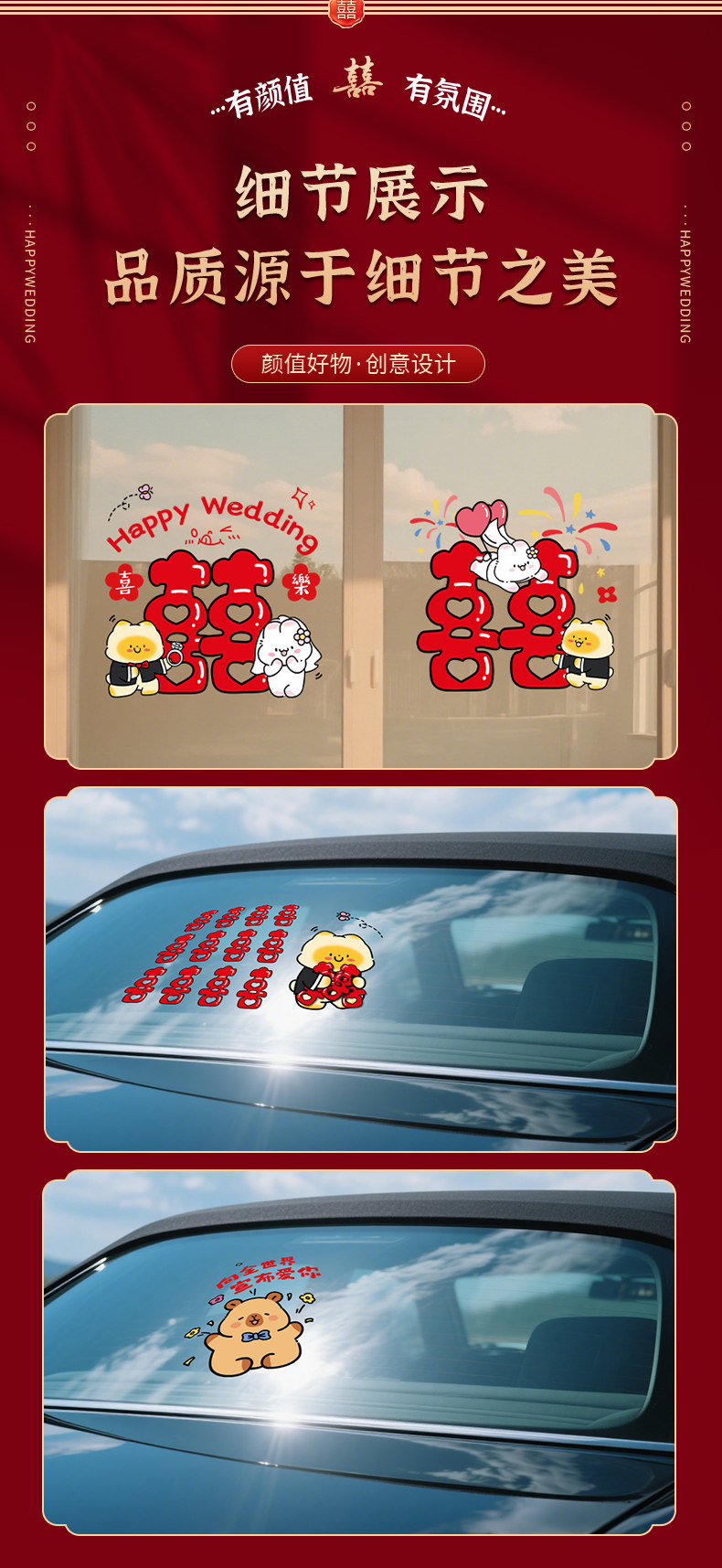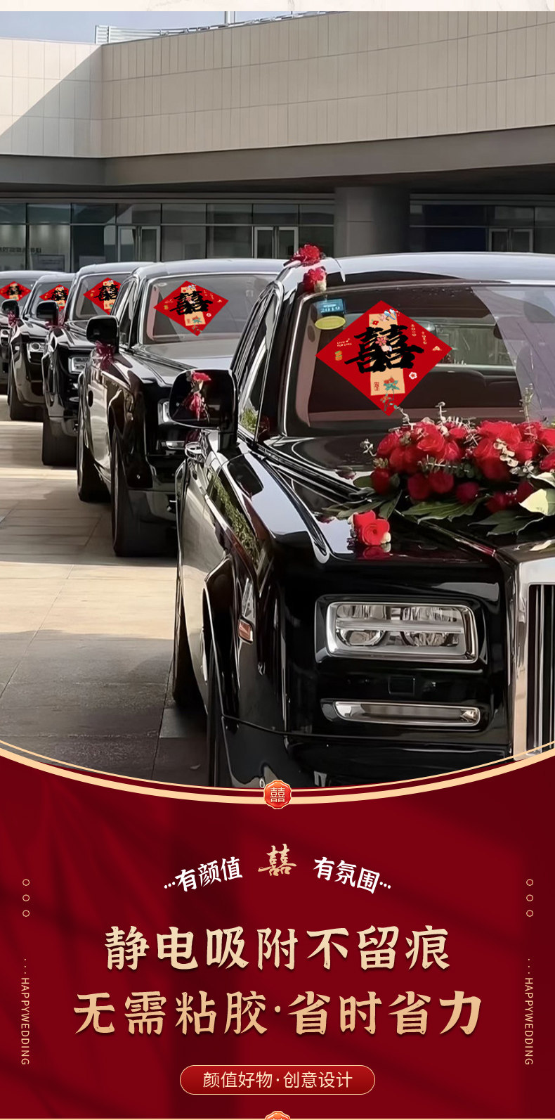 Wedding Decoration Essential Car Stickers with the Character for Happiness, Special Electrostatic Stickers for Wedding Car Decoration, Wedding Supplies, Glass Stickers