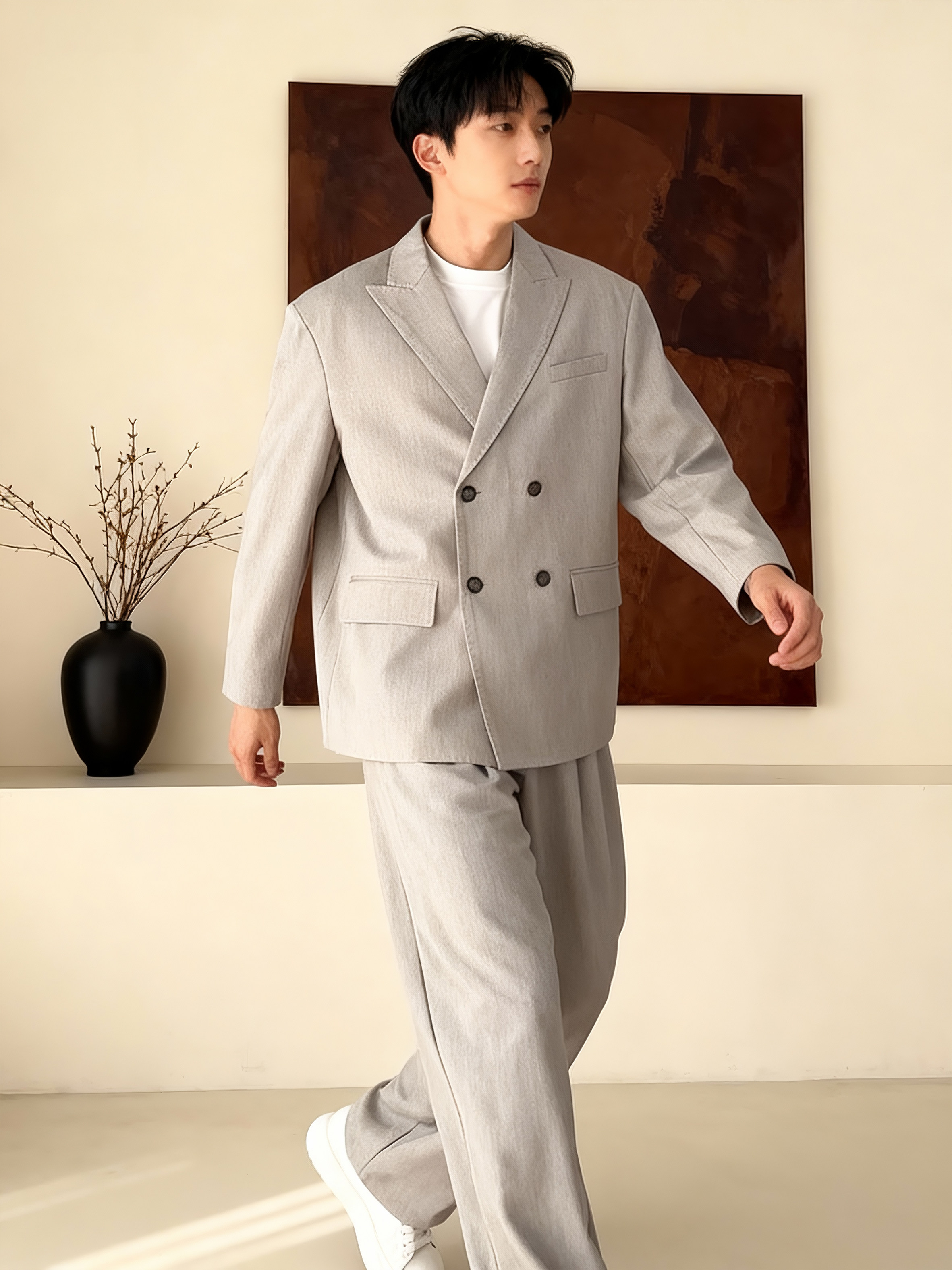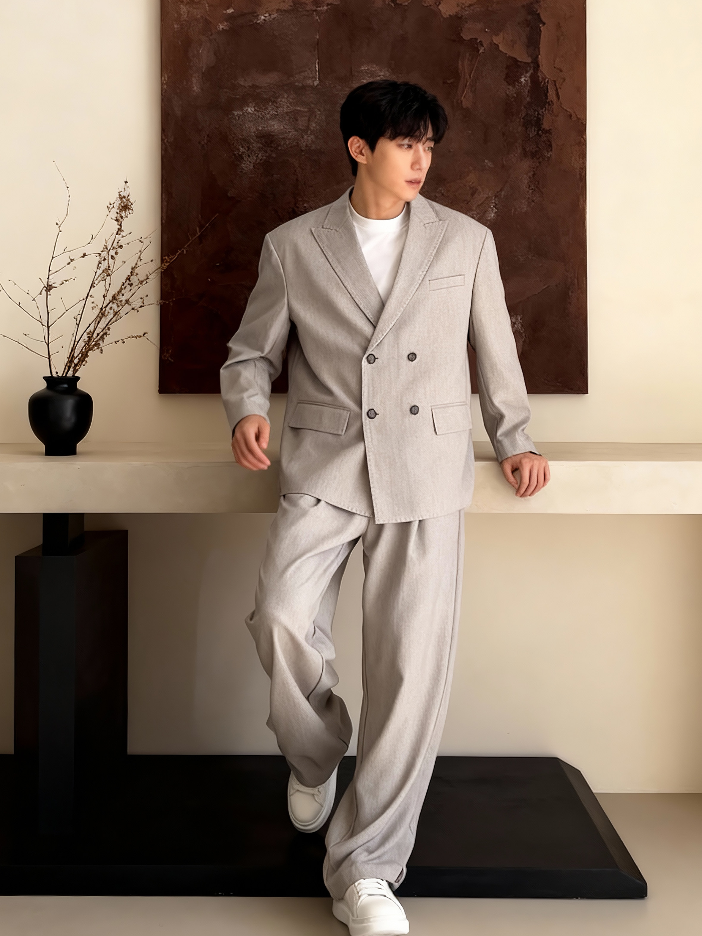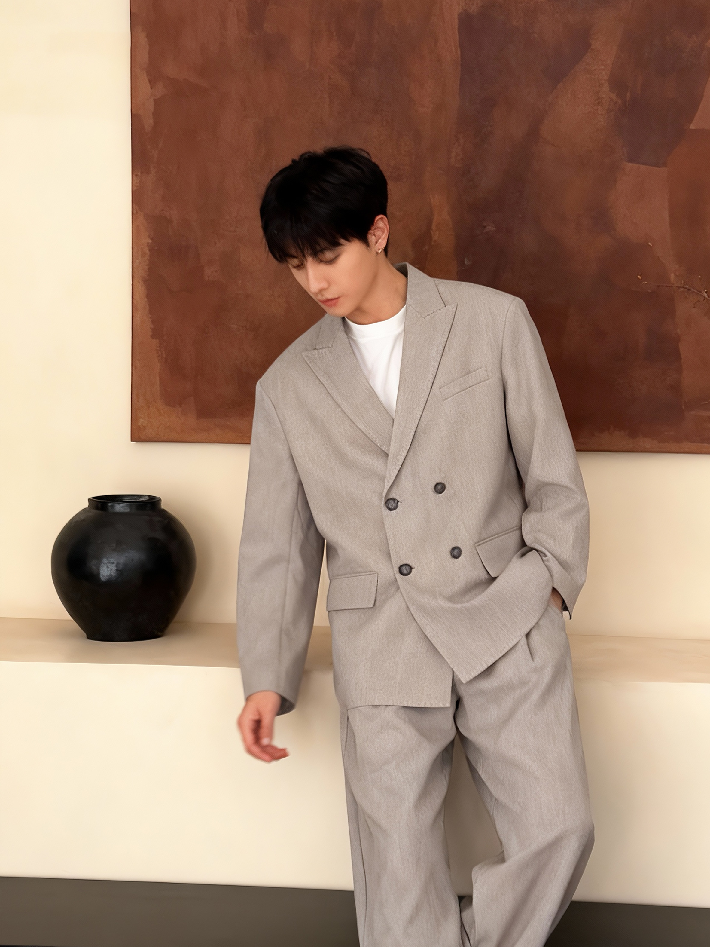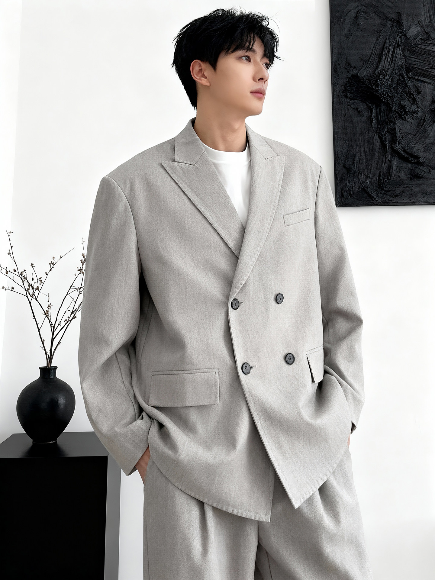 Korean Uamtor Men's Autumn and Winter Double-Breasted Suit Set, High-End Korean Style Casual Suit, Loose Jacket, Trendy