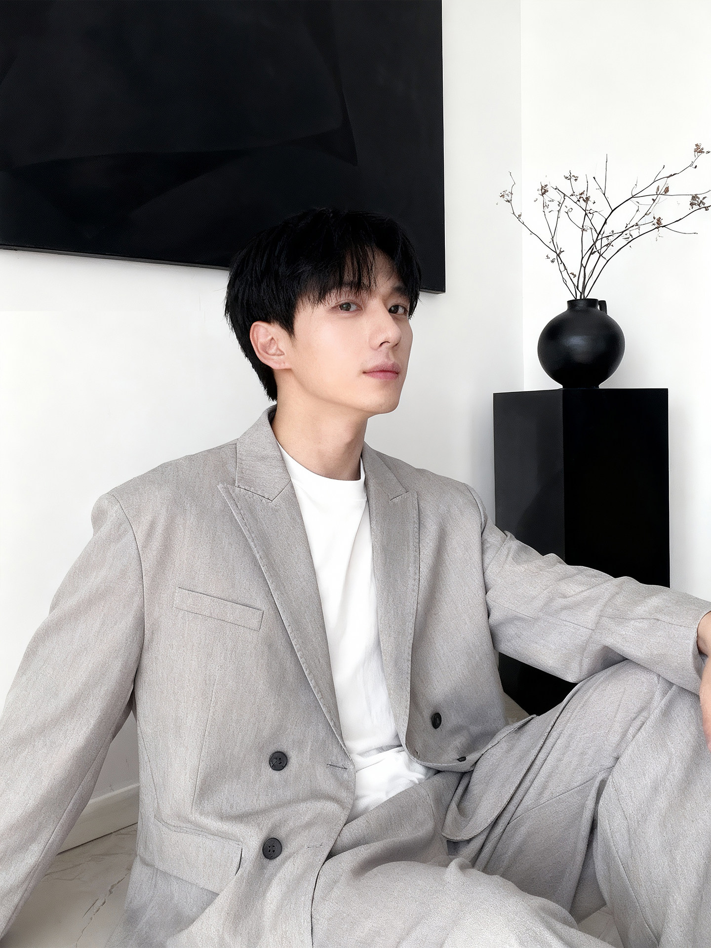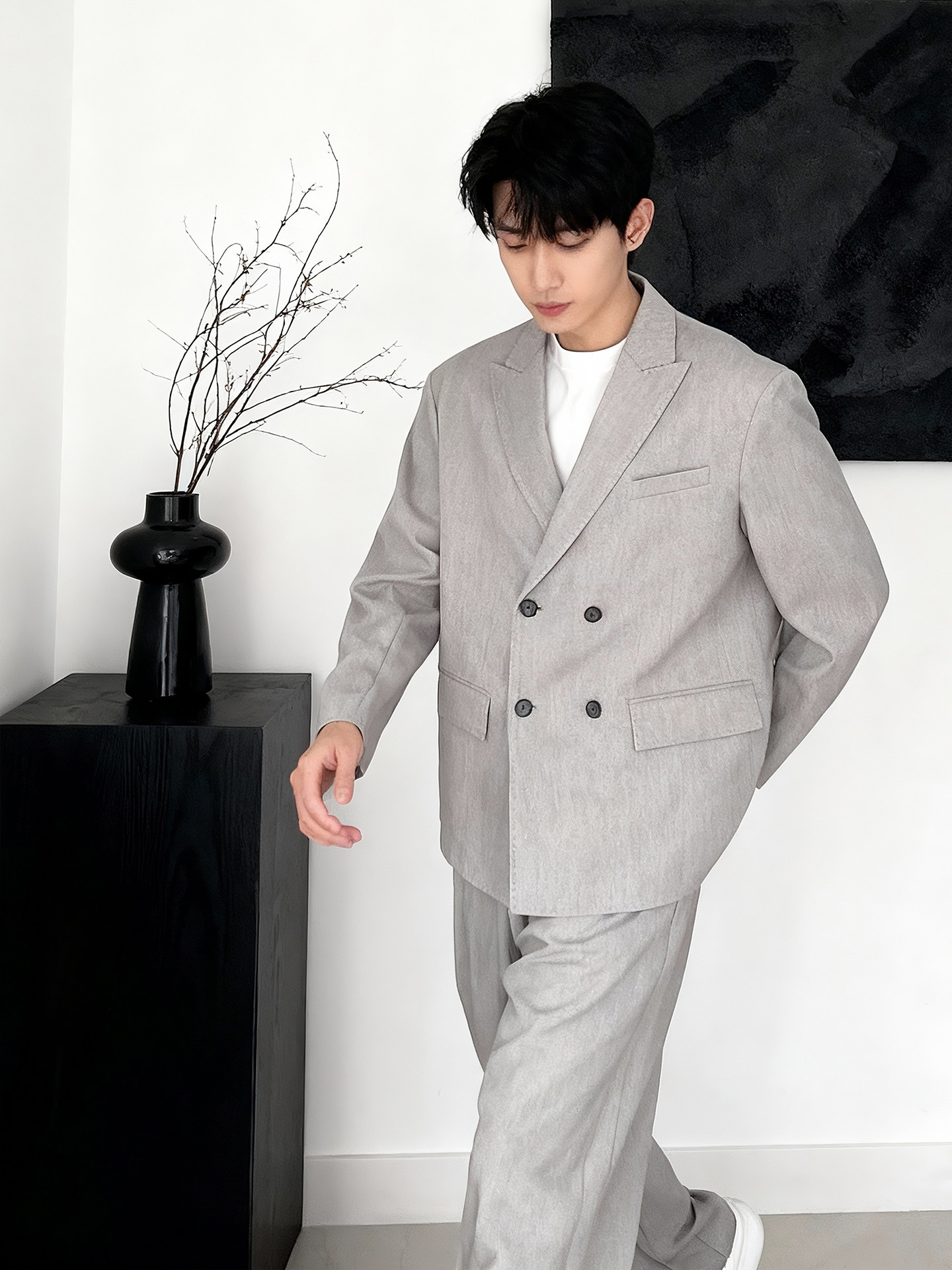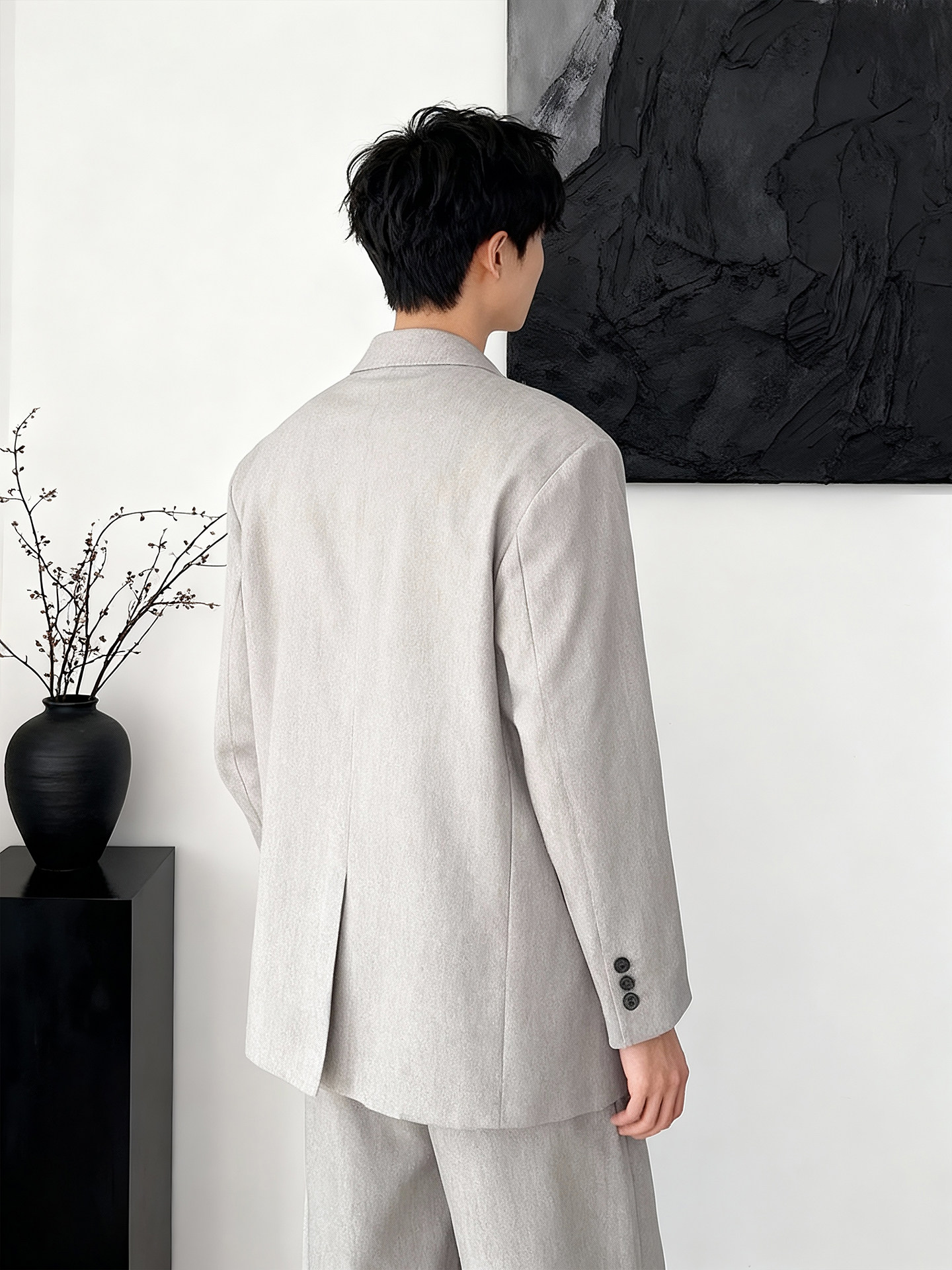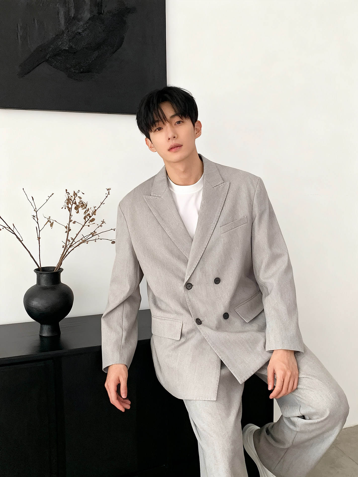 Korean Uamtor Men's Autumn and Winter Double-Breasted Suit Set, High-End Korean Style Casual Suit, Loose Jacket, Trendy