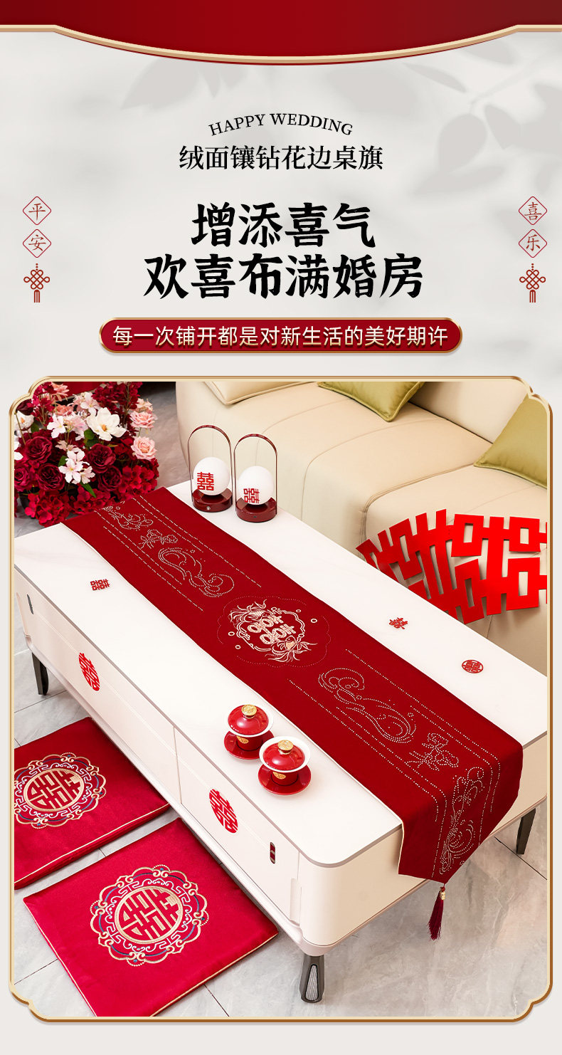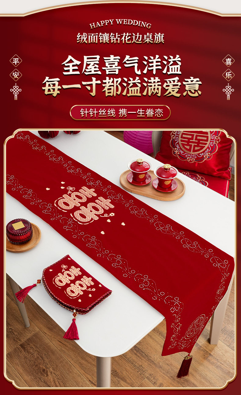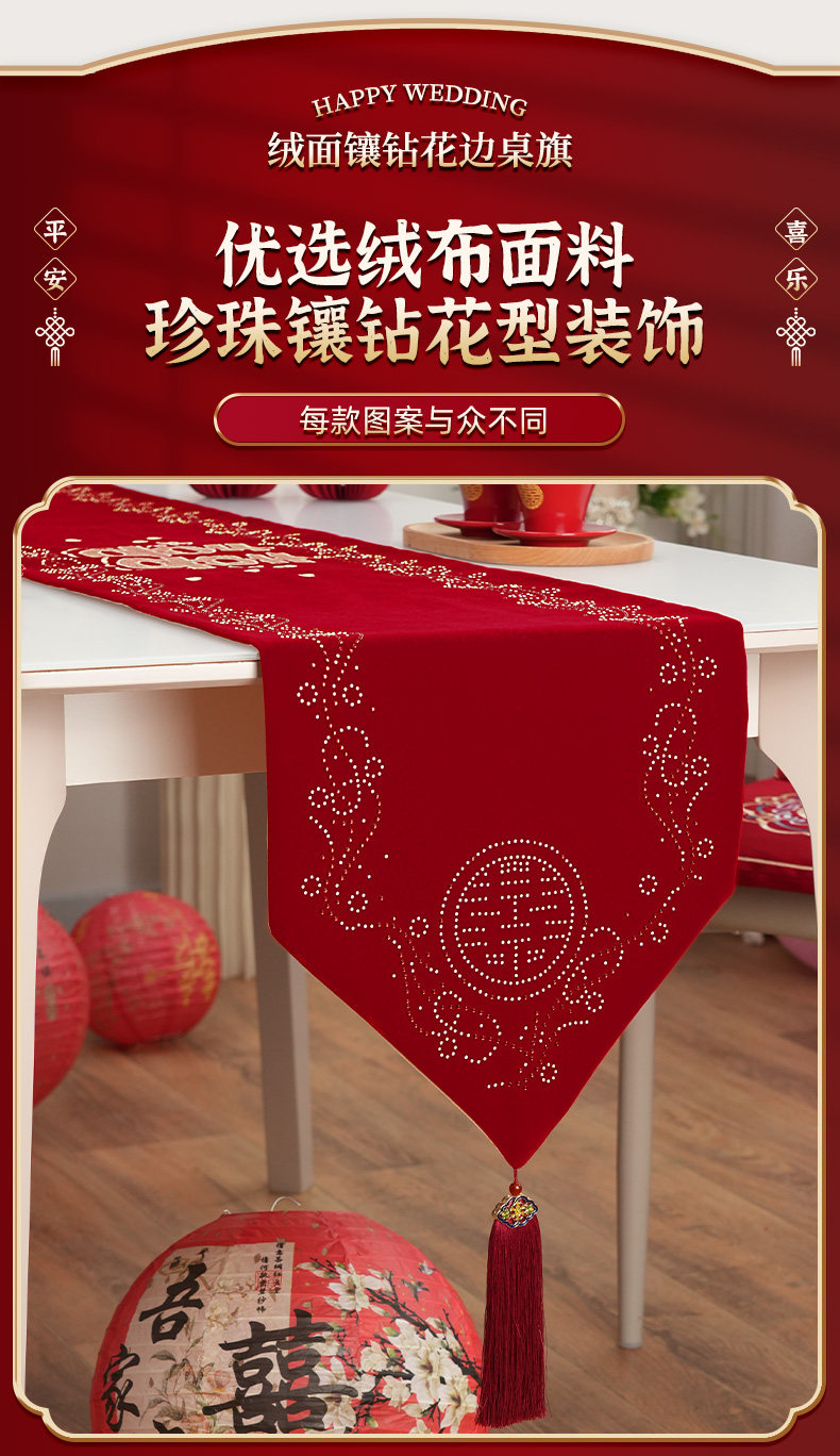 Color Classification 【My Family Is Happy】Suede Embroidered Diamond-Encrusted Table Runner,【Tied in Love】Suede Embroidered Diamond-Studded Table Runner,【Butterfly's Joy】Suede Embroidered Diamond-Studded Table Runner,【Abundant Joy】Suede Embroidered Diamond-Studded Table Runner,【Ties of Love】Premium Suede Embroidery,【Double Happiness Embellished】Suede Diamond-Studded Lace Trim,【Butterfly's Joy】Premium Suede Embroidery