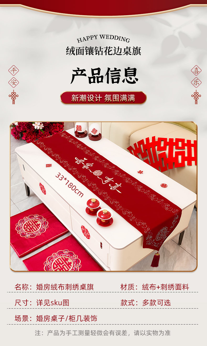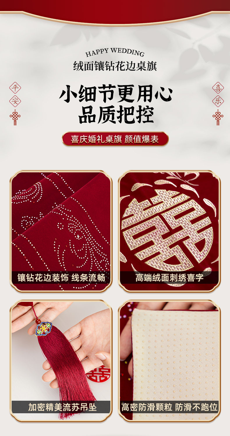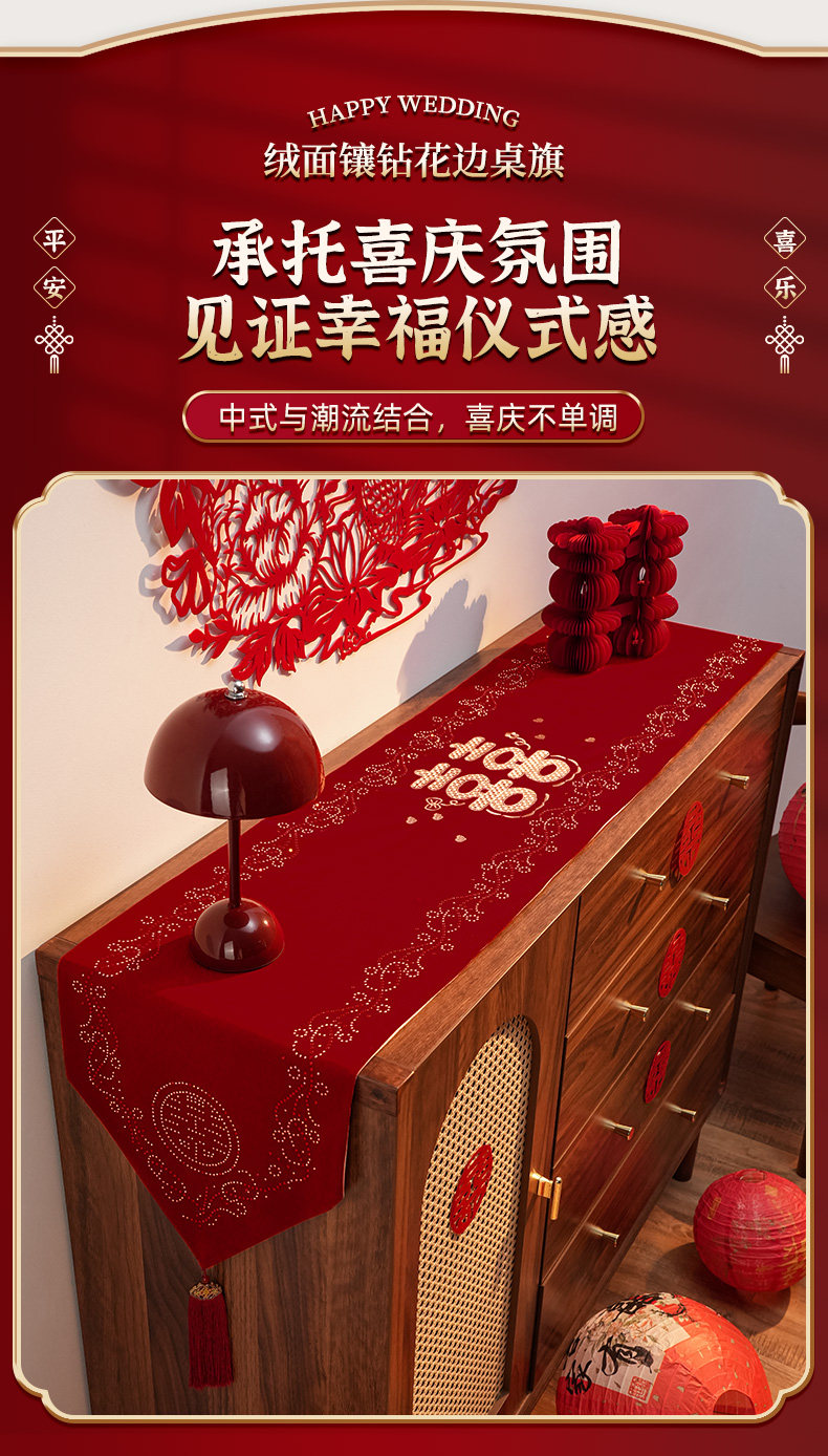 Color Classification 【My Family Is Happy】Suede Embroidered Diamond-Encrusted Table Runner,【Tied in Love】Suede Embroidered Diamond-Studded Table Runner,【Butterfly's Joy】Suede Embroidered Diamond-Studded Table Runner,【Abundant Joy】Suede Embroidered Diamond-Studded Table Runner,【Ties of Love】Premium Suede Embroidery,【Double Happiness Embellished】Suede Diamond-Studded Lace Trim,【Butterfly's Joy】Premium Suede Embroidery