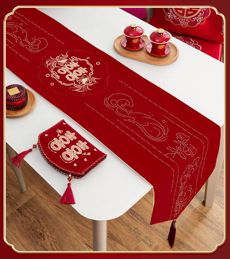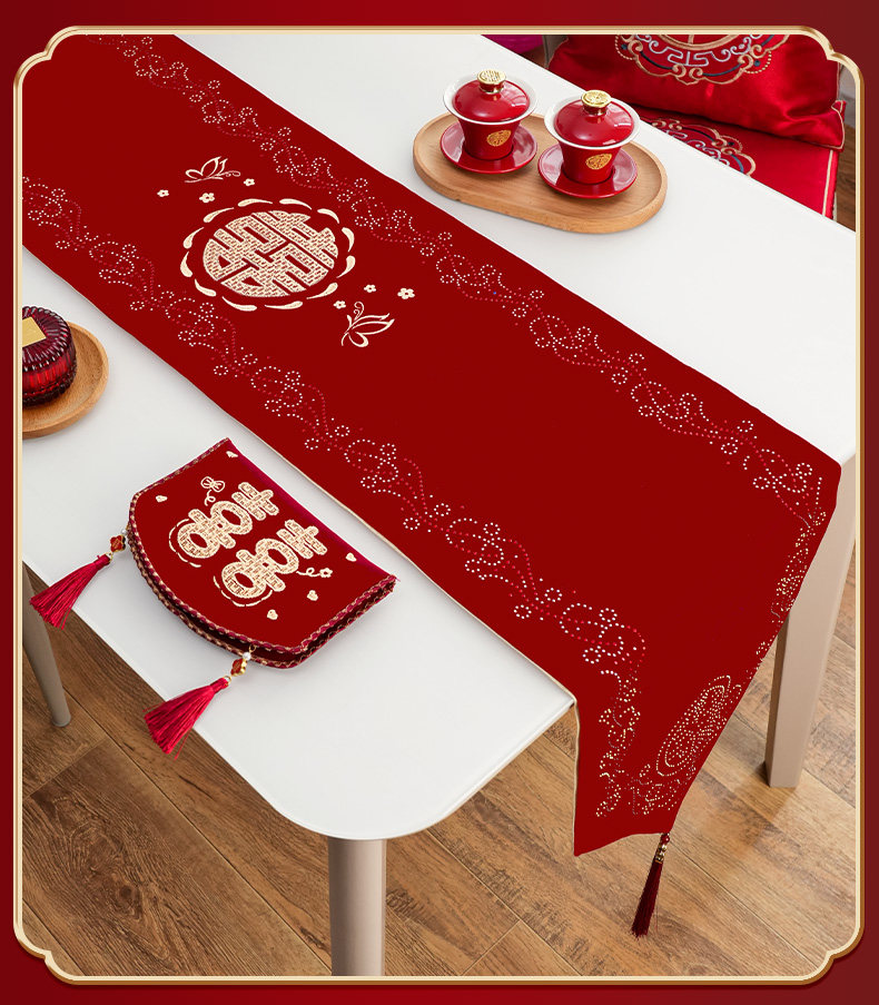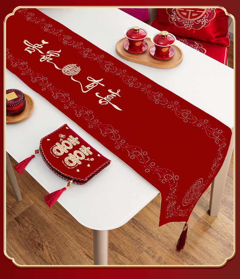 Wedding Preparation Decoration Living Room Dining Table Coffee Table Table Runner Wedding Room Decoration Red Double Happiness Tablecloth Wedding Supplies
