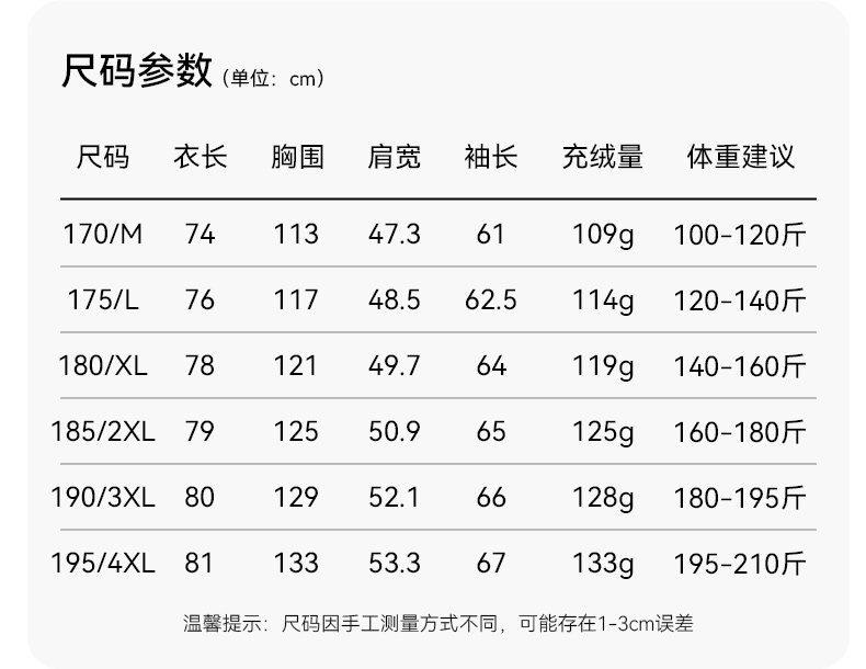 Size 170/M,175/L,180/XL,185/2XL,190/3XL