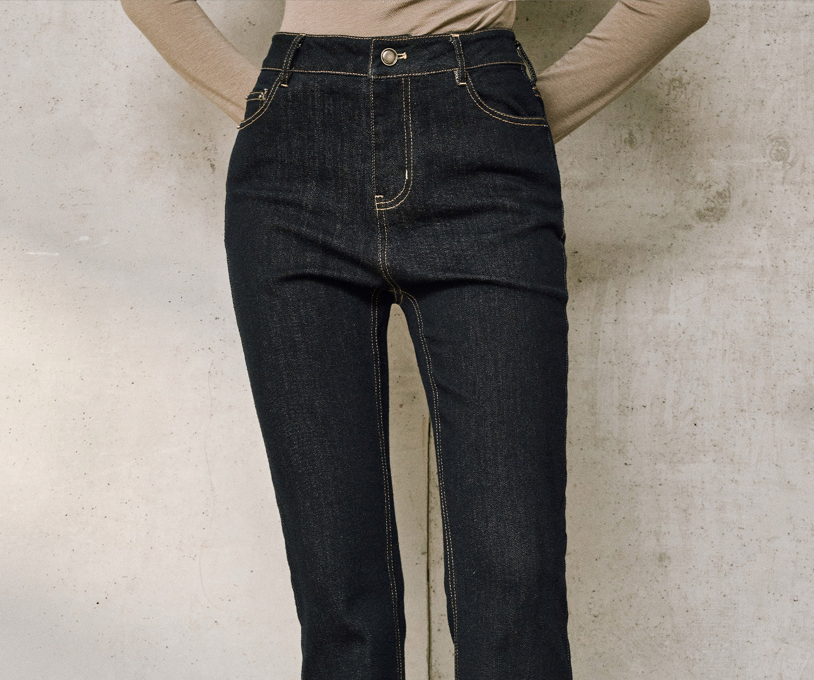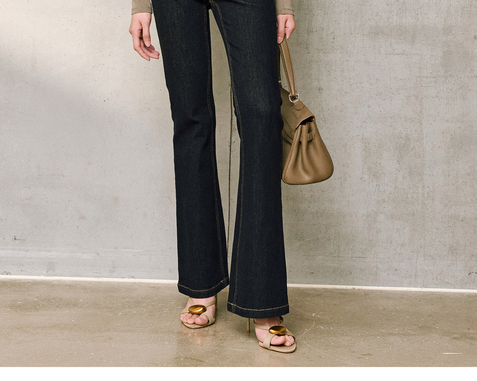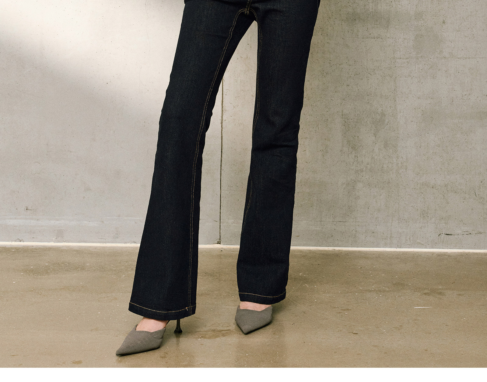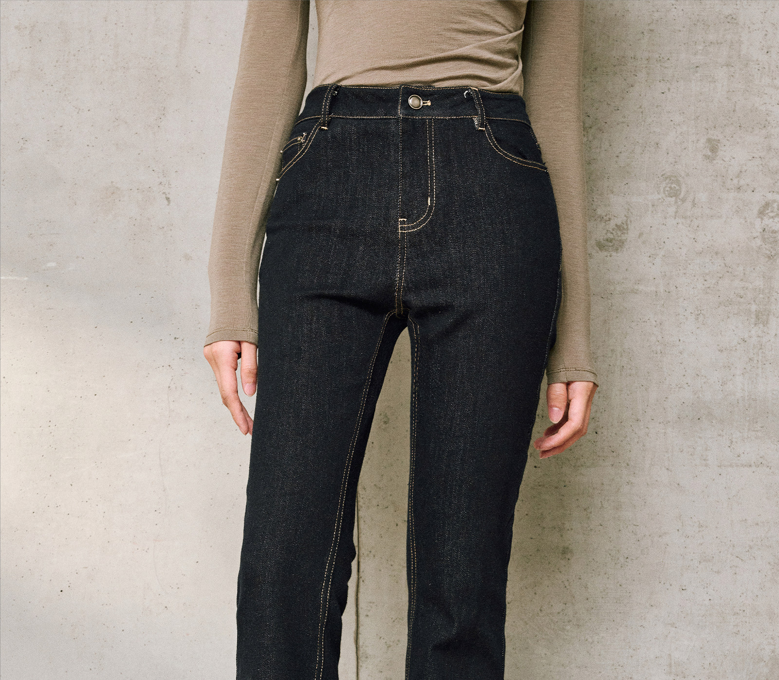 Wangxo|Commuting Recommendation|Soft and Elastic Cotton-Like Feel, Wrinkle-Resistant|Vintage Raw Denim Blue Color-Blocked Contrast Stitching Flared Jeans