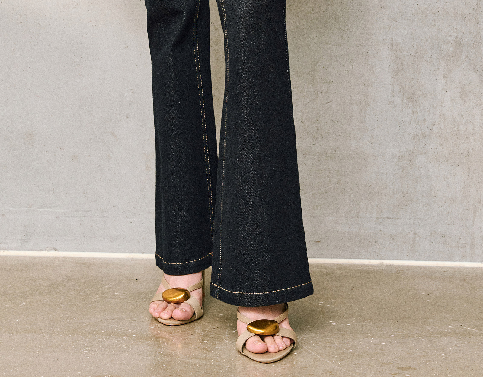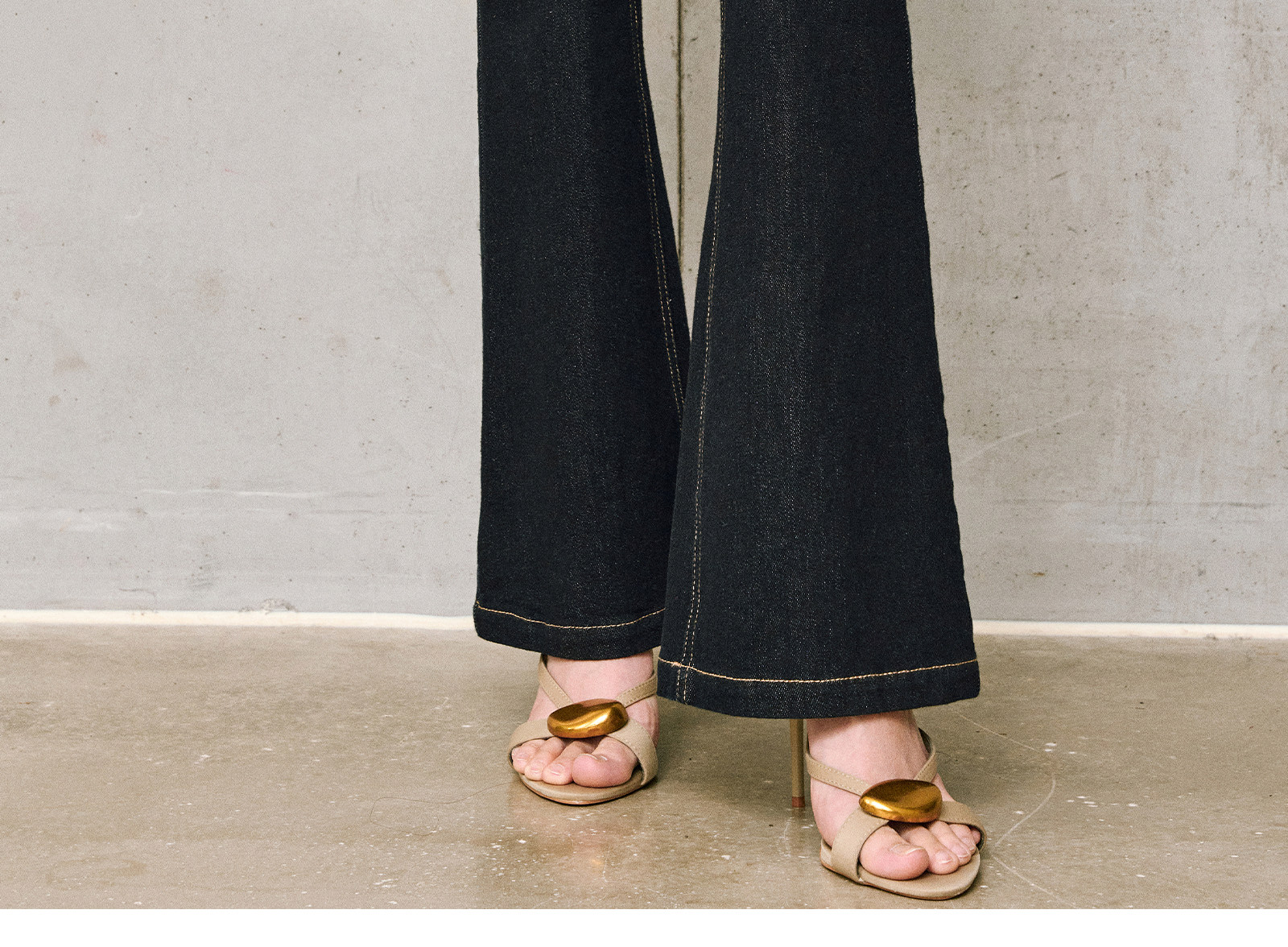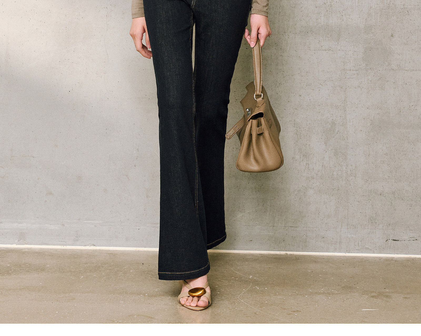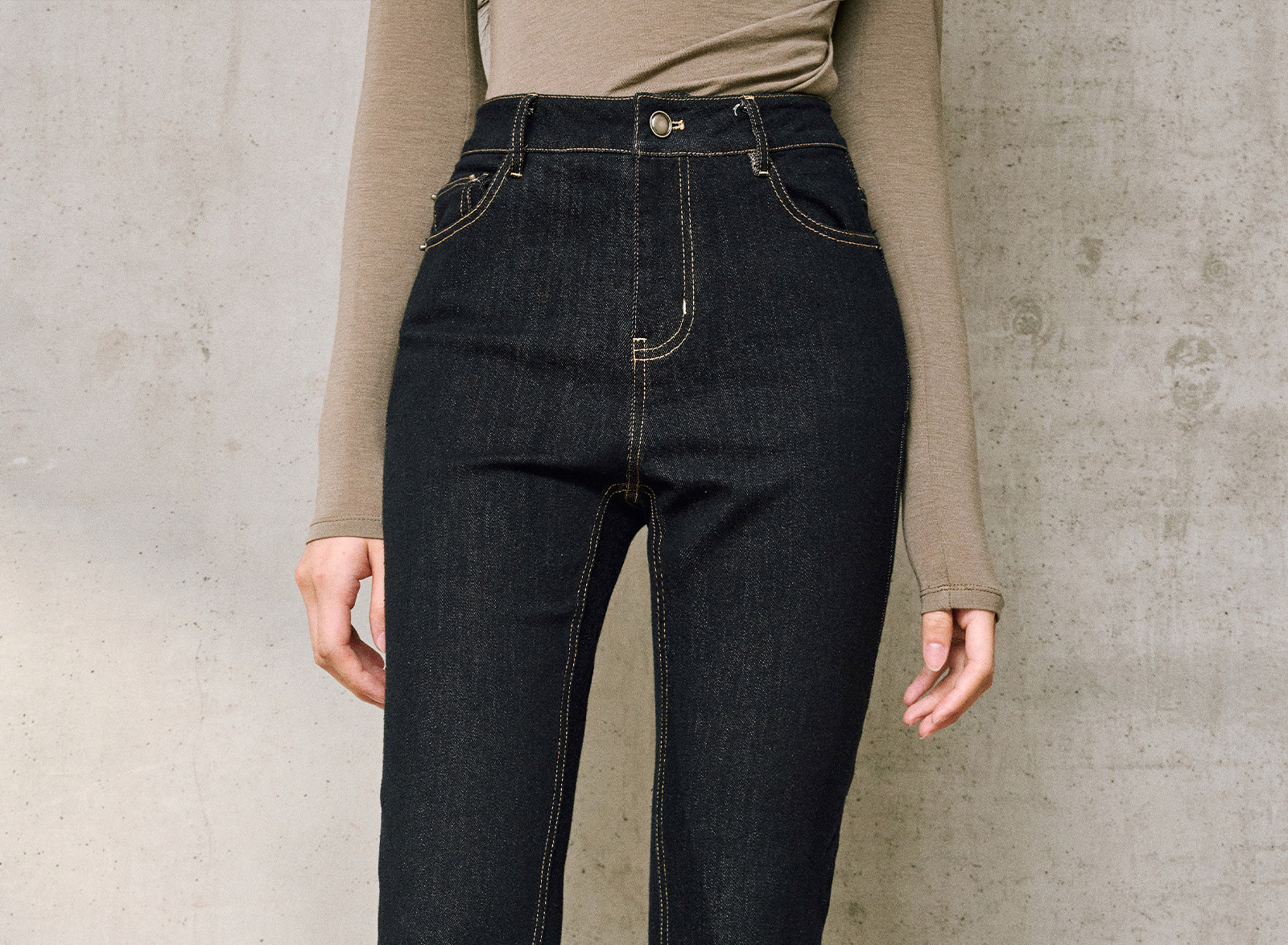 Wangxo|Commuting Recommendation|Soft and Elastic Cotton-Like Feel, Wrinkle-Resistant|Vintage Raw Denim Blue Color-Blocked Contrast Stitching Flared Jeans