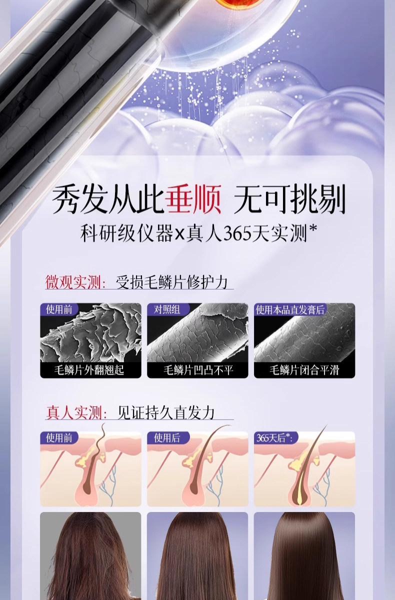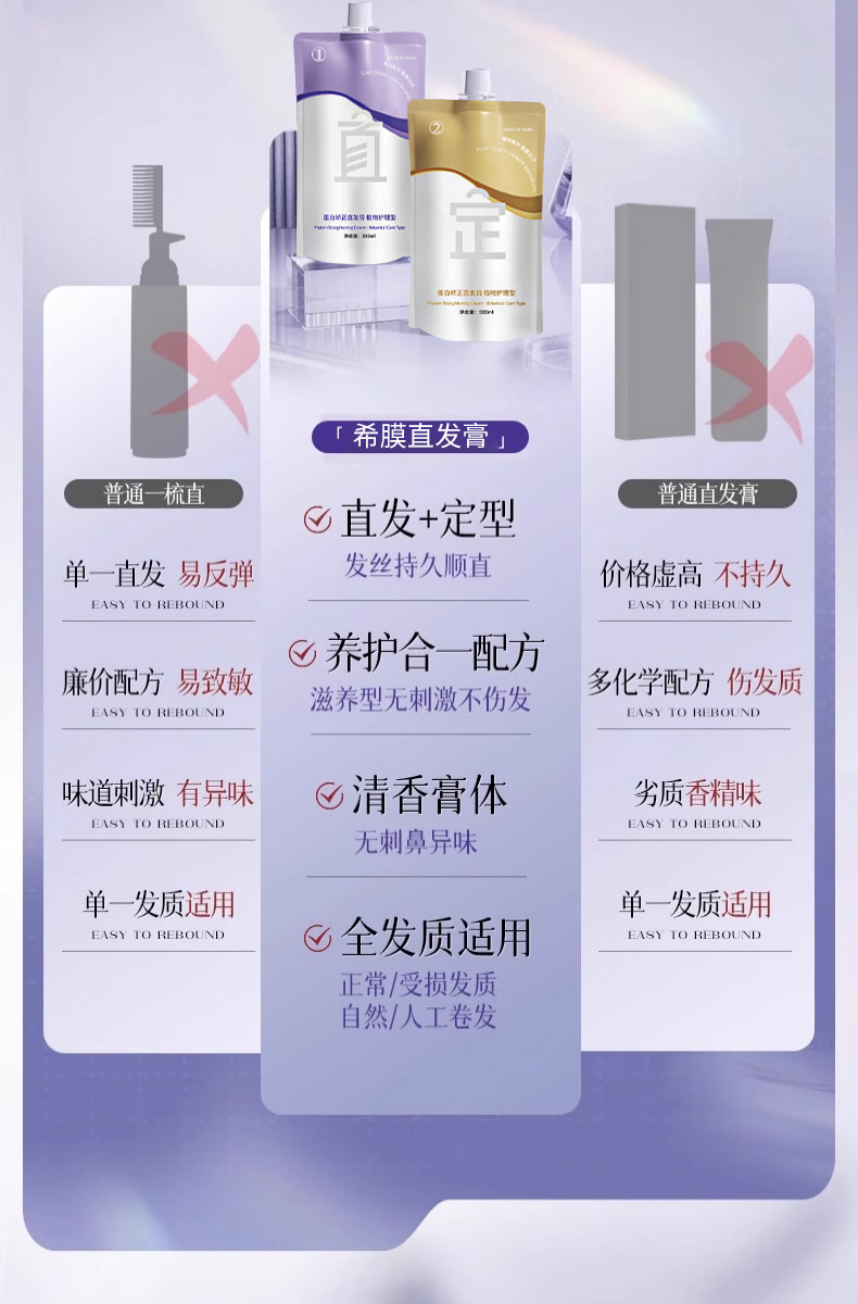 蛋白矫正直发膏免拉家用改善毛躁修复头发拉直柔顺软化剂持久定型