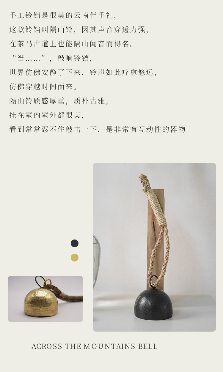 云南氛铜纯手工黄铜驼铃铛茶马古道风铃门挂饰庭院冥想静心隔山铃