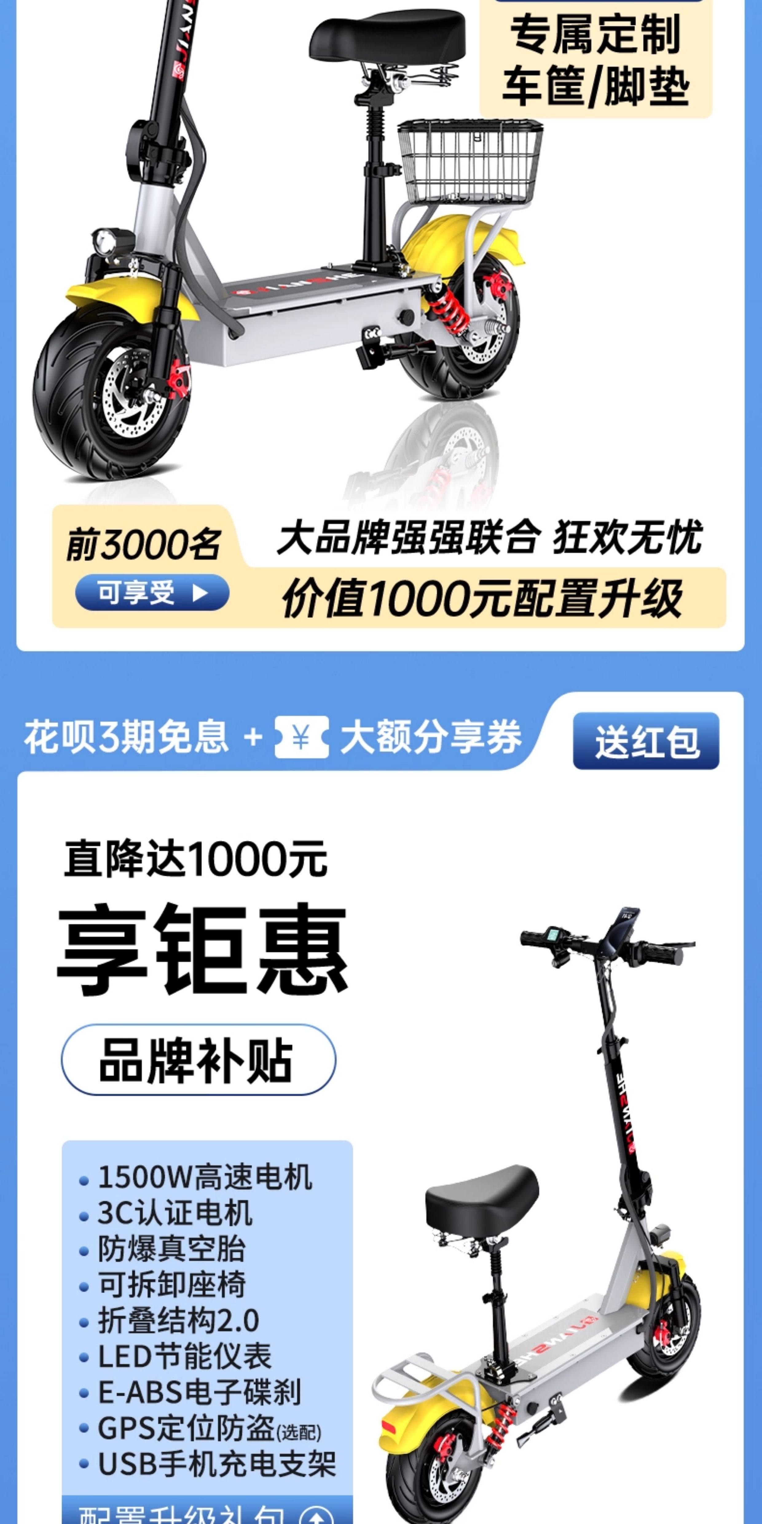 建设电动滑板车坐骑折叠电动车代驾车代步小型踏板两轮迷你电瓶车