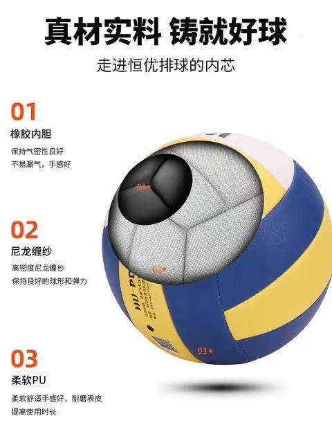 恒优排球考试训练专用室内训练比赛中小学生正品硬式5号充气排球