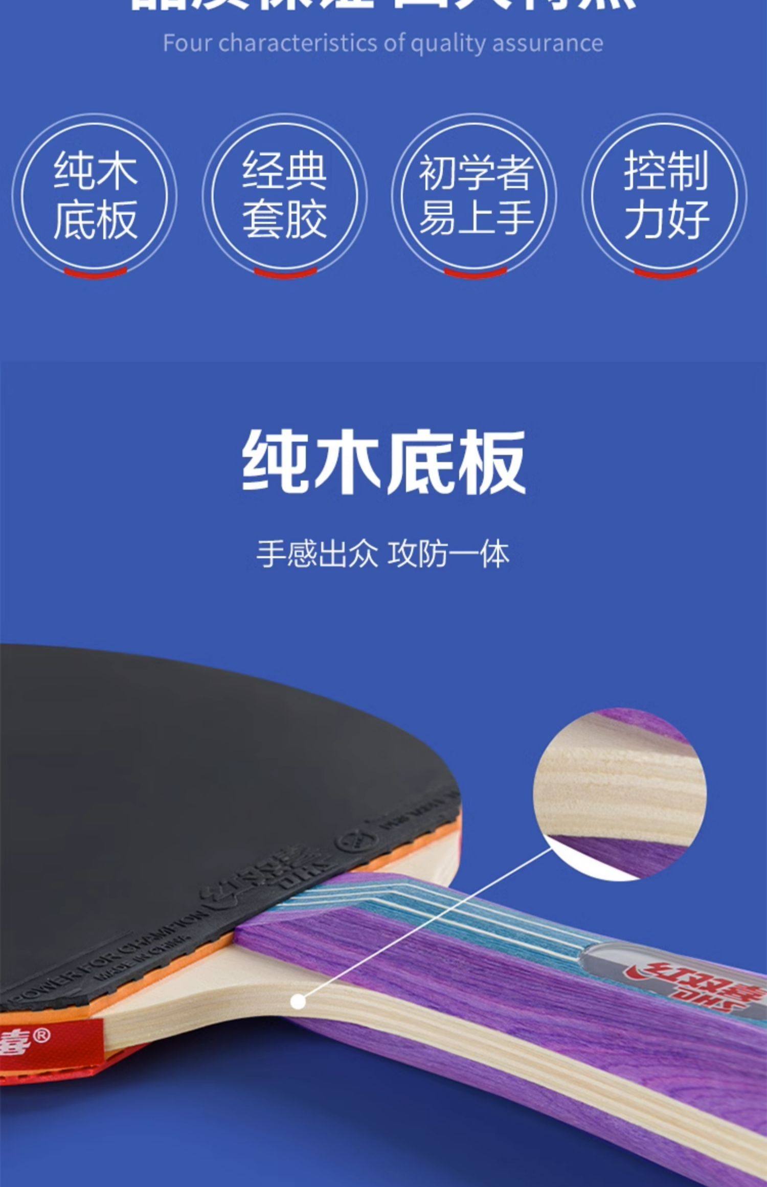 红双喜乒乓球拍正品学生初学入门级拍子高弹力星级兵乓长柄短柄
