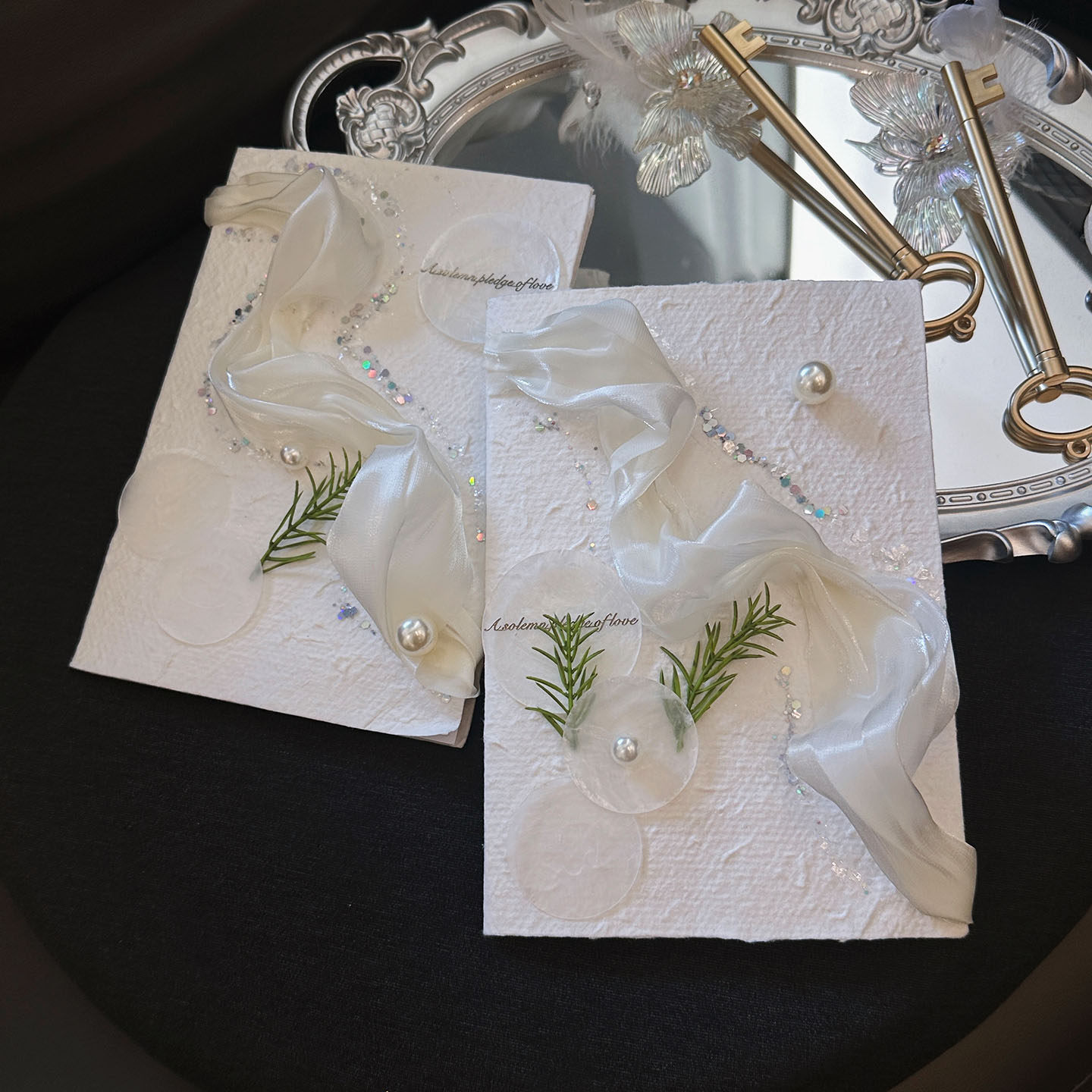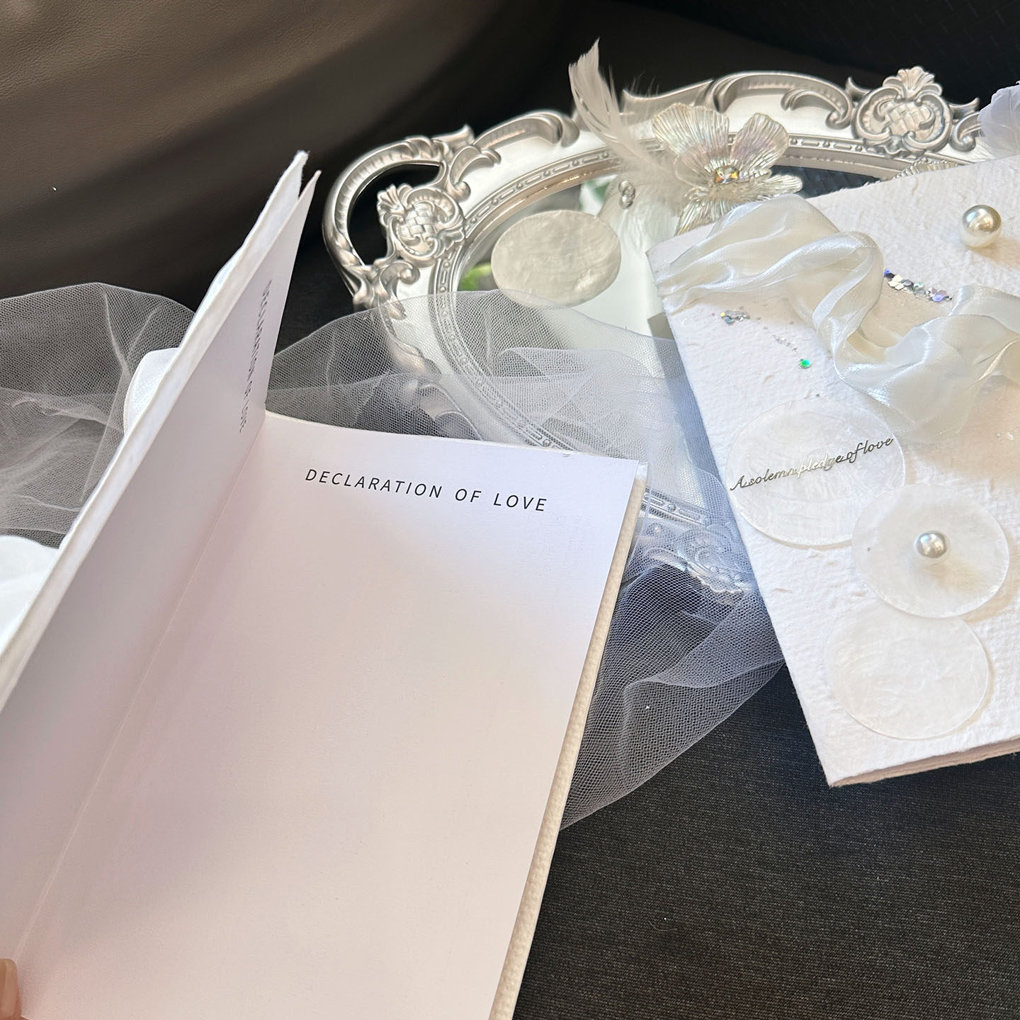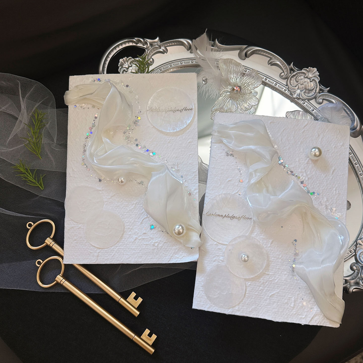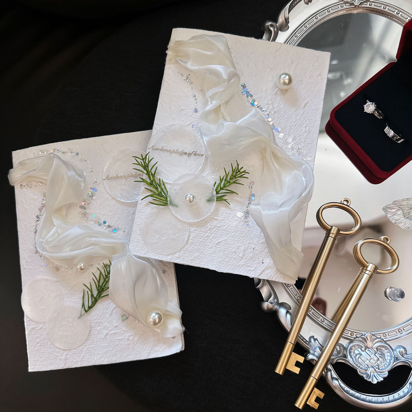 2025新款订婚贝壳绸缎结婚誓言卡新郎新娘森系高级感简约小清新