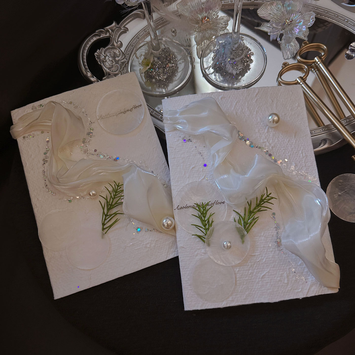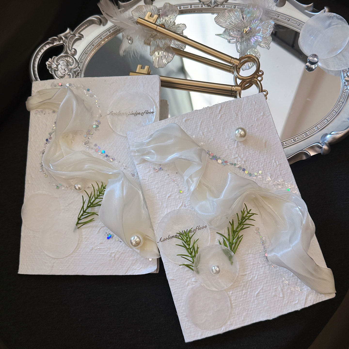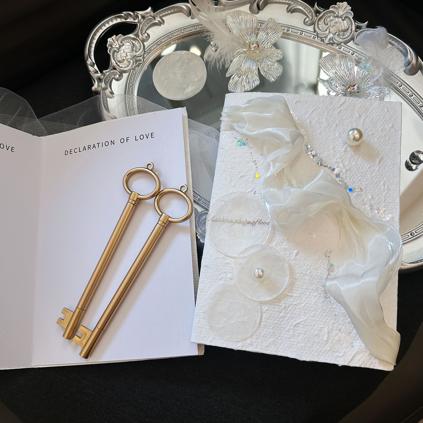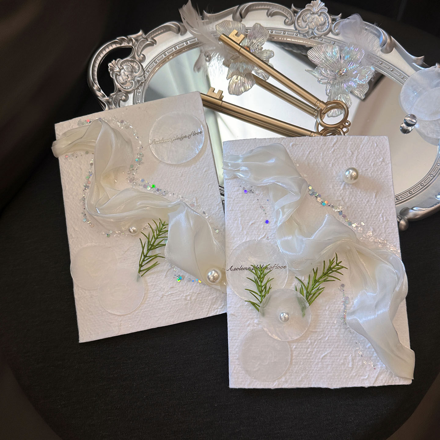 2025新款订婚贝壳绸缎结婚誓言卡新郎新娘森系高级感简约小清新