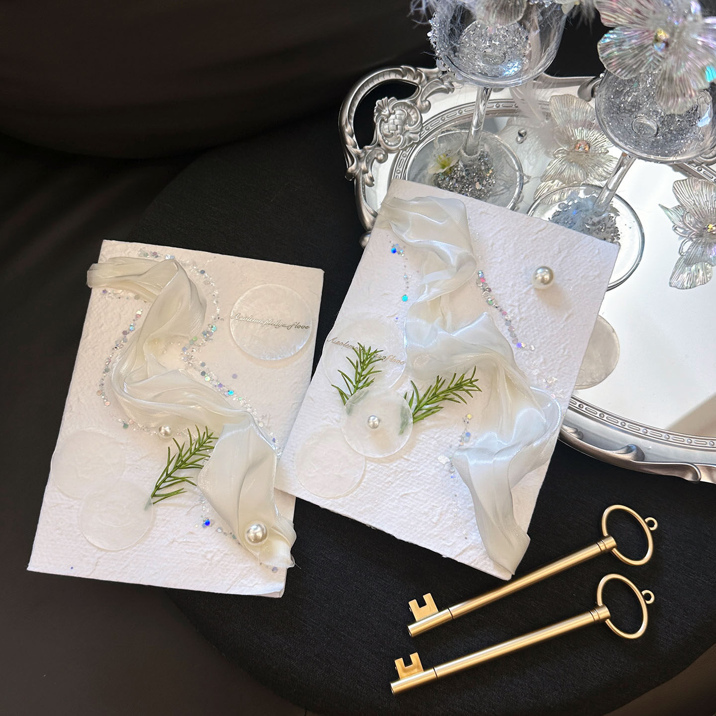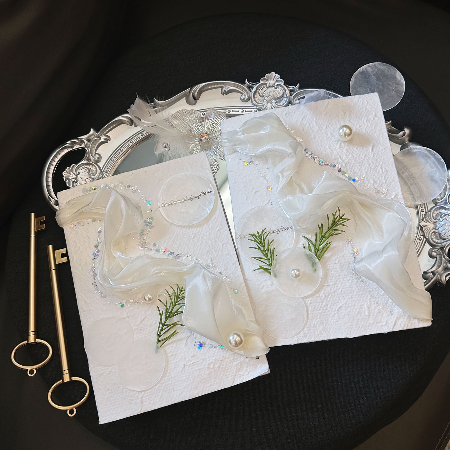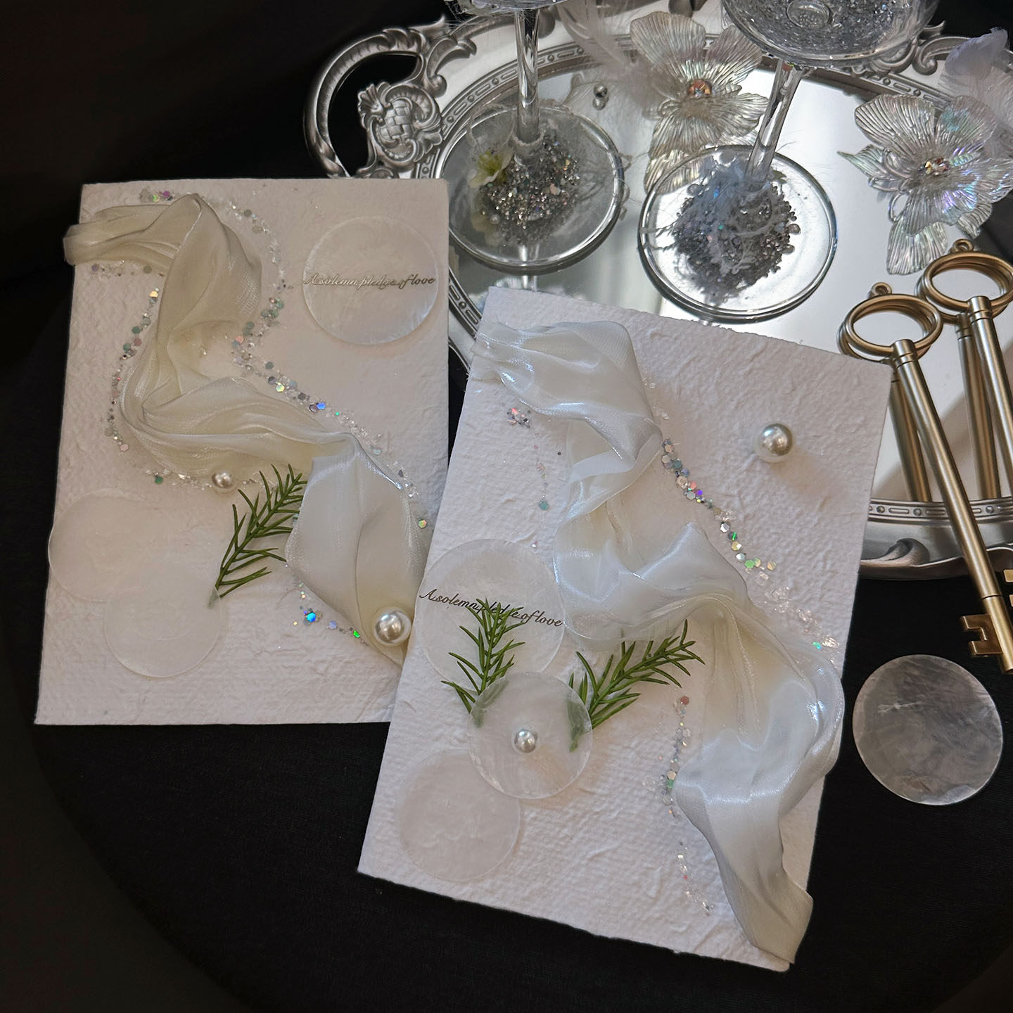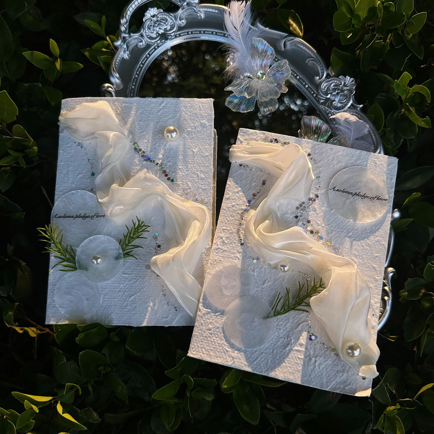 2025新款订婚贝壳绸缎结婚誓言卡新郎新娘森系高级感简约小清新