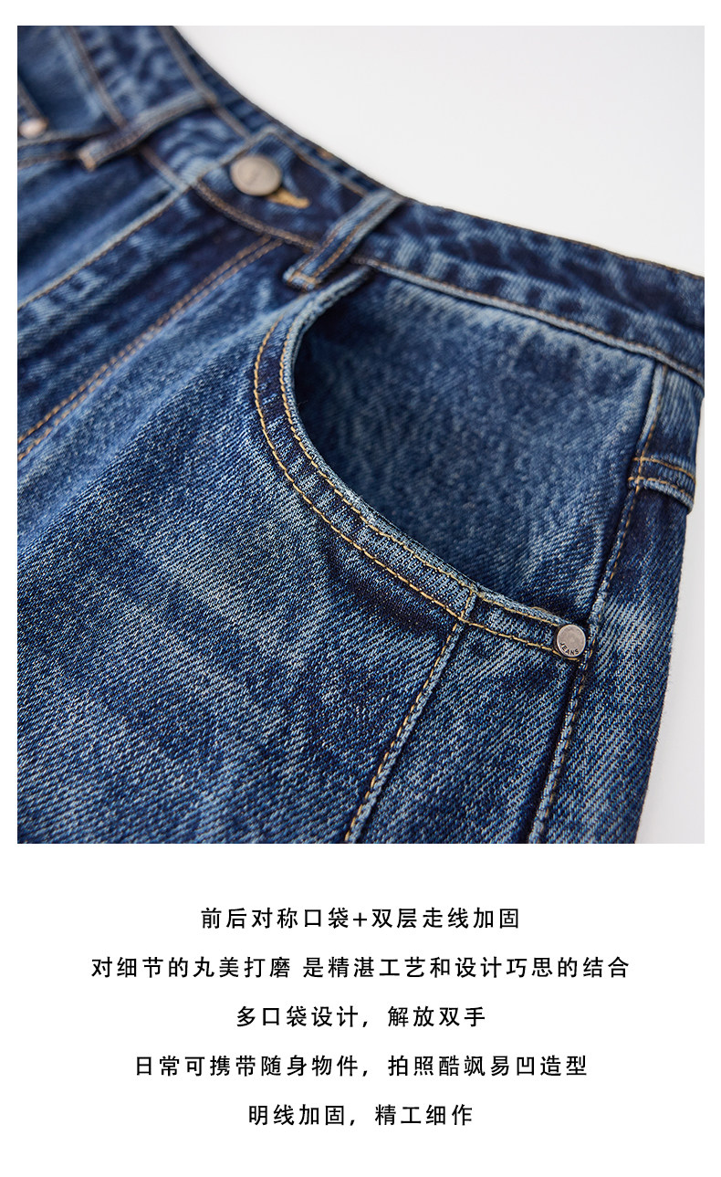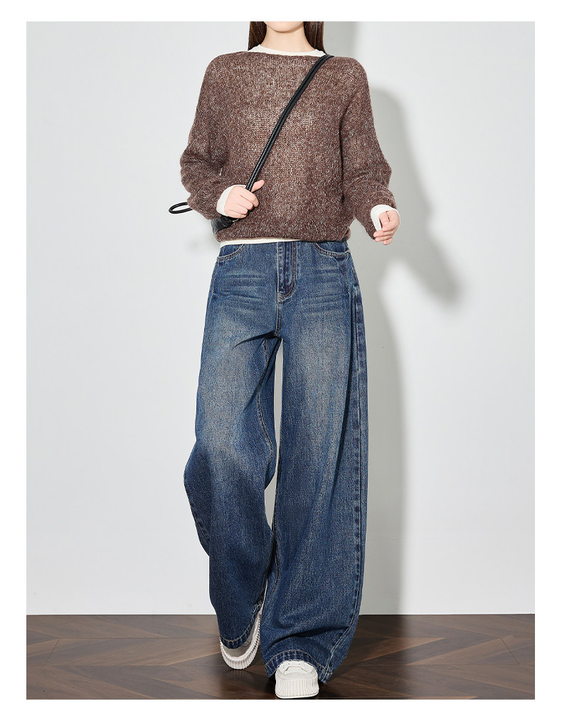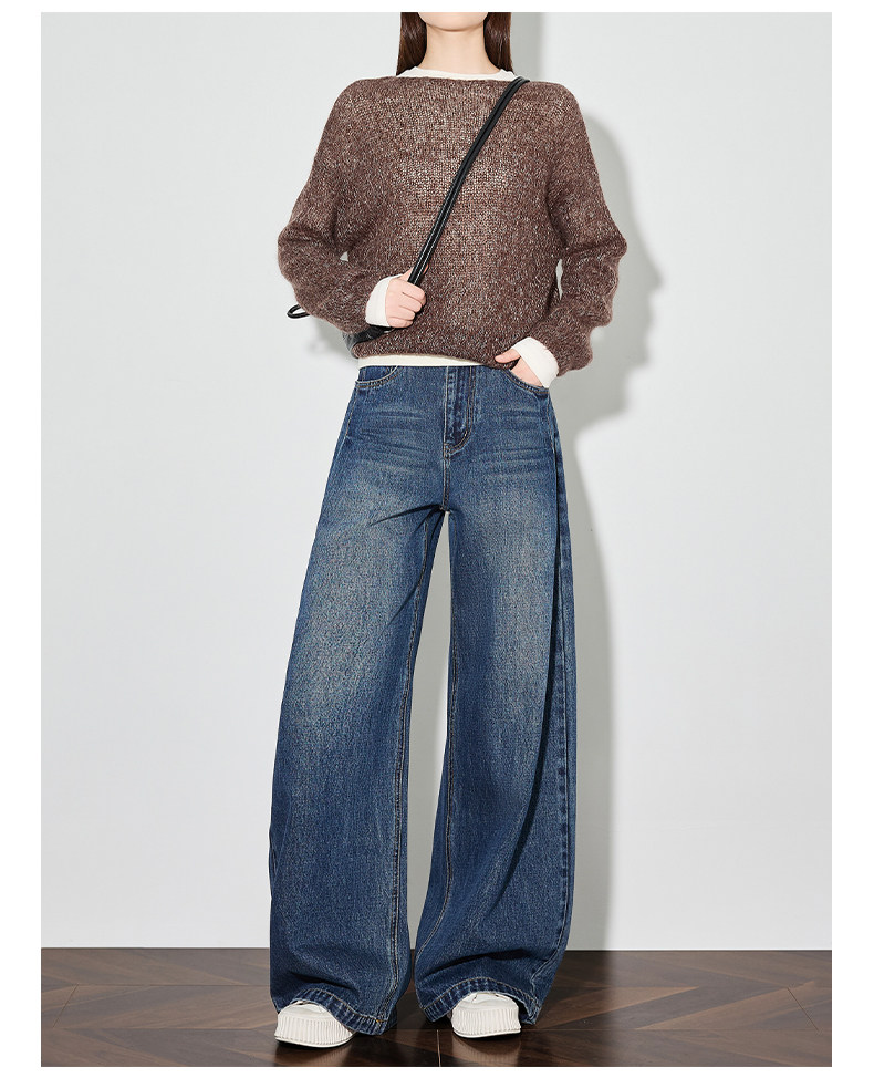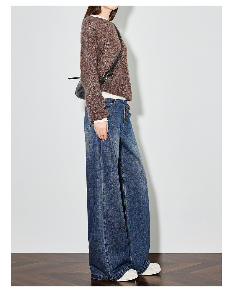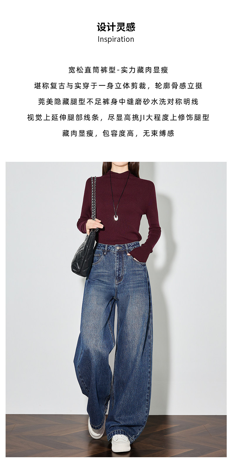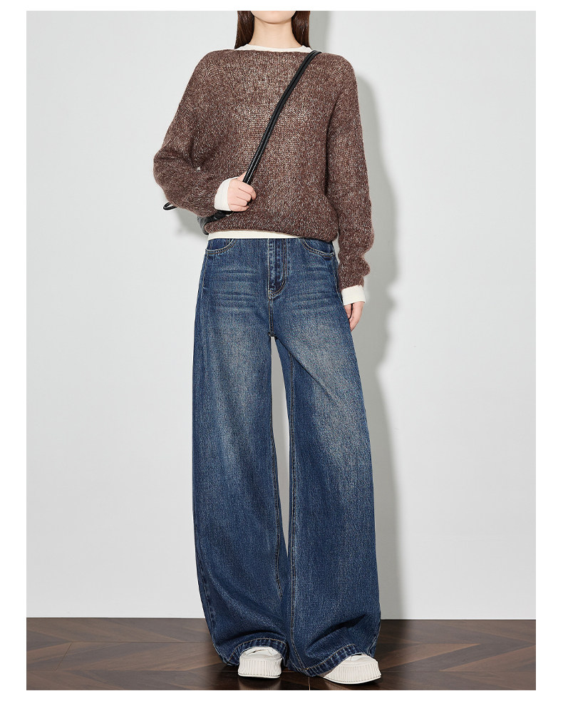 Faesslin Blue Retro Jeans for Women, New Autumn Style, Tall and Long, High-Waisted, Loose Straight-Leg Wide-Leg Pants