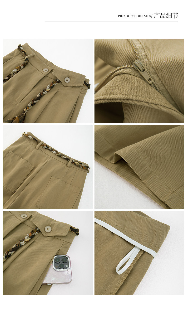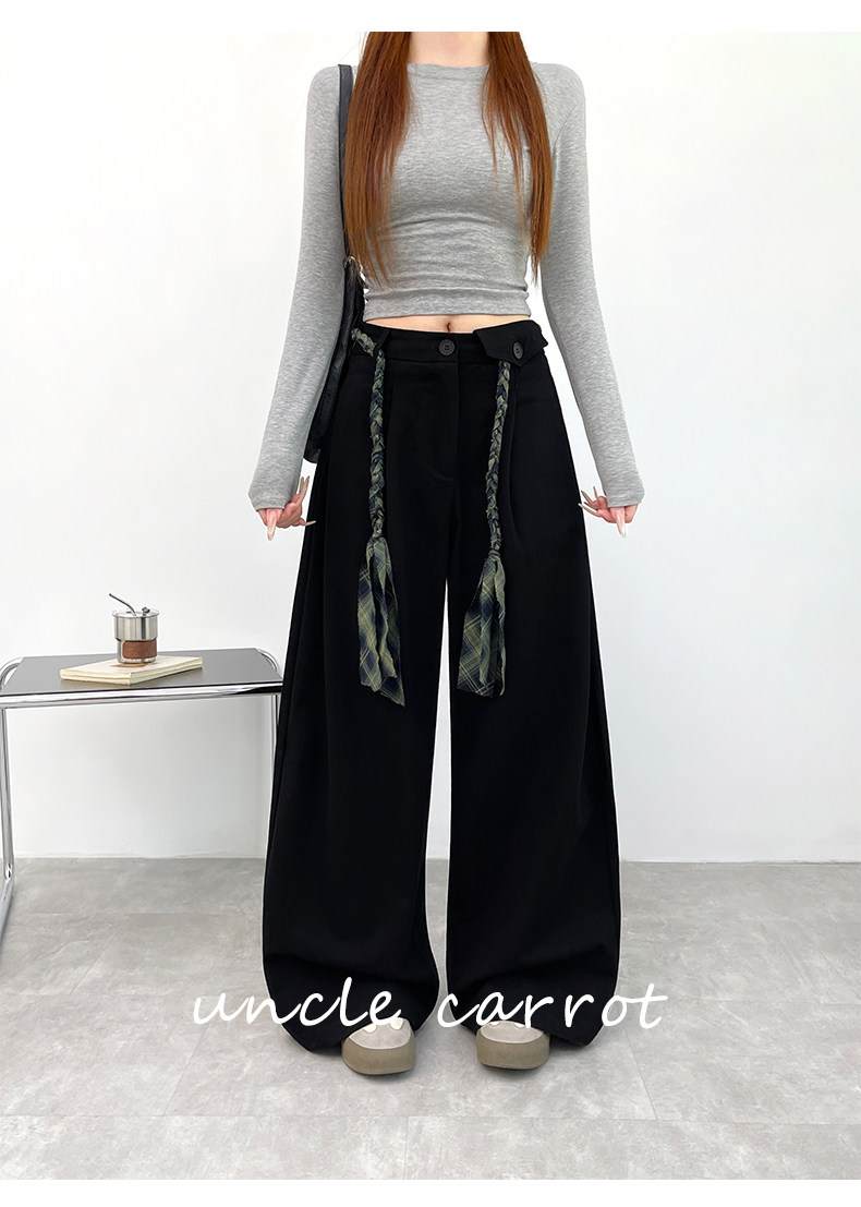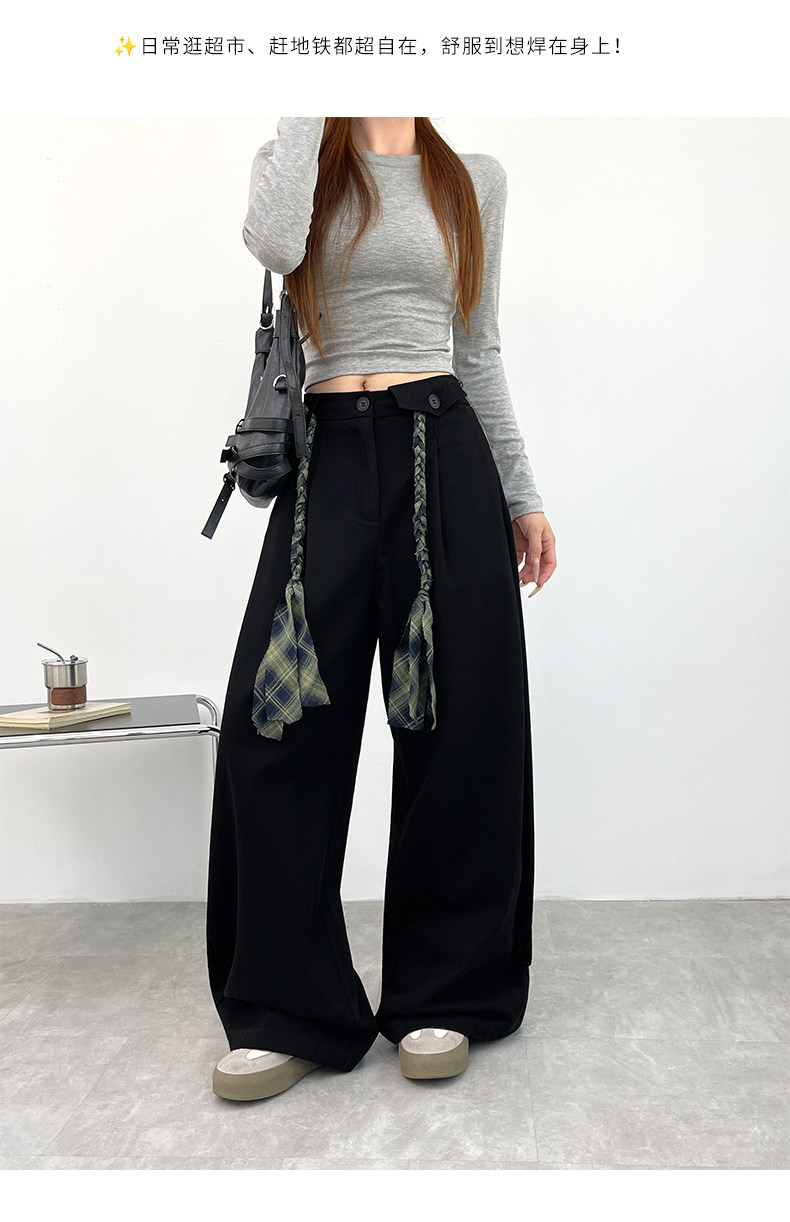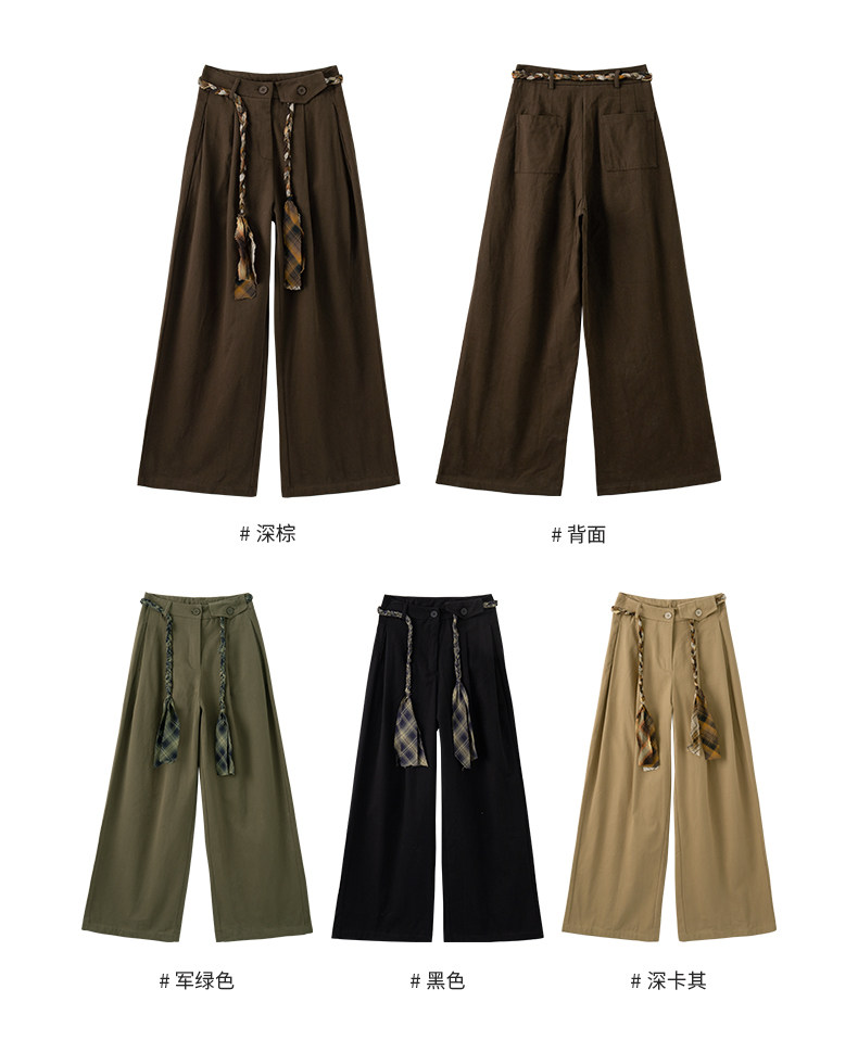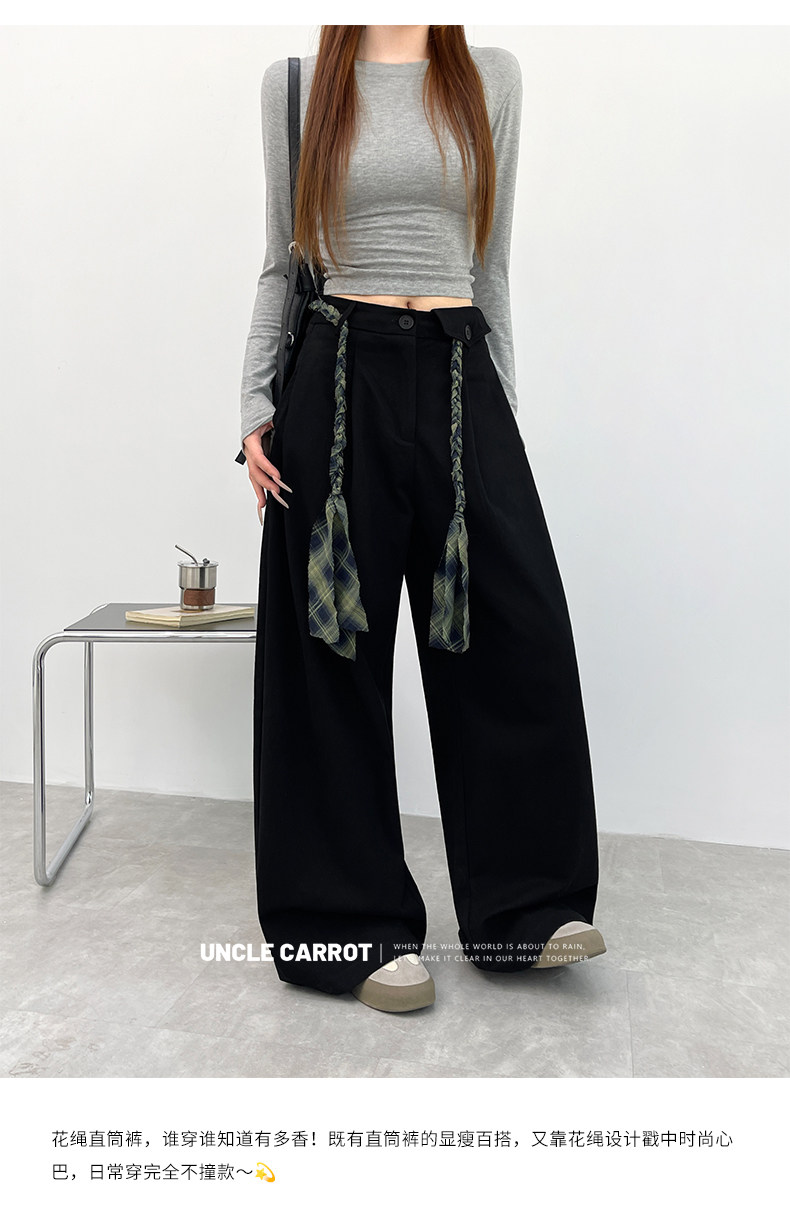 Khaki American Retro Suit Pants Women's Autumn 2025 New High Waist Lace Flower Rope Lazy Scimitar Wide Leg Pants