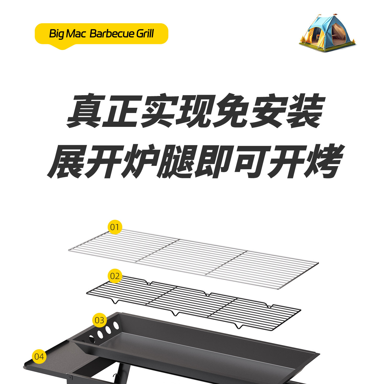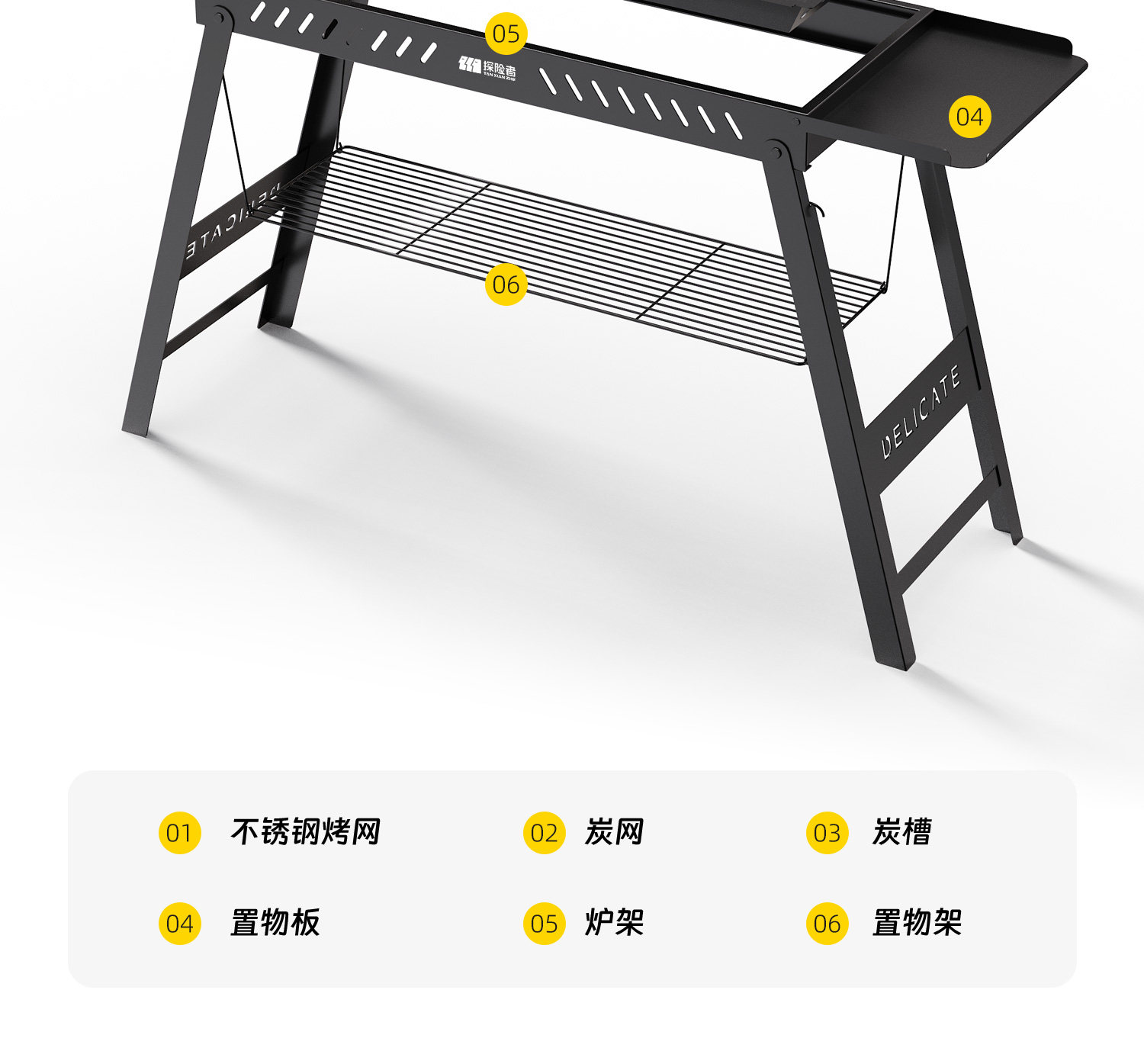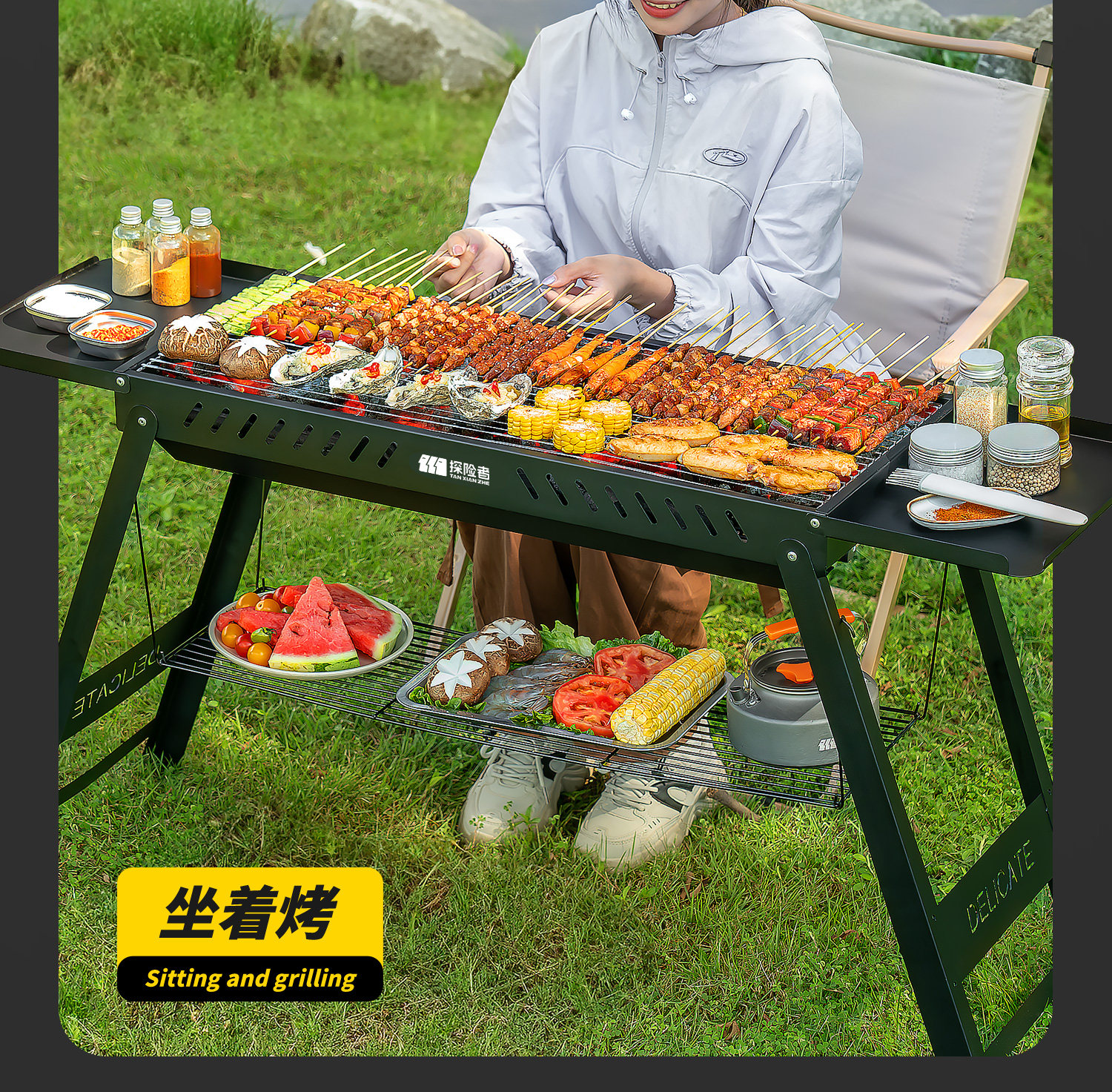 探险者烧烤架户外烧烤炉家用炉子折叠便携式烤肉2025新款大型露营