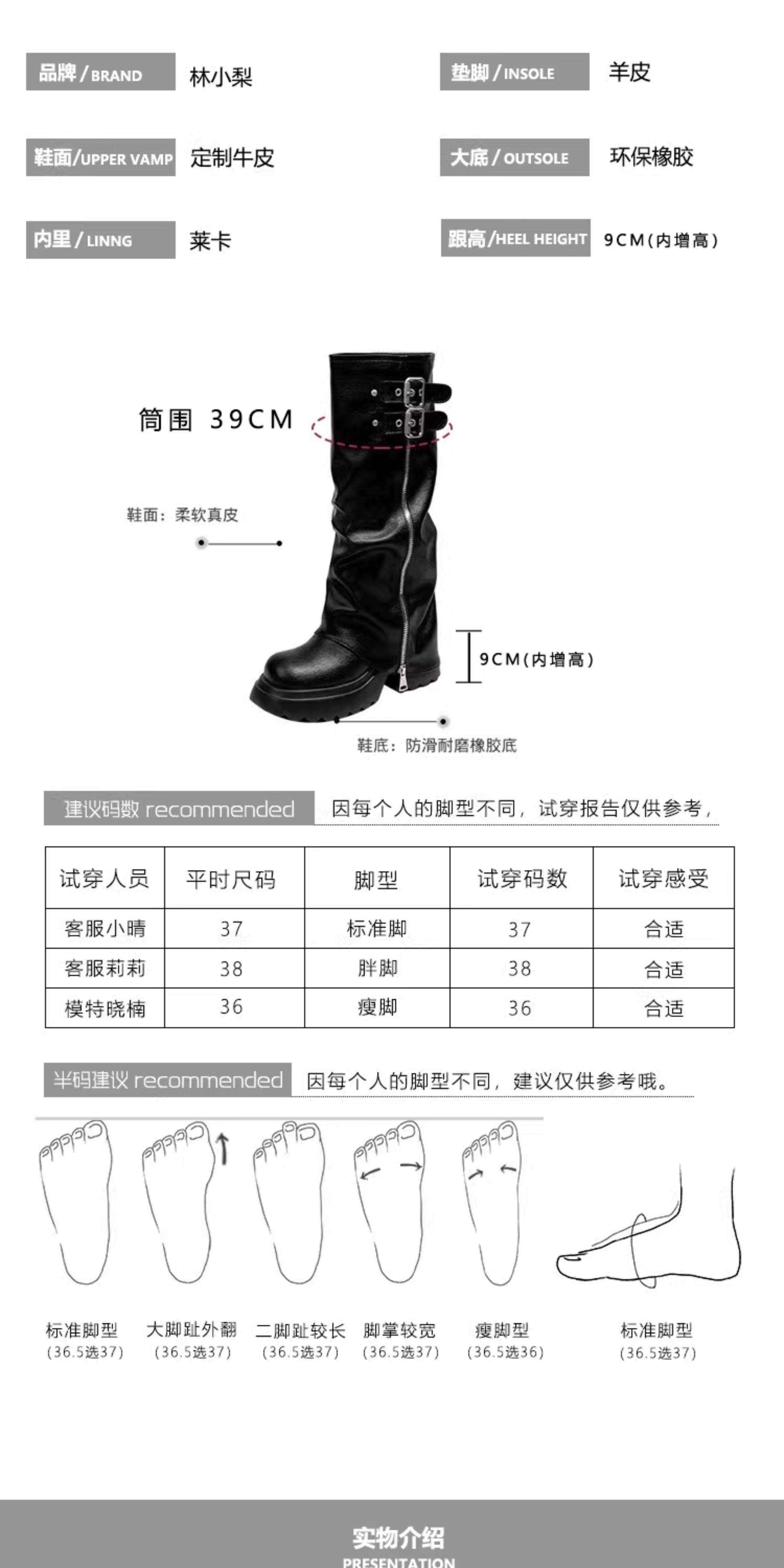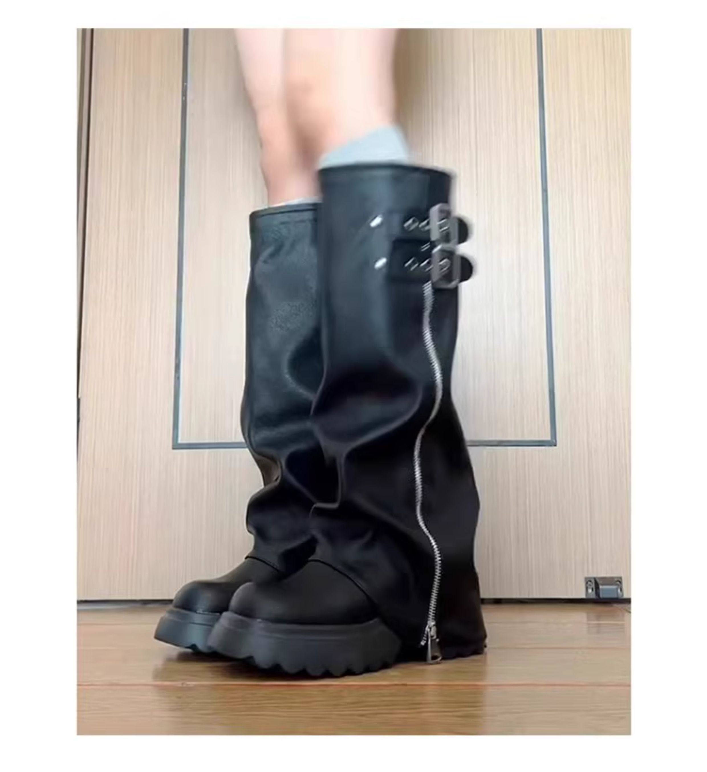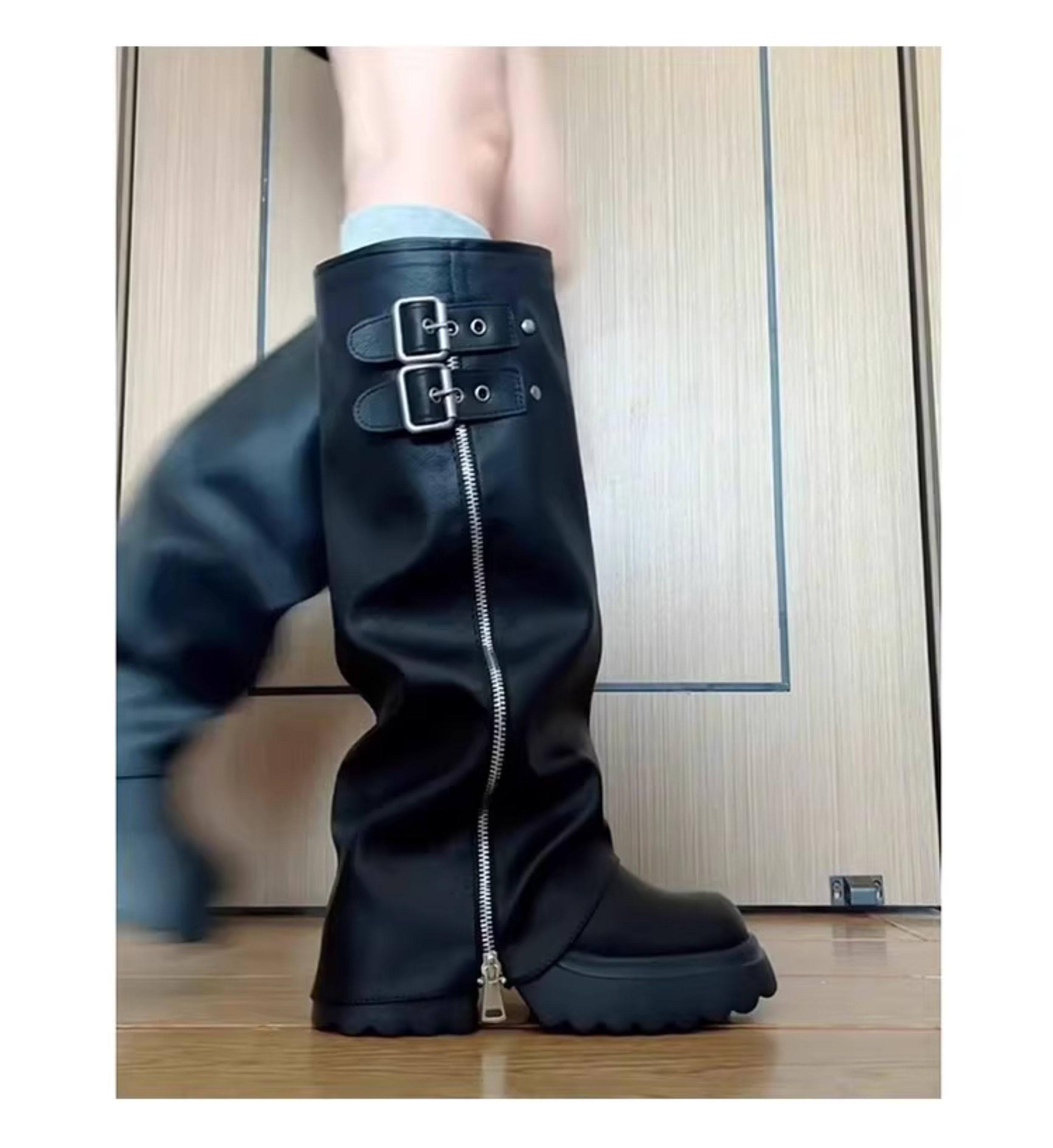 羊皮版~真皮厚底增高9cm皮带扣裤管靴女显瘦长靴高筒堆堆靴骑士靴