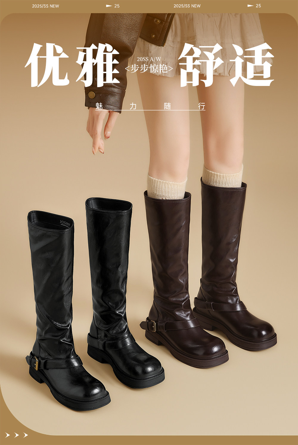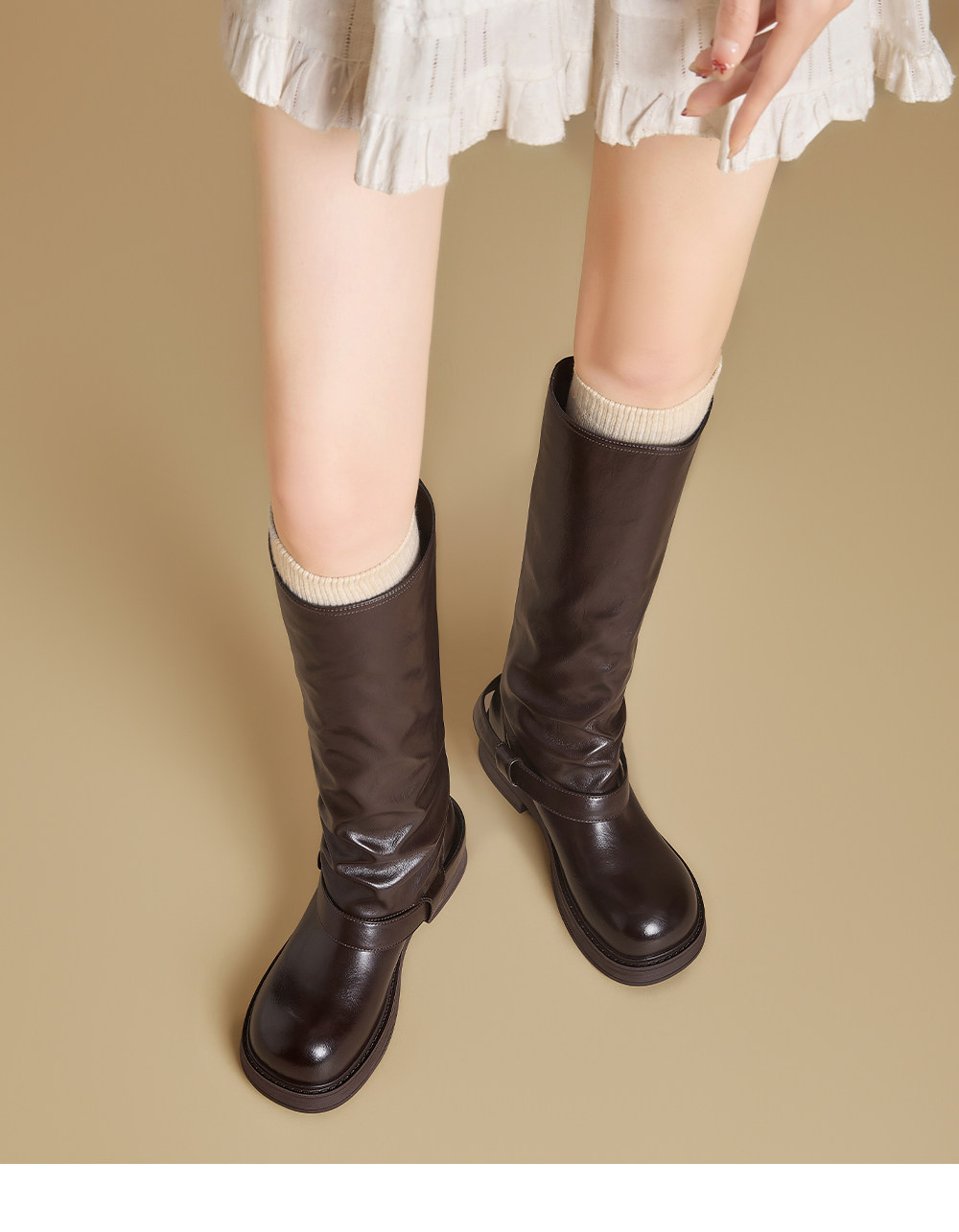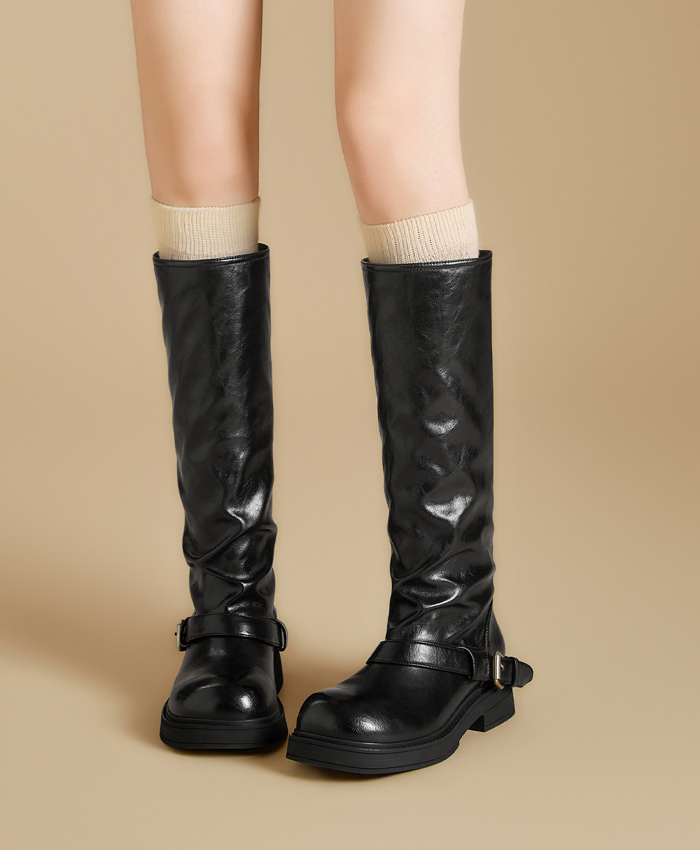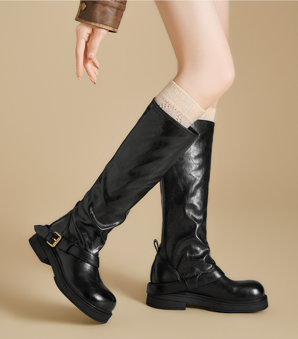 Ботинки Zhuoshini, высокие женские сапоги, новинка 2025 года, длинные сапоги Melard, ботинки-полусапоги на плоской подошве, высокие сапоги для верховой езды.