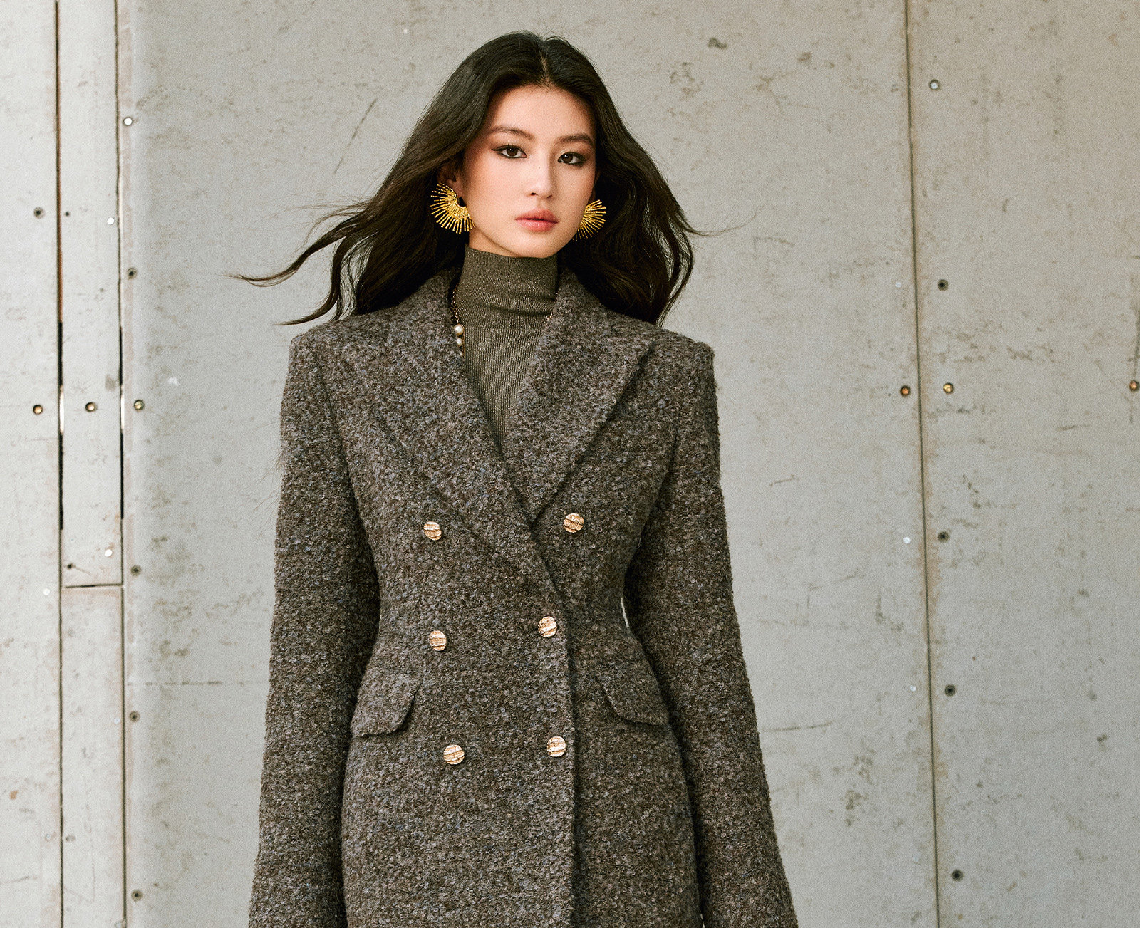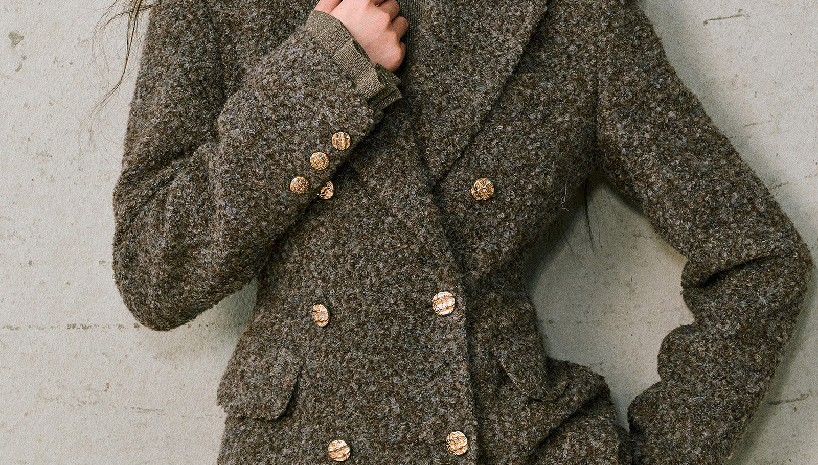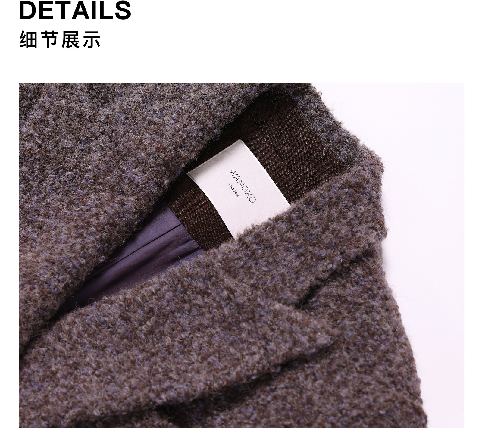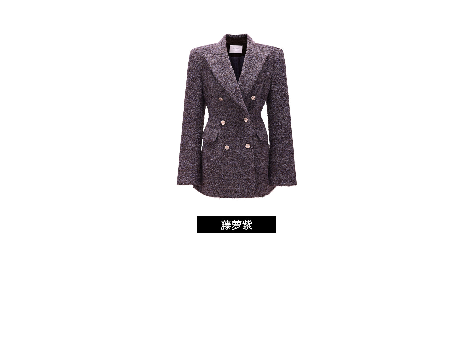 Wangxo|High-Density Wool Floral Yarn Looped Woolen Fabric|Notched Lapel Double-Breasted Double-Pocket Waist-Cinching Blazer
