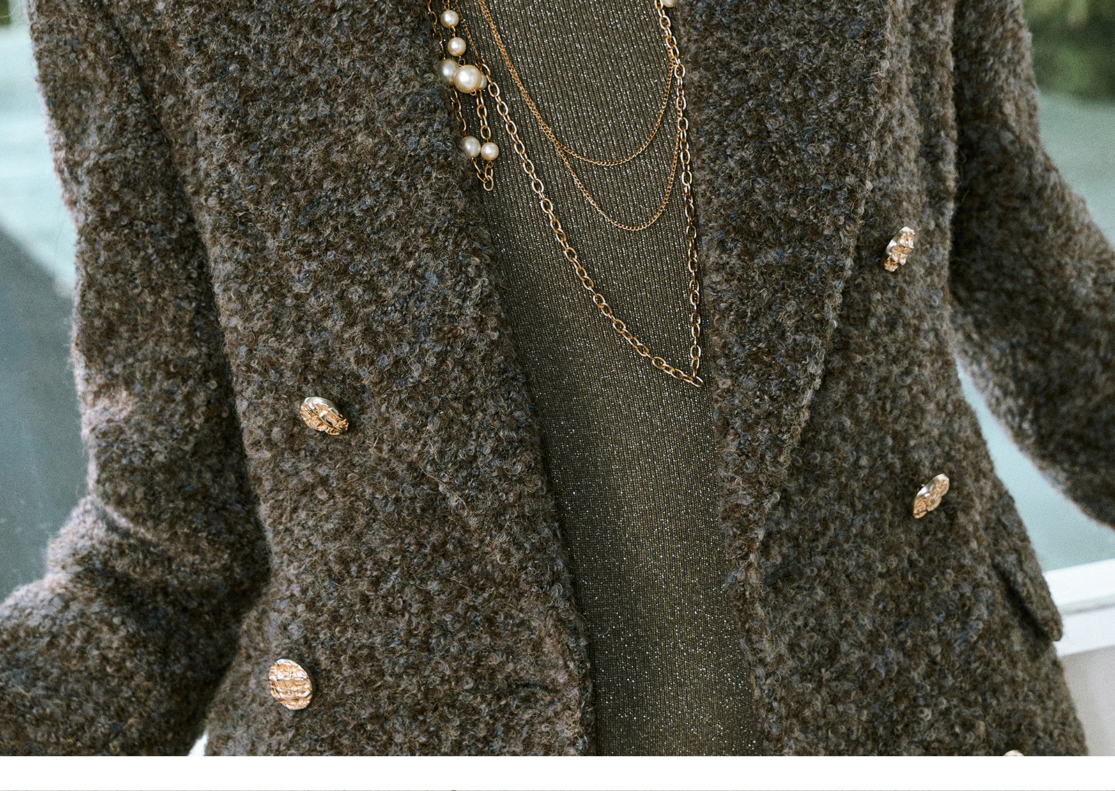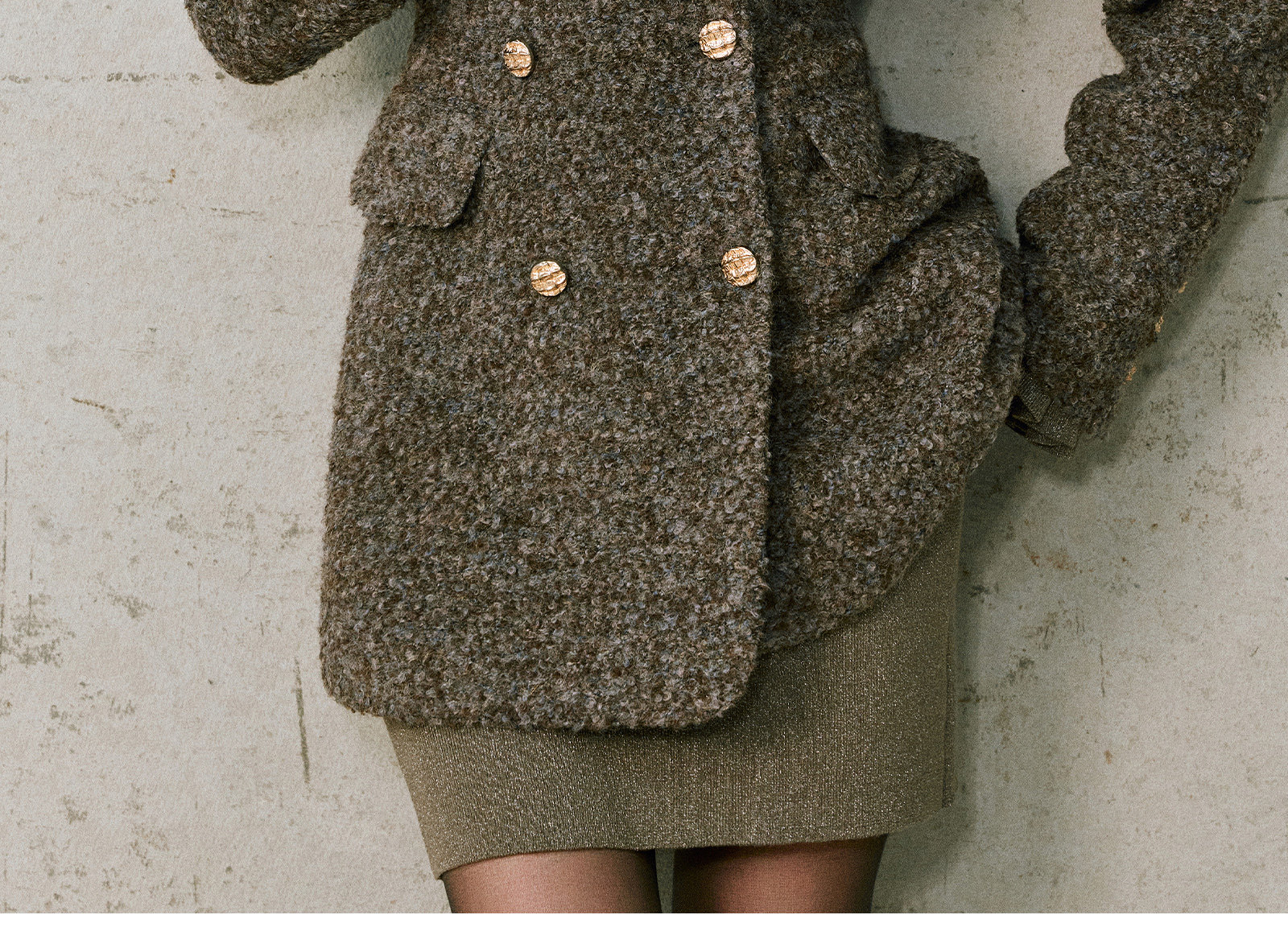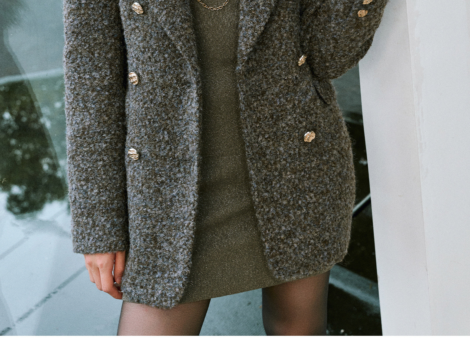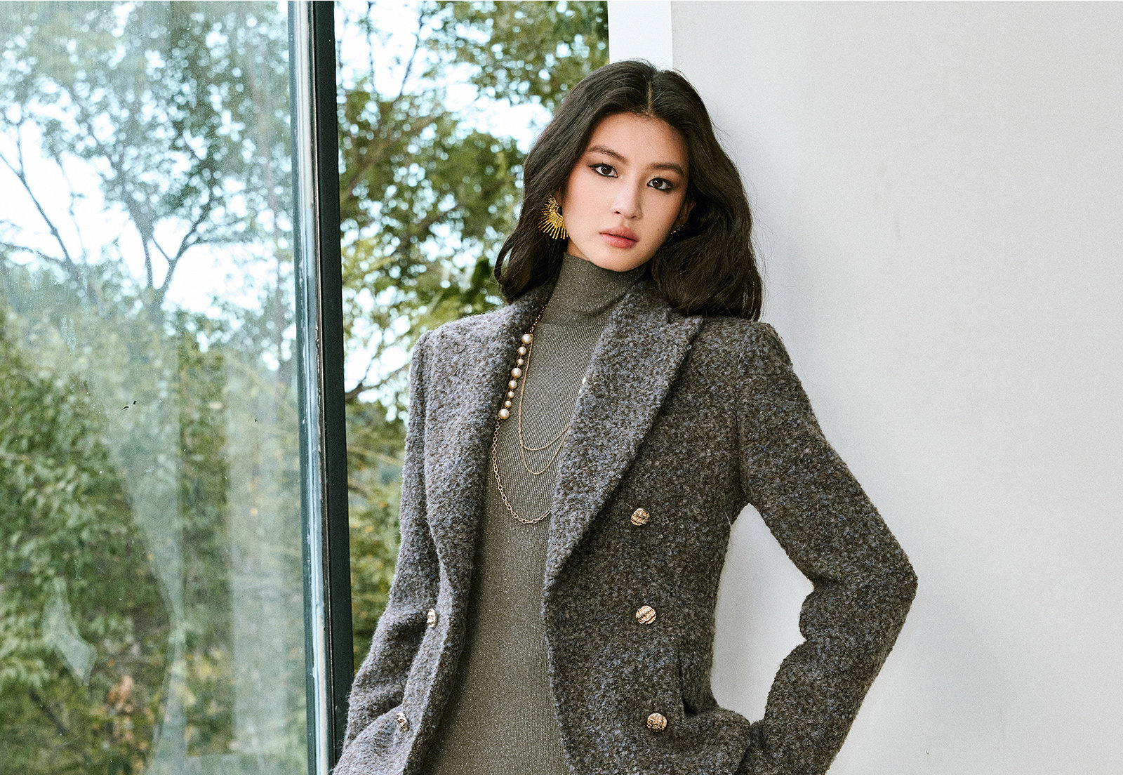 Wangxo|High-Density Wool Floral Yarn Looped Woolen Fabric|Notched Lapel Double-Breasted Double-Pocket Waist-Cinching Blazer