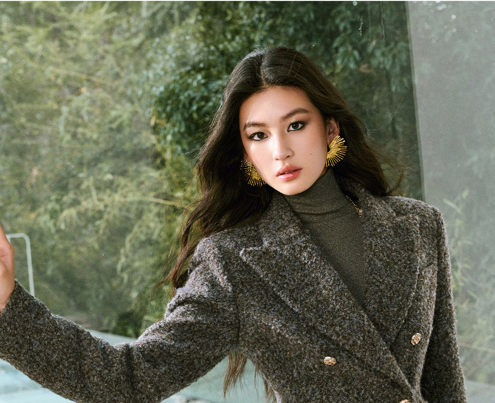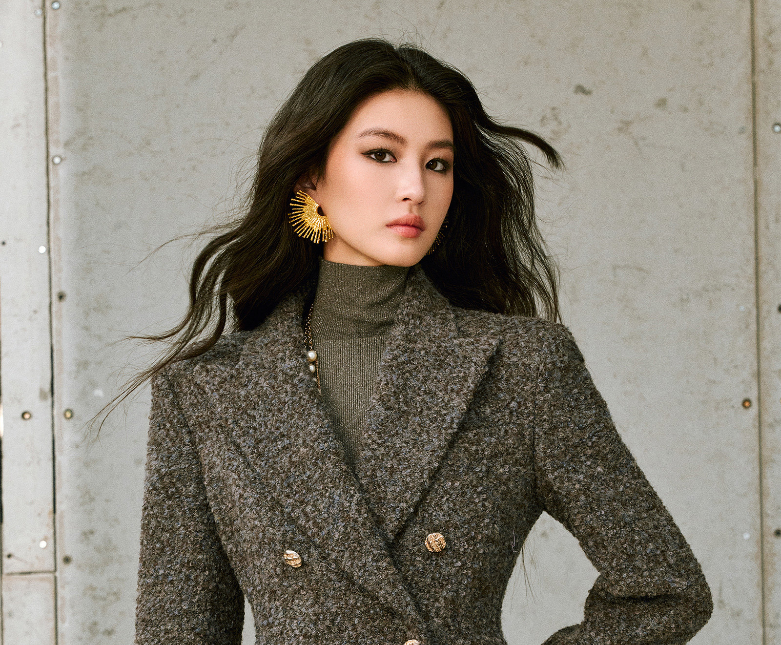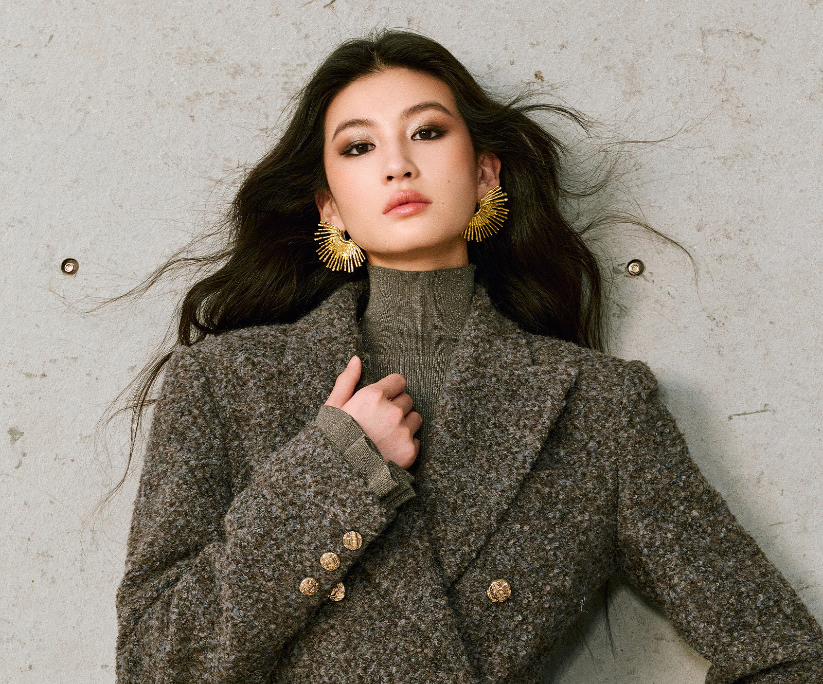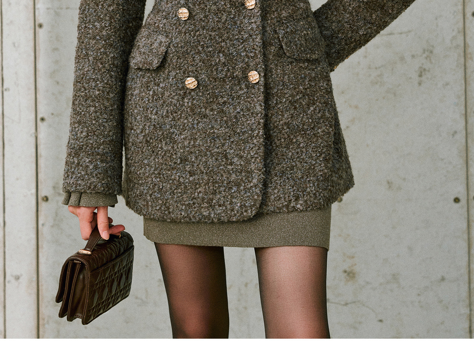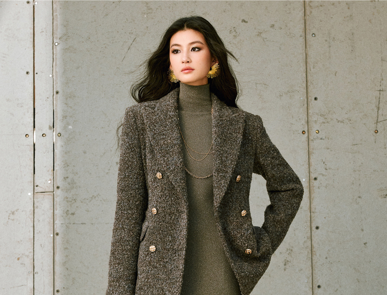 Wangxo|High-Density Wool Floral Yarn Looped Woolen Fabric|Notched Lapel Double-Breasted Double-Pocket Waist-Cinching Blazer
