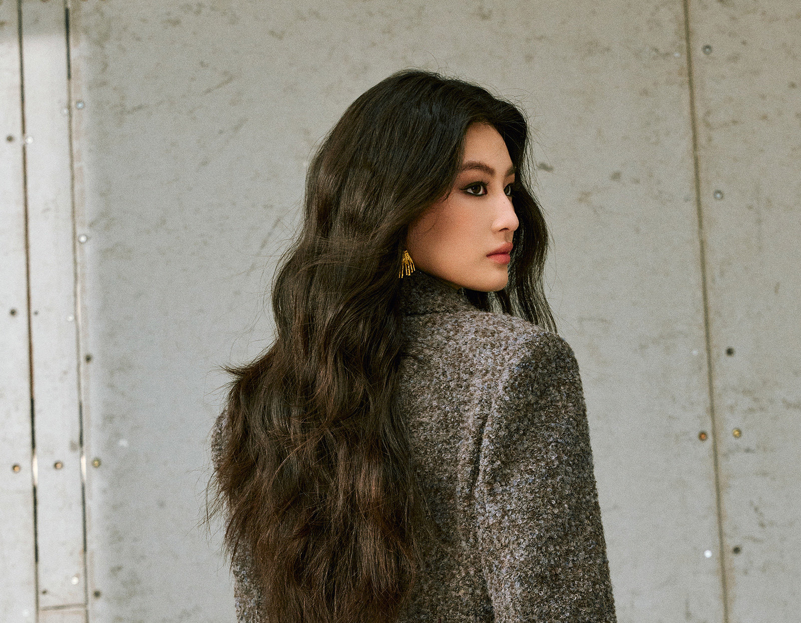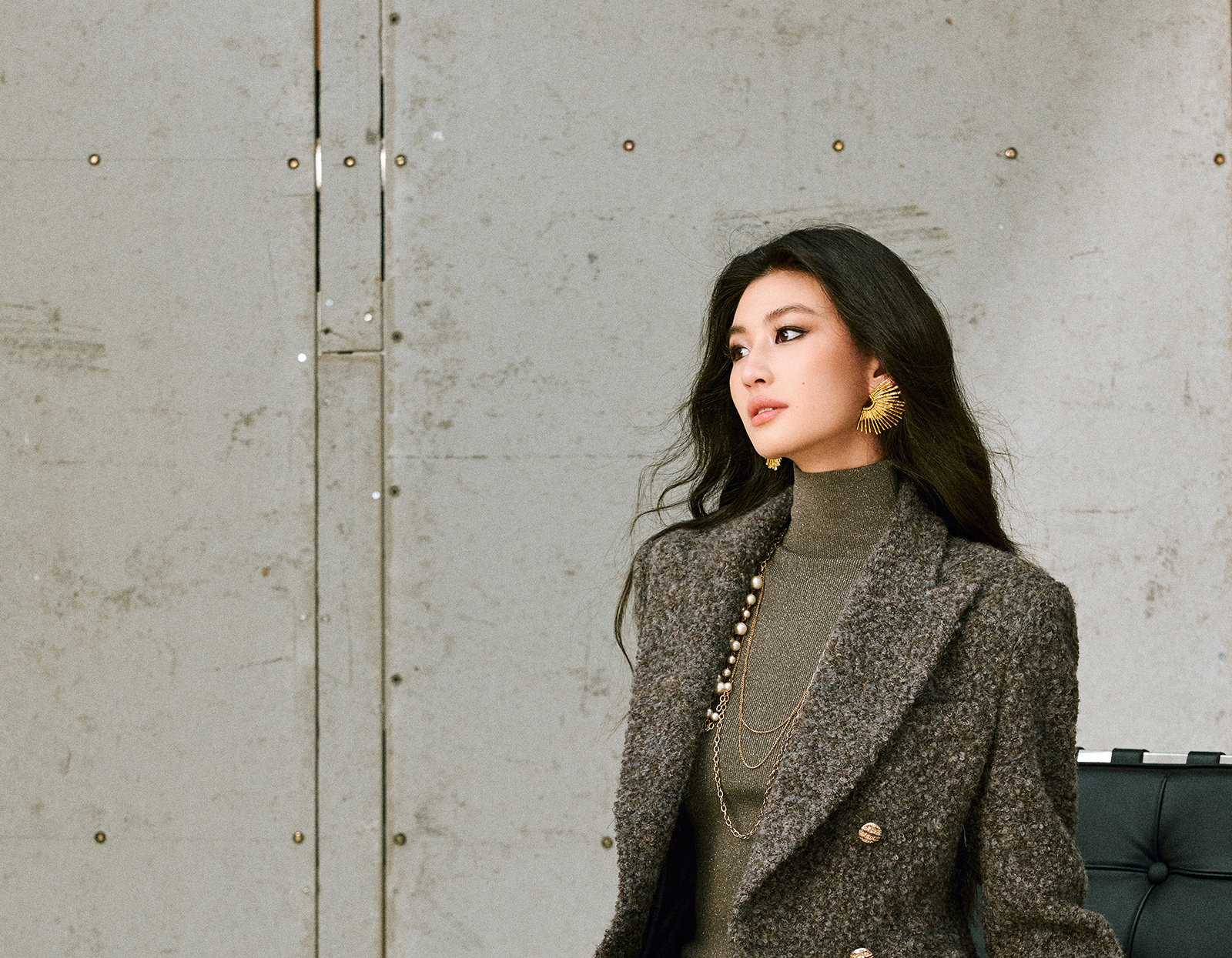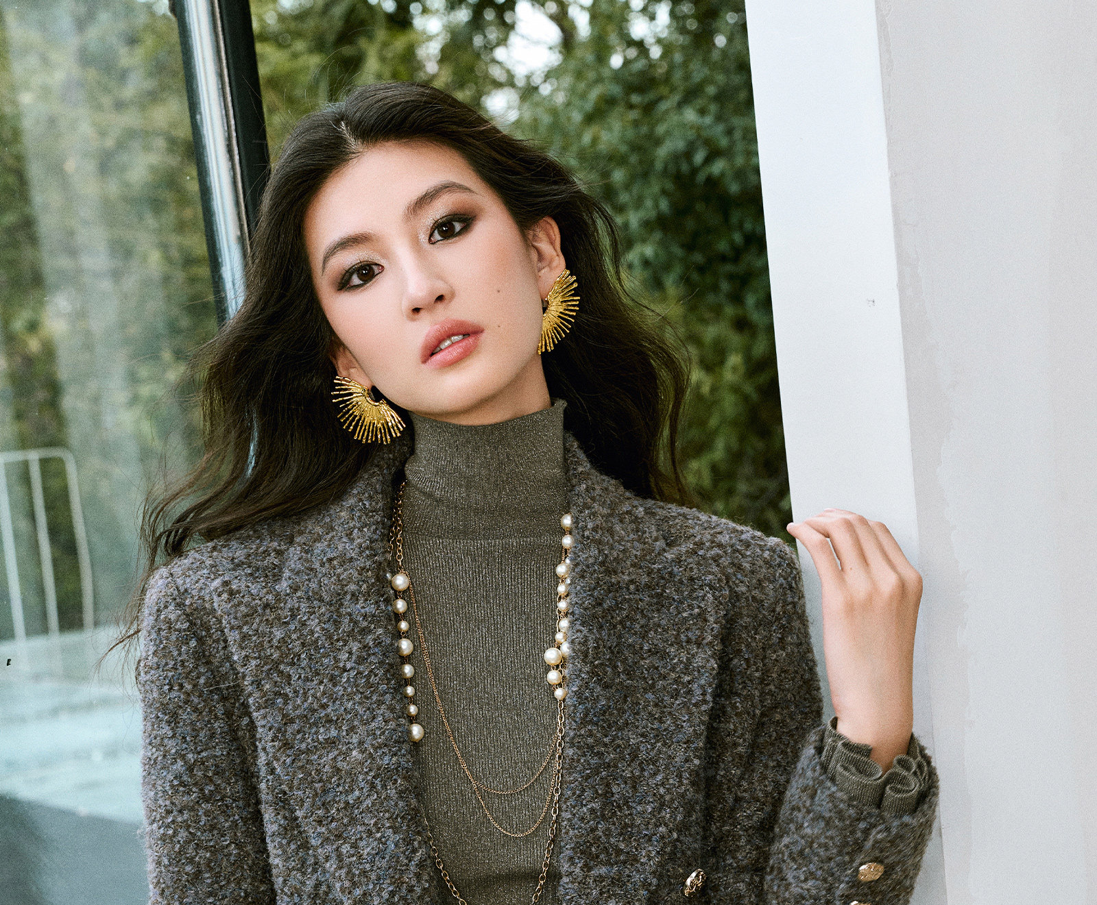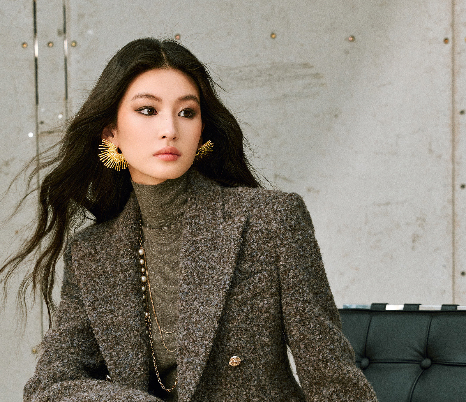 Wangxo|High-Density Wool Floral Yarn Looped Woolen Fabric|Notched Lapel Double-Breasted Double-Pocket Waist-Cinching Blazer