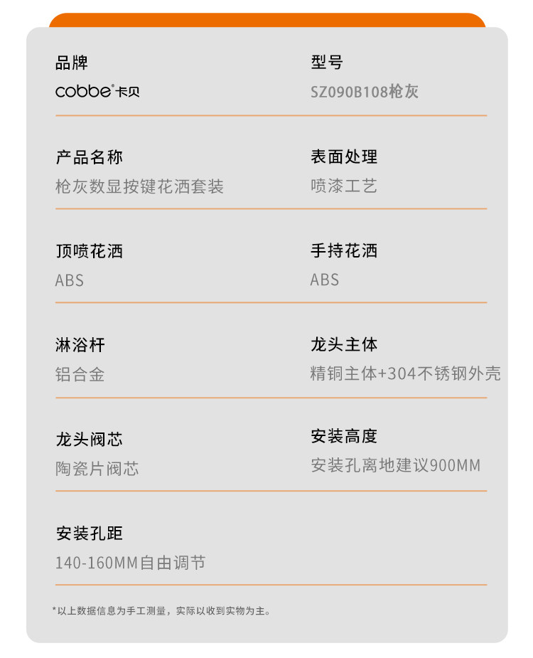 卡贝淋浴花洒套装家用浴室增压全铜卫浴洗澡水龙头沐浴神器大喷头