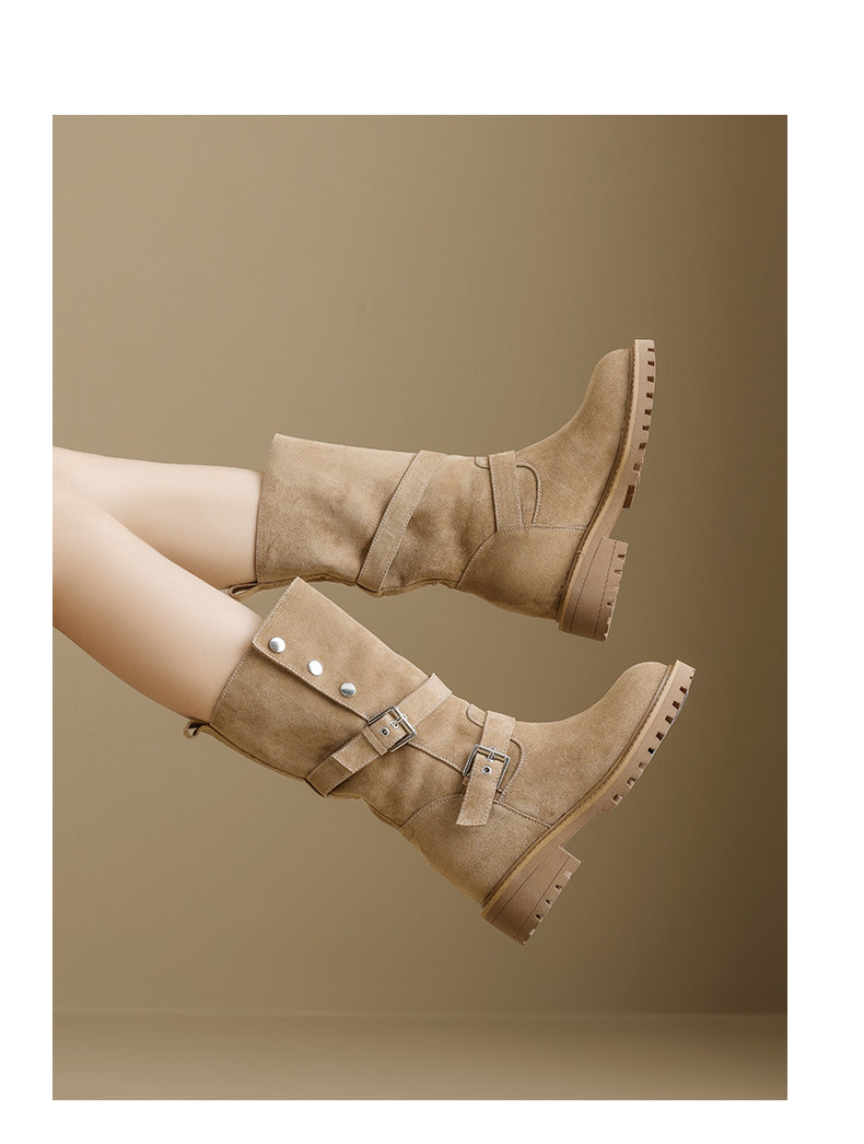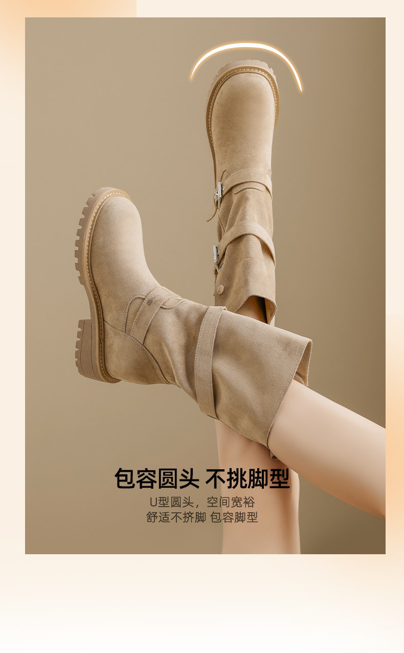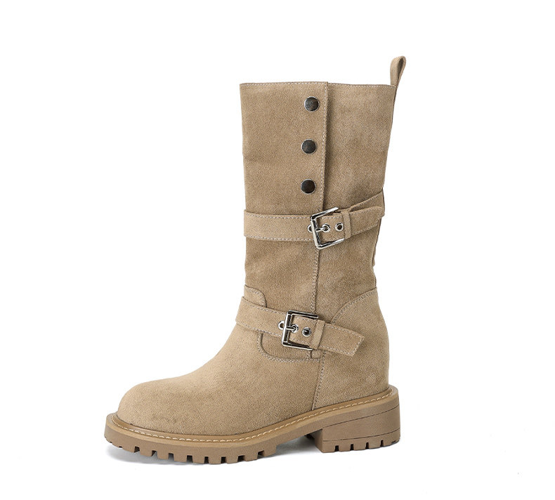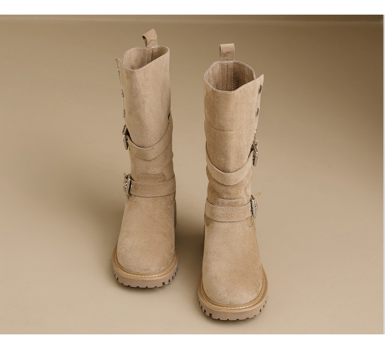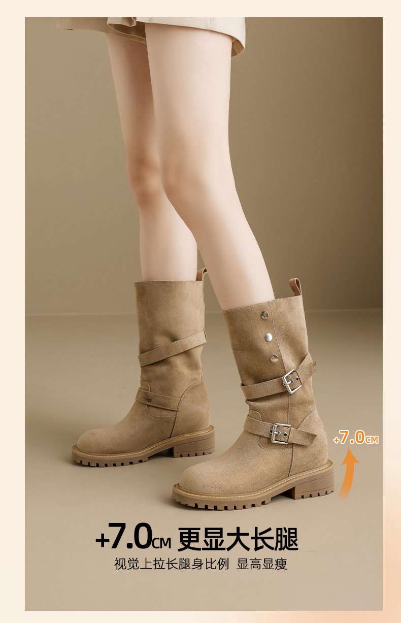 Zhuoshini Botas Largas de suela gruesa para mujer, otoño 2025, nuevas botas retro de vaquero del Western, botas de caballero con realce interior de tacón grueso