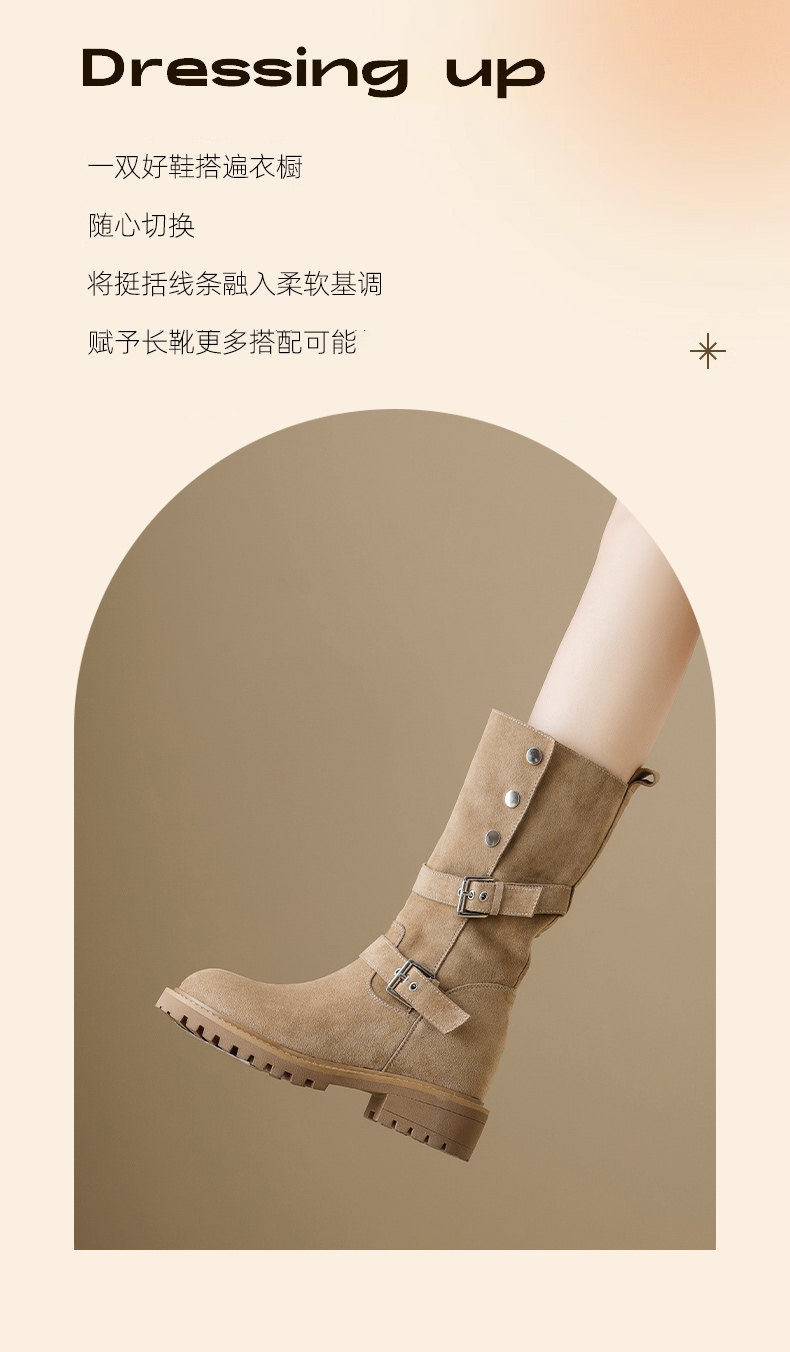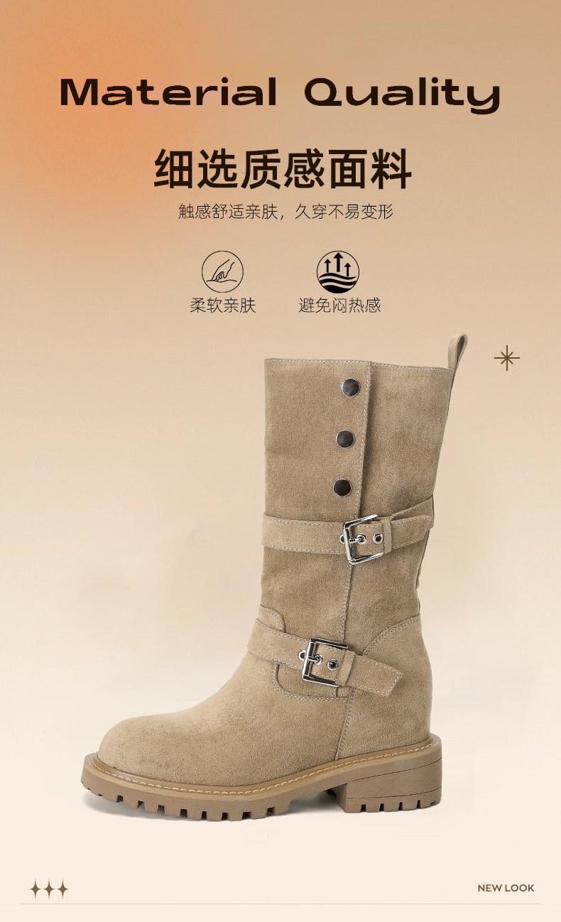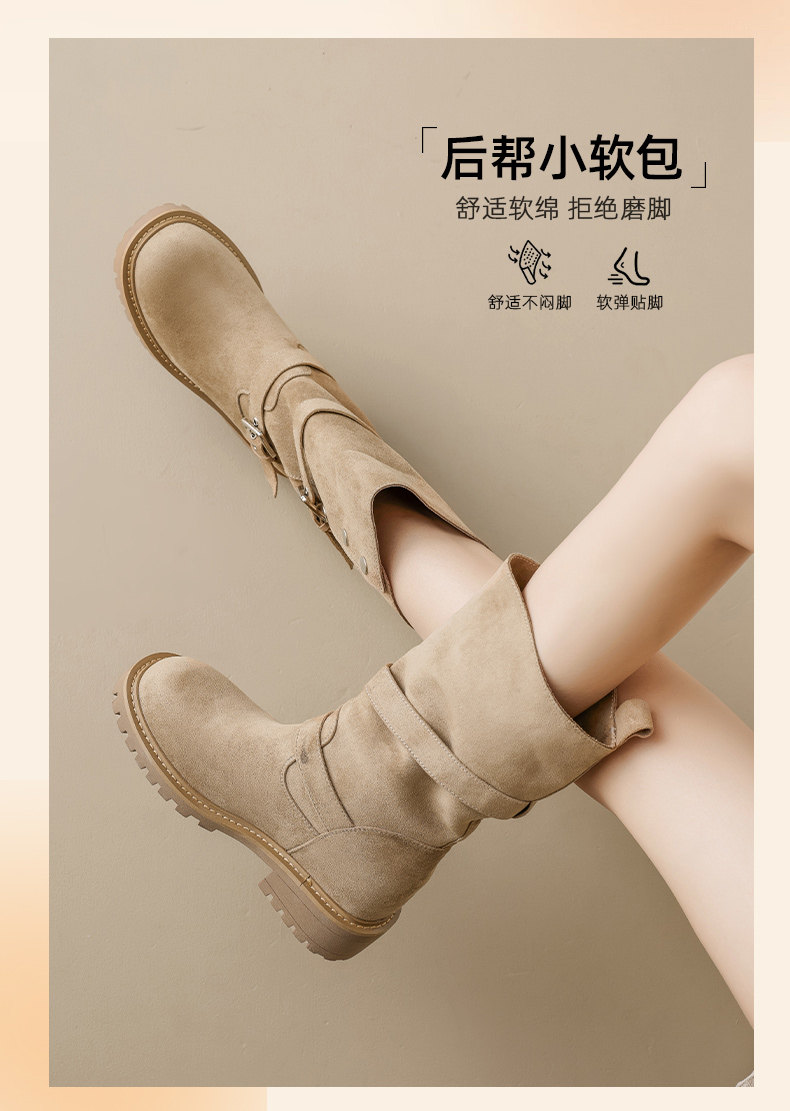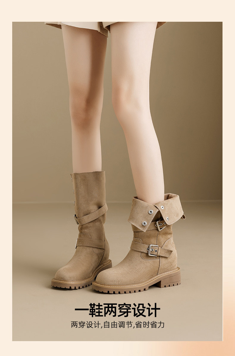 Zhuoshini Botas Largas de suela gruesa para mujer, otoño 2025, nuevas botas retro de vaquero del Western, botas de caballero con realce interior de tacón grueso