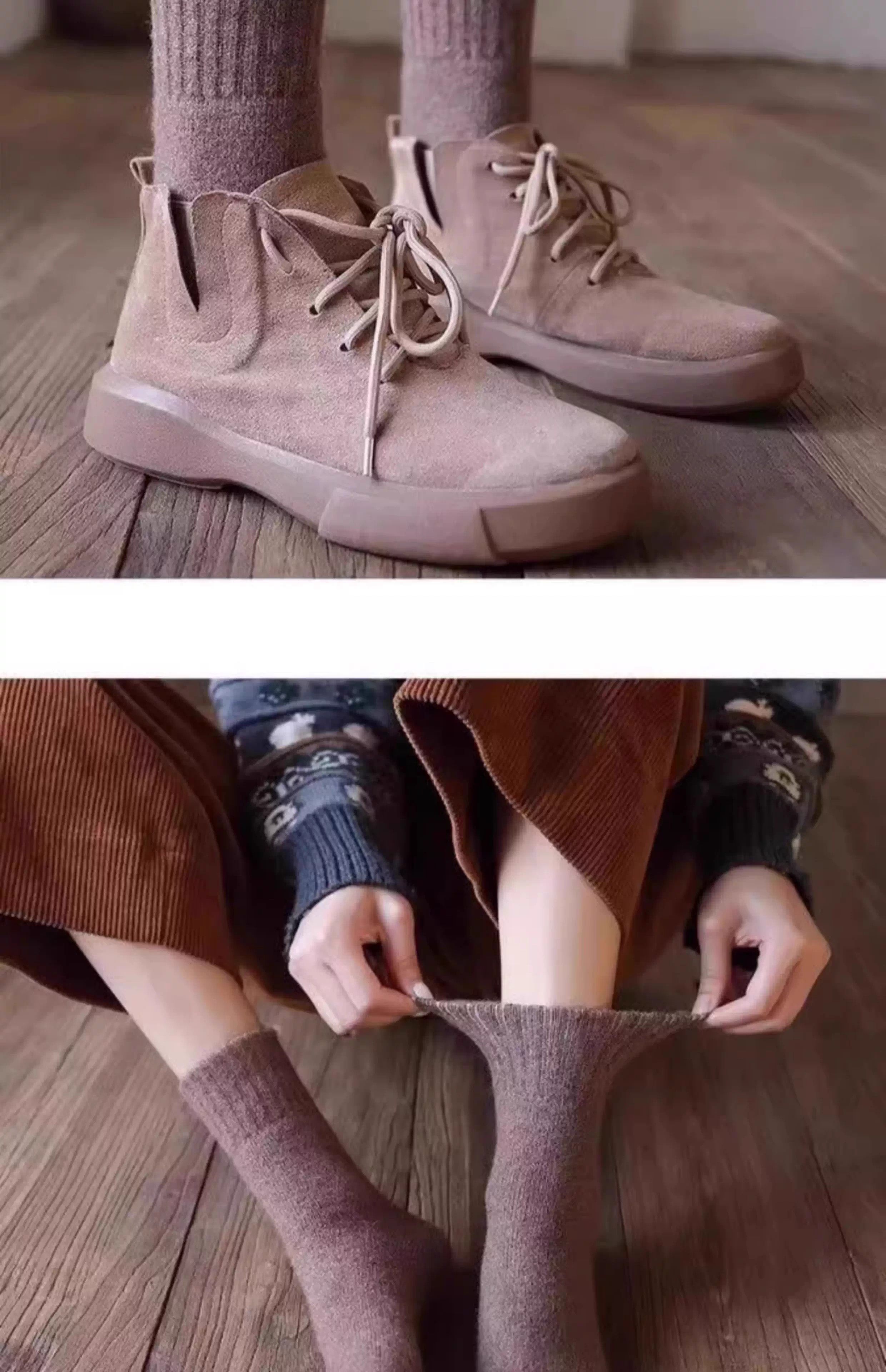 Лыжные носки, толстые термоноски для мужчин и женщин, шерстяные носки средней длины, с флисовой подкладкой и утолщенные, шерстяные носки для осени и зимы, обеспечивающие тепло.